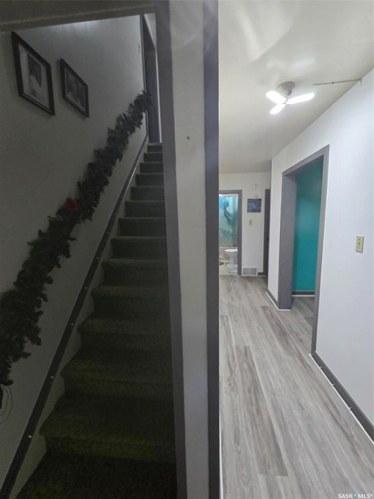 4 bedroom + 1 bath home situated in a great community of Grenfell, full of life just and off the Highway #1 , an hour from Regina and Yorkton. This 1945 home is located on a large corner lot (75'x 135') with a single detached garage (12' x 24' with remote door) Settle into this affordable home that is vacant and ready for a new family. Could it be yours? 1224 sq ft with a half storey that will provide 2 bedrooms on this level and a nook area for extra storage. Main floor has 2 bedrooms , a full bath (Bath fitters tub surround), living room , kitchen/ dining, a back porch. Some updates to include: Hot water heater 2024, vinyl flooring, interior paint, vinyl siding with extra insulation, triple pane windows, HE furnace (2009) with central air, exterior sump pump, and some pex plumbing. The basement hosts the washer and dryer and is good for storage. Make this property on your list to check out, great potential for a starter home with good space for your family.