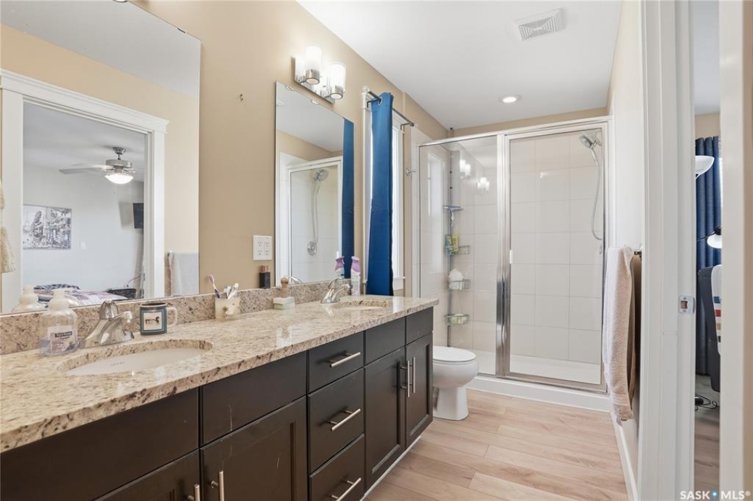 Beautiful Corner unit Townhouse in Warman This well-kept end-unit townhome offers 1,665 sq. ft. of living space with 3 bedrooms, 3 bathrooms, a home office, and a heated bonus room. Situated on a quiet street, it's move-in ready and designed for comfort and convenience. Enjoy ample parking with a double front driveway and an insulated double attached garage with direct entry. On the main level, you'll find a heated bonus room off the garage – perfect as a TV room, gym, or hobby space – with rear access to your private patio and fully fenced backyard, complete with landscaping, underground sprinklers, and wiring for a hot tub. The second level welcomes you with a bright, open-concept living room, dining area, and kitchen, plus a spacious home office and 2-pc bathroom. The kitchen features a granite island and countertops, soft-close maple cabinets, stainless steel appliances, a walk-in pantry, and direct access to a covered balcony. The living room offers large windows for natural light and a cozy stone-accented gas fireplace. Upstairs, you'll find two generously sized bedrooms, a 4-pc hallway bathroom, laundry, and the primary suite. The master retreat includes a walk-in closet and a luxurious 4-pc ensuite with dual sinks, a walk-in glass shower with tile surround, newer vinyl flooring, and modern finishes. This home is just minutes from schools, parks, amenities, and The Legends Golf Course. ? Don't miss out on this beautiful townhome – contact your REALTOR � today to book a viewing!