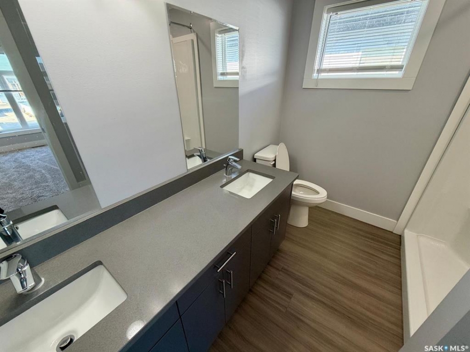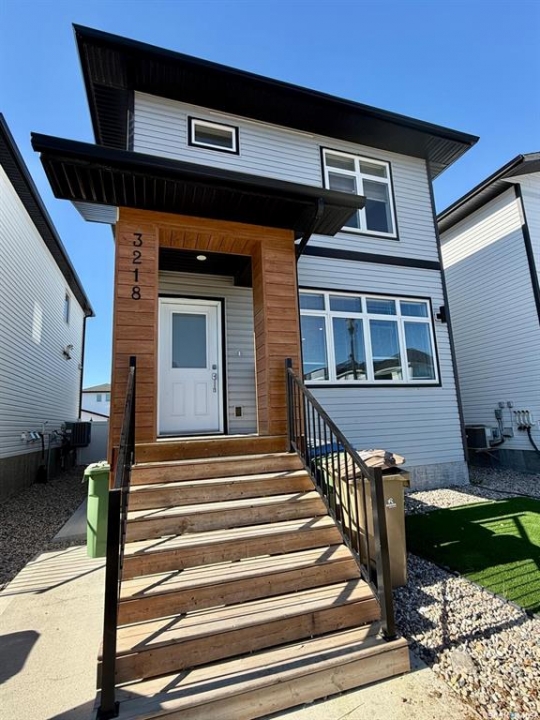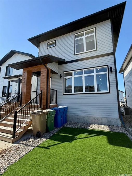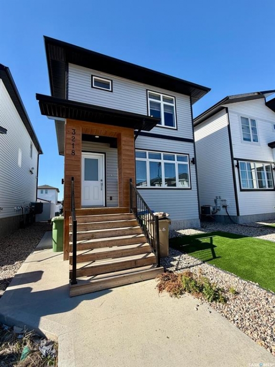 Welcome to 3218 Green Brook Road in The Towns, a beautifully finished 2-storey home with a fully developed regulation basement suite offering excellent income potential. Built in 2021, this 1,640 sq. ft. home is thoughtfully designed with modern finishes, functional space, and family-friendly appeal. The main floor features an open-concept layout with luxury vinyl plank flooring, a spacious living room with large front windows, and a bright dining area that flows seamlessly to the backyard. The kitchen is equipped with quartz countertops, stainless steel appliances, tile backsplash, and a generous island with seating—perfect for everyday living and entertaining. A convenient 2-pc bathroom completes this level. Upstairs, the primary suite includes a walk-in closet and 4-pc ensuite. Two additional bedrooms, a full bath, and a laundry room provide comfort and practicality for family life. The basement is a self-contained regulation suite with a separate entrance, making it ideal as a mortgage helper or extended family space. It features two bedrooms, a full kitchen with stainless steel appliances, a living room, and a 4-pc bath, all finished to the same high standard as the main home. Located in a growing east Regina community, close to schools, parks, and shopping, this home combines modern family living with the benefit of income-generating potential.