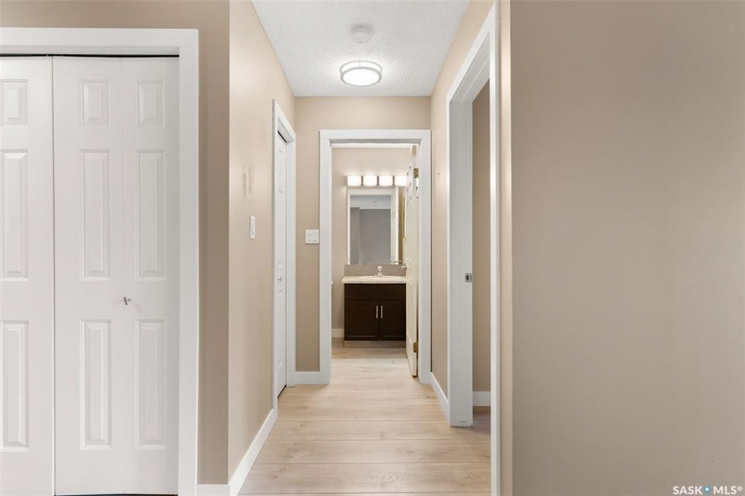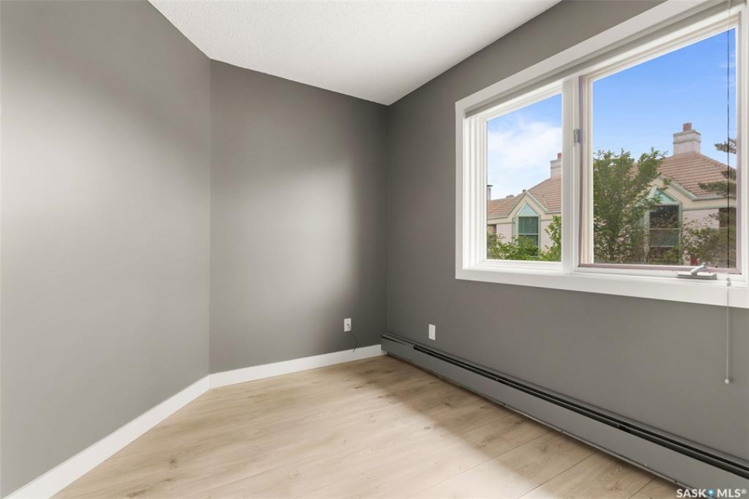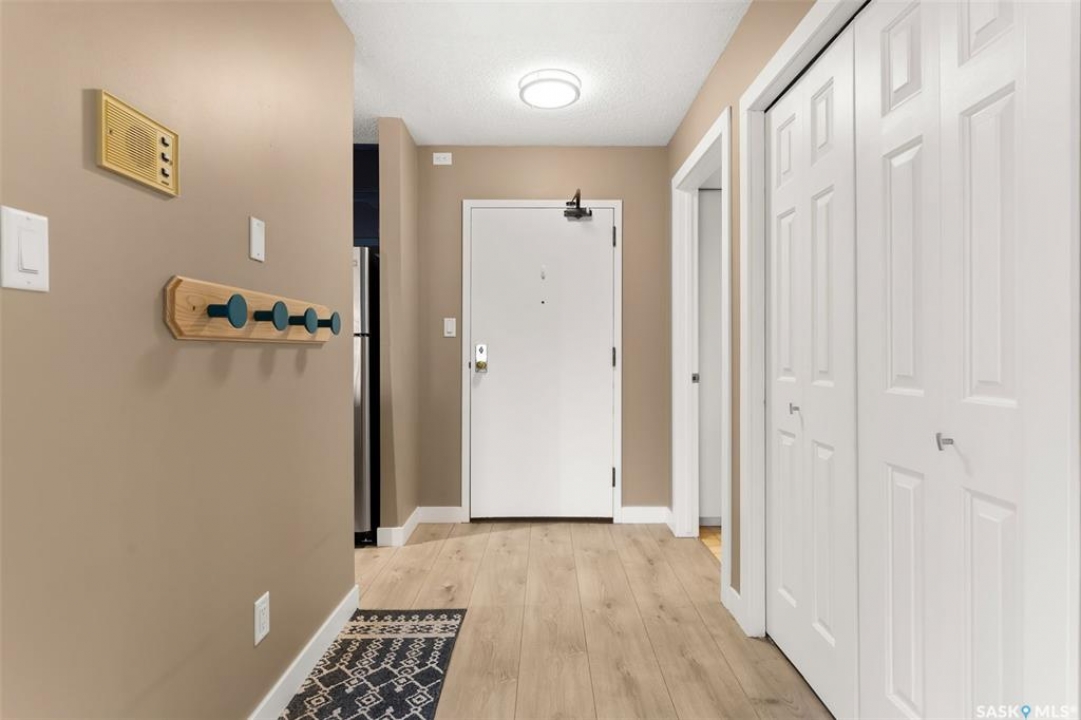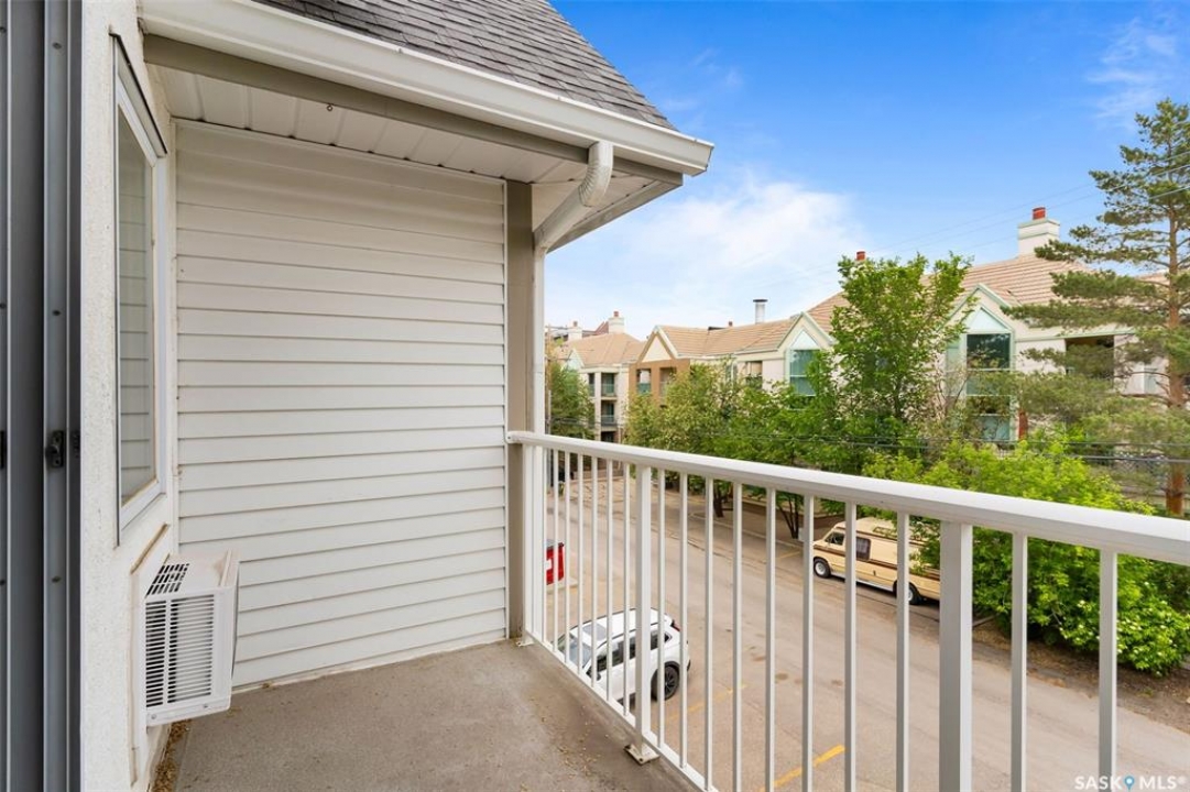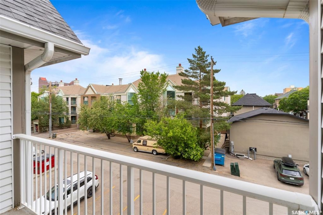 Welcome to this beautifully maintained, top-floor condo offering 893 sq ft of stylish, open-concept living in a prime downtown location. Perfectly positioned within walking distance to shops, pubs, parks, and essential amenities, this home combines convenience with contemporary comfort. Step inside to find a renovated interior featuring painted kitchen cabinets, updated countertops and backsplash, and modern laminate flooring that flows seamlessly throughout. The open-concept layout is bright and airy, enhanced by stainless steel appliances, in-suite laundry, and plenty of natural light. This unit features a spacious primary bedroom with a cozy nook — ideal for a reading area or home office — and a versatile den with a window, perfectly suited as a guest room or second bedroom (note: no closet). Enjoy morning coffee or evening wine on your private balcony, and take advantage of the heated underground parking, dedicated storage unit, and secure building amenities. Whether you're a first-time buyer, downsizer, or investor, this condo delivers unbeatable value, style, and location. Don't miss your chance to own a top-floor unit in the heart of it all!