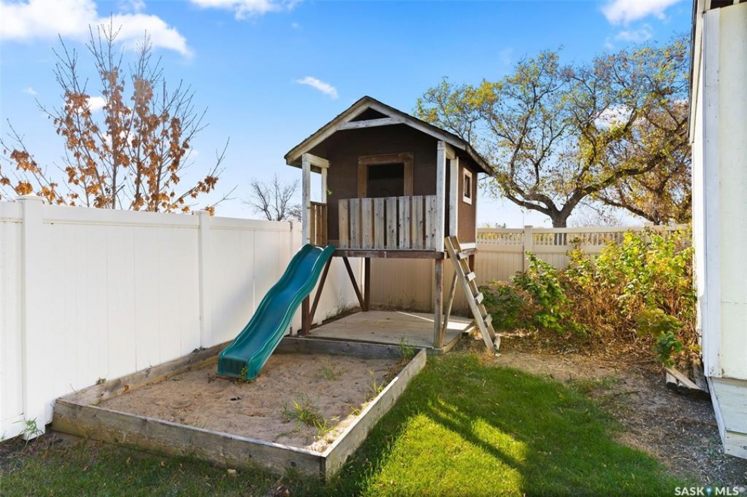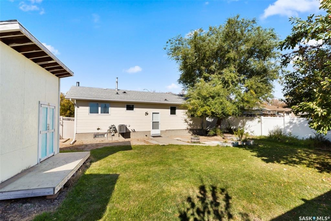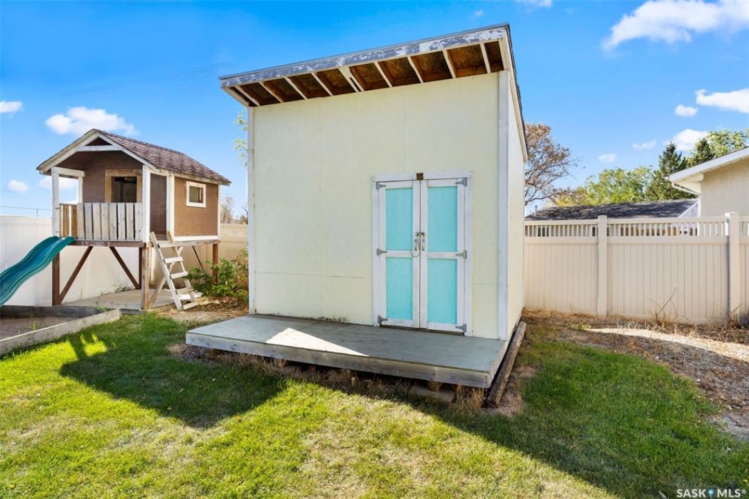 Welcome home to 146 Vernon Crescent, a charming family home tucked away on a quiet, family-friendly crescent in in Regina's desirable Argyle Park neighbourhood. From the moment you arrive, you'll appreciate the peaceful setting, with no back neighbours and a welcoming community vibe. Inside, this home features a fantastic floor plan with three spacious bedrooms on the main floor and a beautifully updated (plus OVERSIZED) 4-piece bathroom. The bright and functional kitchen provides an abundance of cabinets & prep space for family meals, along with lovely views of your backyard! Get ready to be the go-to holiday hosting spot because this dining room is large enough to host memorable holiday gatherings around a full size table with the leaf's in! can Downstairs the fully developed basement offers incredible versatility with a cozy den or home office, generous storage options, and a large recreation w/vintage wet bar area creates a comfy vibe perfect for a movie lounge, or games space! Step outside and fall in love with the expansive landscaped & fully fenced, ideal for summer barbecues, kids' play, or relaxing evenings under the stars. The yard showcases a massive custom built shed, a lovely play structure, and plenty of room to create your dream outdoor oasis. Located close to Dr. Hanna School and St. Timothy School & the shops on Rochdale Blvd, this property is perfect for families seeking convenience and community. Whether you're a first-time buyer or simply looking for more space to grow, 146 Vernon Crescent offers comfort, functionality, and charm in one inviting package! Don't miss your chance to call this beautiful home yours!