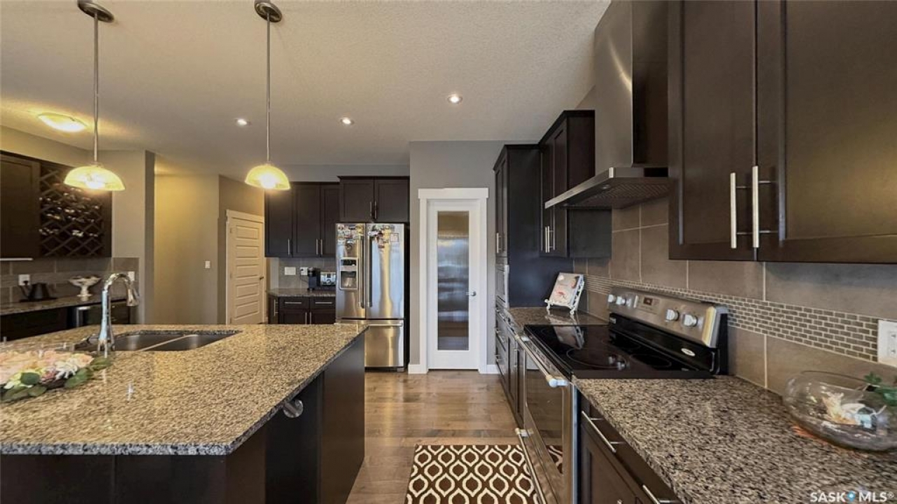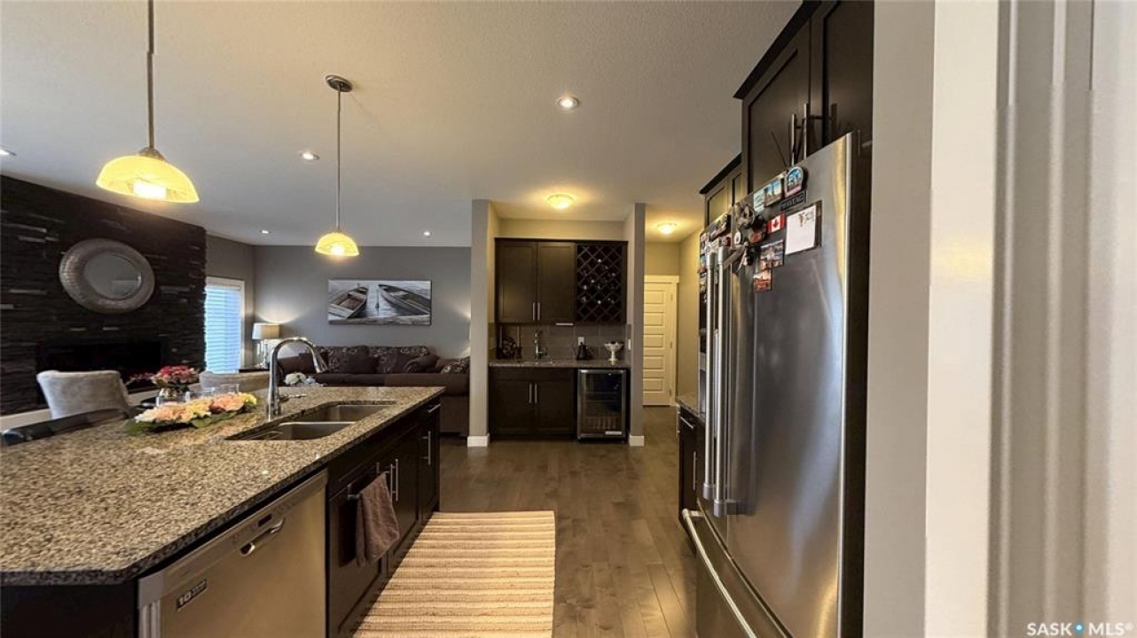 Situated in the prestigious community of Rosewood, this exquisitely appointed 4-bedroom, 4-bathroom residence offers an exceptional blend of refined elegance and modern functionality, complete with a fully finished basement. The main floor showcases an open-concept design featuring a striking feature wall with a gas fireplace in the living room, an elegant wet bar with a built-in wine rack, and a chef-inspired kitchen adorned with granite countertops, premium stainless steel appliances, and superior custom cabinetry. A sun-drenched dining area sits beside expansive patio doors, creating a seamless transition to the outdoors. The upper level boasts a spacious bonus room, two well-proportioned bedrooms, a stylish 4-piece bathroom, and a thoughtfully placed laundry room for added convenience. The luxurious primary suite is a true sanctuary, enhanced by an electric fireplace and a spa-like 5-piece ensuite with dual vanities, a soaker tub, and a separate shower. The fully developed lower level extends the living space with a generous family room featuring a second wet bar, a private den, an additional bedroom, and a contemporary 3-piece bath. Ideally located with a school directly behind the property and mere moments from parks, major thoroughfares, and all essential amenities, this home offers an unparalleled lifestyle of comfort and sophistication. Call your favourite Realtor � to book your showing. Buyers & Buyers' Realtor � to verify all measurements.