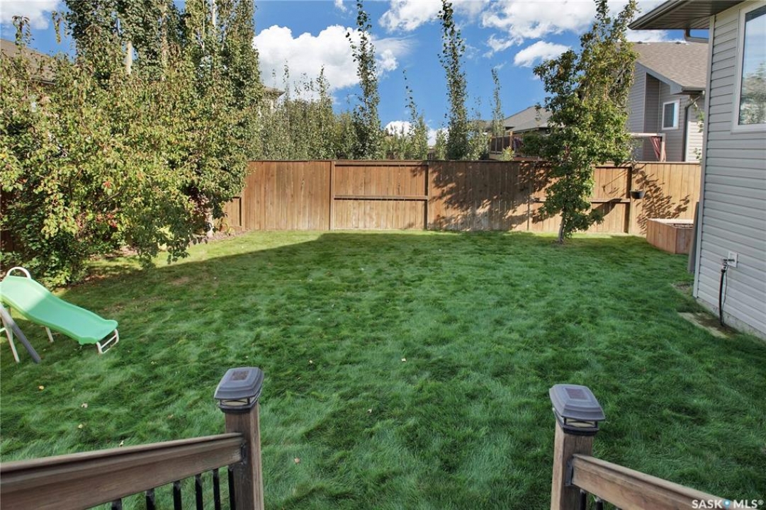 Modern, bright, and beautifully maintained bi level— this four-bedroom, three-bathroom home has space for everyone and style to spare. Step inside to an inviting main floor with large windows that flood the space with natural light. The kitchen features modern finishes, a custom backsplash, and views of your private backyard oasis. The lawn is so lush it's hard to tell where the grass ends and the carpet begins! Enjoy summer evenings on the two-tier deck surrounded by mature trees and raised garden boxes — it's a backyard you'll never want to leave. Downstairs, the fully finished basement is a fantastic hangout zone complete with a wet bar that could easily double as a kitchenette — perfect for movie nights, guests, or a potential in-law setup. (Note: the fourth bedroom does not have a closet.) there is plenty of room for a 5th bedroom if desired. With three full bathrooms, thoughtful storage, and stylish updates throughout, this home is move-in ready and checks all the boxes. Located in family-friendly Martensville, you'll love the nearby walking paths, schools (including French Immersion), and the brand-new Rec Centre — everything you need for an active, connected lifestyle.