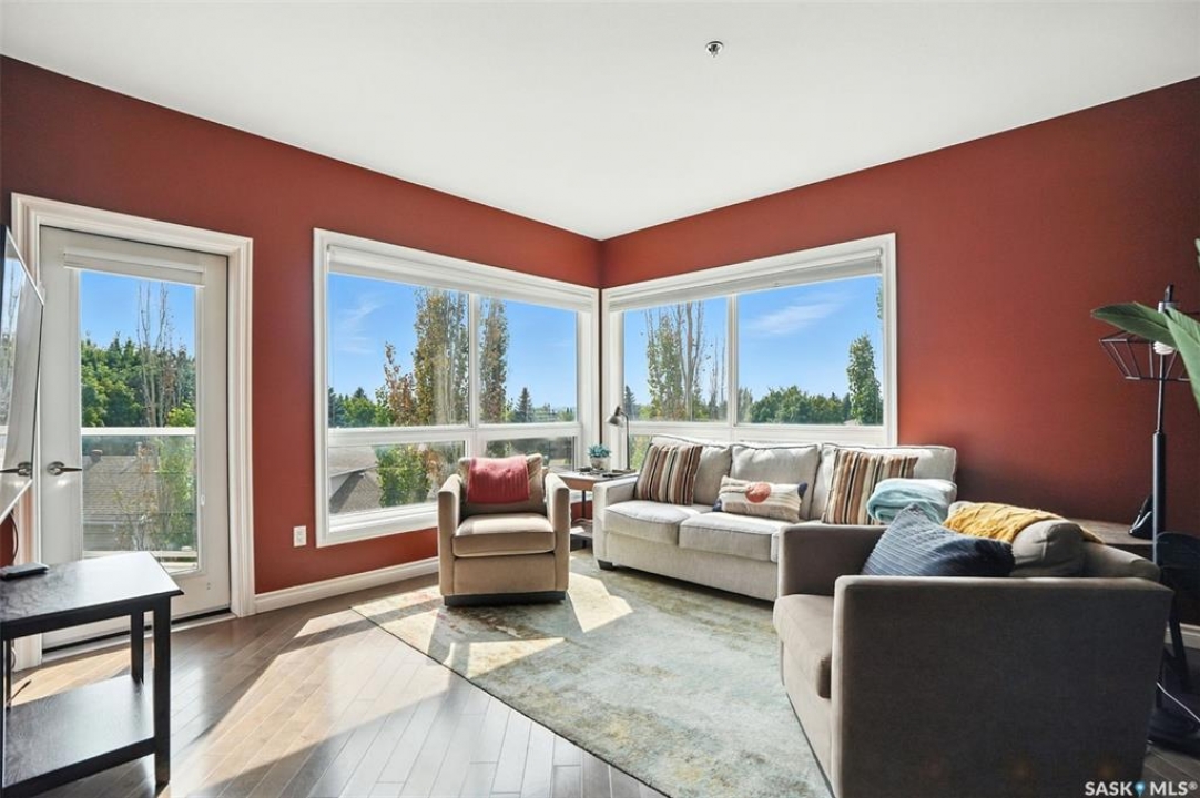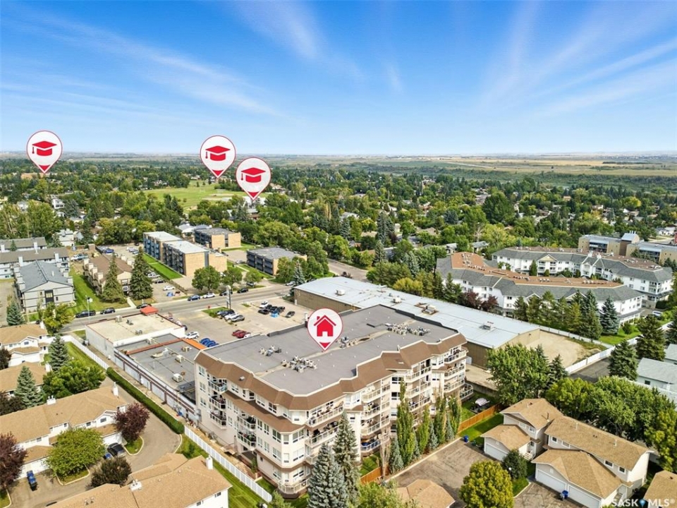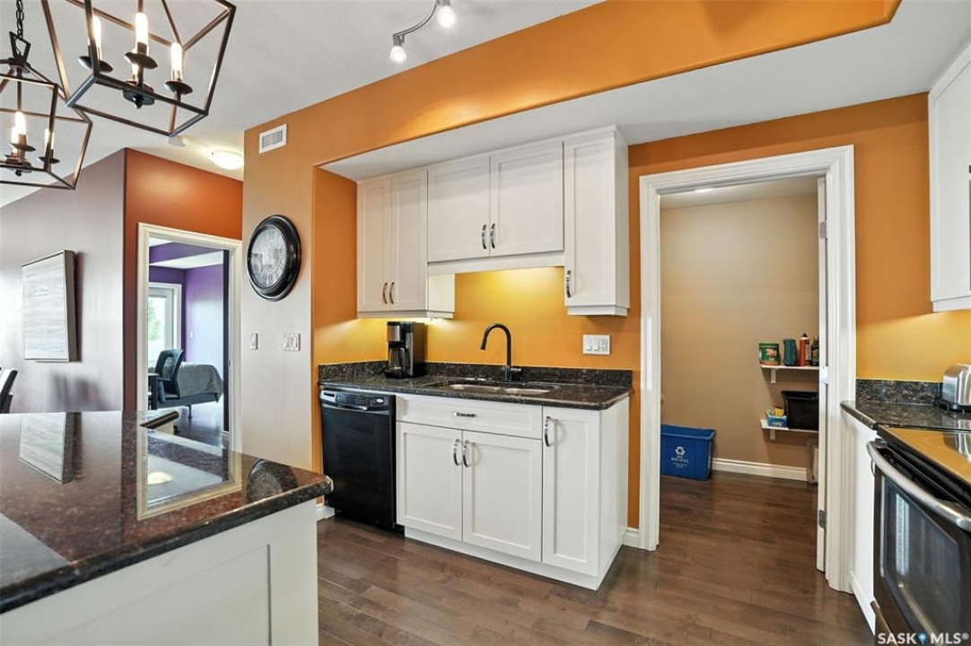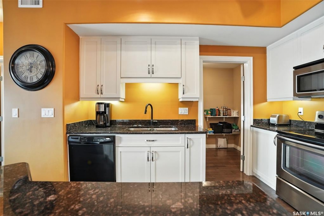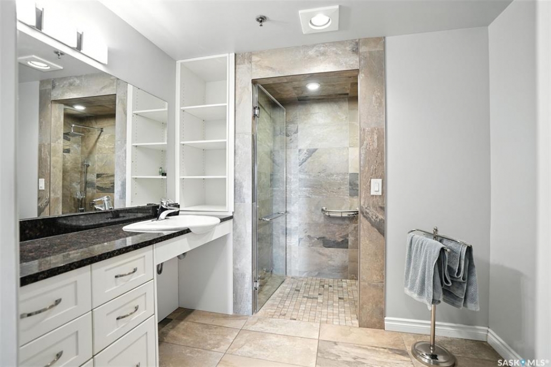 Welcome to this truly one-of-a-kind condo in Lawson Heights, thoughtfully modified with wheelchair accessibility in mind without compromising on comfort or style. Offering 1,428 square feet of open concept living, this spacious third floor condo features two bedrooms plus a den, two balconies, and an abundance of natural light from its desirable south facing exposure. At the center of this home is a beautifully designed, accessible ensuite that combines luxury with functionality. A roll in steam shower with a built-in bench, roll under sink, and generous maneuvering space by the toilet create a space that's both functional and comfortable for daily living. Continuous tile flows seamlessly from the ensuite into the primary bedroom, where open shelving in the closet ensures everything is within reach. Everyday tasks are made simple with an accessible laundry area and a spacious pantry designed to be easily accessed from a wheelchair. Both balconies have been modified for accessibility, with smooth, lip free thresholds that make stepping or rolling outside easy. An elevator and underground parking stall located conveniently close to the elevator add even more practicality to daily living. Beyond the accessibility features, this condo shines with thoughtful design. The kitchen offers granite countertops, an island perfect for entertaining, and a large pantry. The open layout creates flow and connection between the living, dining, and kitchen spaces, ideal for hosting friends or relaxing in the sun filled comfort of home. A rare opportunity to own a spacious, modern condo built with true accessibility in mind. Don't miss your chance to experience comfort, convenience, and thoughtful design all in one place.