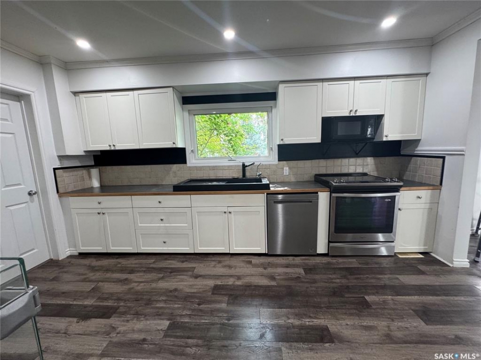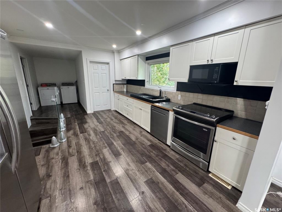Welcome to your own piece of paradise in the town of Norquay SK! This professionally landscaped lot measures 75x234 and has many features of an acreage with town amenities. The original part of the home was built in 1940 with an addition and renovation done in 2009. Entering the home from the north door, you will be welcomed to a large porch/dining room area. A few steps over will take you to the updated kitchen featuring stainless steel fridge, stove, dishwasher, and microwave. Enjoy relaxation time in the living room area featuring skylights and wood fireplace. Down the hall you will find two excellent sized bedrooms. The main floor living space is completed with a 4-piece bathroom. The main floor has been extensively updated with new paint, flooring, triple pane windows, kitchen cabinets, electrical, lighting, and insulation. The partial basement includes a 4-piece bathroom and office area. The utility area includes gas furnace and water heater, 100 amp panel box, sump pump, and washer/dryer (downstairs included only). Moving outdoors, there is 592 square feet of deck space that wrap around the north and west parts of this home. Enjoy easy access to the deck from three different locations of the home. The front and back yard have been professionally landscaped with rock, concrete, gravel, and mature trees. As an added bonus, there are cherry, saskatoon, grape, and apple trees in the yard. Norquay is a full service town including K-12 Public School, Gas Station, Grocery Store, Restaurants, Hardware Store, and many small businesses. Norquay is less than an hour drive to Yorkton SK and is surrounded by beautiful lakes. This property is not for rent or rent to own.