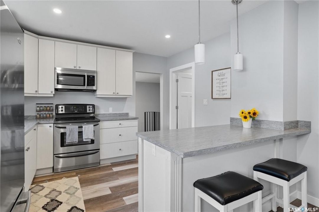 Looking for a nicely updated home in the south of Moose Jaw and close to the new school? This updated property offers a great location and plenty of updates throughout. Recent updates include a water heater (2025), air conditioner (2022), and PVC vinyl fencing (2022) enclosing a double wide lot, perfect for dog lovers. Inside, you will find updated kitchen cabinets and countertops, luxury vinyl plank flooring, nice carpet in the living room, bedrooms, family room, and den. The home also features PVC windows and doors, with a newer electrical panel and 100 amp service. Exterior updates include refreshed shingles and vinyl siding on the house, garage, and shed. The main floor offers a bright kitchen and dining area, a south-facing living room that fills with natural light, and two bedrooms. Downstairs, the developed basement includes a spacious family room, den, laundry area, and a 2-piece bath. Outside, enjoy the 20x24 garage and large 16x12 shed, great for storage or projects. If you have been looking for an updated home in South Hill near the new school, this is the one! Contact your REALTOR � to book a showing today!