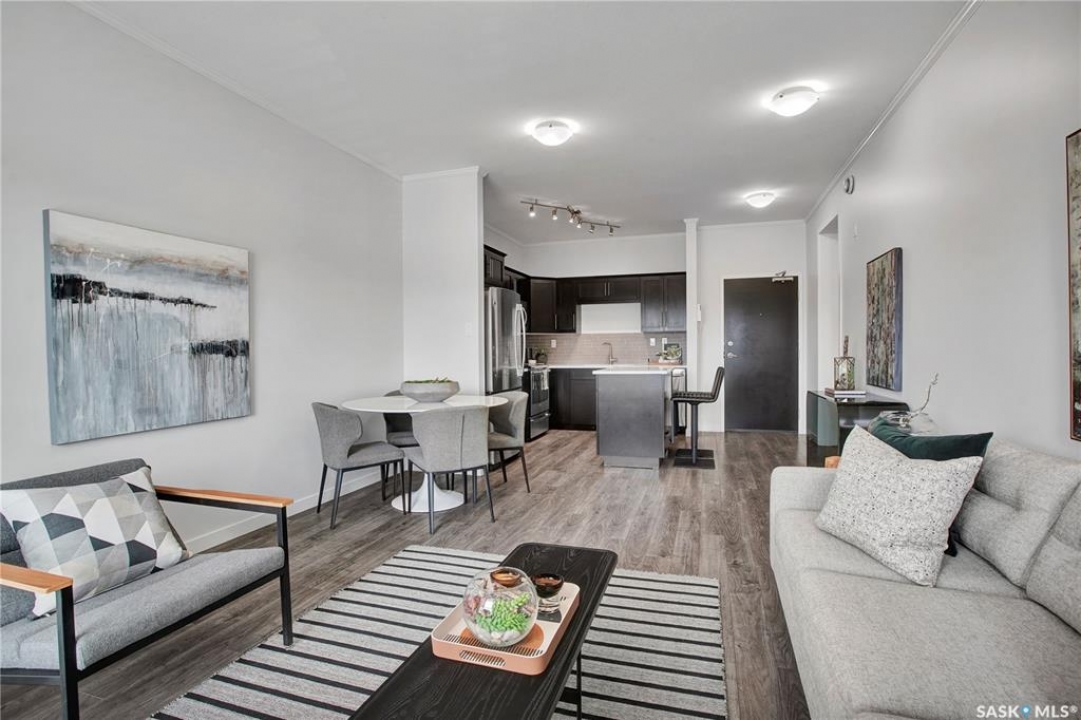 This Kensington Flats condo features 2 bedrooms, 1.5 bathrooms & 2 parking stalls (1 underground, 1 surface stall). The beautiful finishings throughout feature espresso maple cabinetry in the kitchen and bathrooms (soft close doors and drawers), glass tile backsplash, stainless steel appliances, quartz countertops, moveable island and a great sized living room with a door that leads out onto the balcony. The in-suite laundry features a stackable full size washer and dryer. Great layout with the bedrooms being separated from the main living space and 9' ceilings throughout. Additional perks include central air conditioning, heated underground parking, amenity spaces in the building, & you'll be in walking distance to all the amenities of Kensington & Blairmore. Convenient condo living!