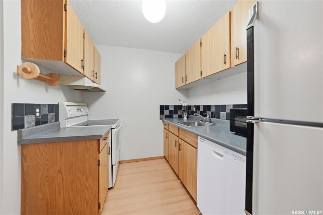 Welcome to Forest Grove Village! This top-floor, one-bedroom, one-bath condo offers a bright and functional living space in a well-maintained complex close to the University of Saskatchewan, schools, parks, and shopping. Recent updates include a new bathroom vanity, air conditioner, dishwasher, washing machine, and fresh paint throughout. The unit also includes one electrified parking stall conveniently located just steps from the building entrance. Ideal for first-time buyers, students, or investors seeking an affordable, low-maintenance property in a desirable neighborhood.