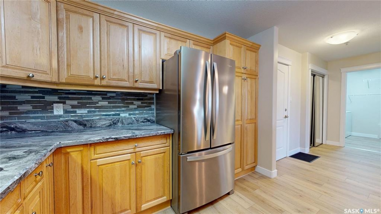 Welcome to �Unit 308 at 2885 Arens Road E, a meticulously maintained and spacious residence situated in the desirable �Wood Meadows �neighborhood,offering unparalleled access to all East End amenities. This �third-floor unit �boasts a desirable �open-concept layout,perfect for modern living and entertaining. The well-appointed kitchen features ample storage and counter space, complemented by a convenient �eat-up breakfast bar. Recent updates include new �countertops(2021) and a full suite of �stainless steel Whirlpool appliances. The entire unit features durable, recently updated �vinyl plank flooring(2025) and baseboards, �along with a bright interior finished with a �neutral paint palette �(2021). The dining area flows seamlessly into the large living room, which provides direct access to a good-sized �west-facing balcony—ideal for relaxing and enjoying stunning �sunset views. The smart floor plan offers privacy,separating the sleeping quarters. The �primary bedroom �features double closets and a private �three-piece ensuite bathroom. The secondary bedroom and the main four-piece bathroom are situated on the opposite side of the living space. This unit comes equipped with modern conveniences,including �in-suite laundry,central air conditioning, natural gas connection with Colman Revolution BBQ included, all custom blinds and a �built-in central vacuum system. Ownership includes �one exclusive parking stall �and a secure �storage unit cabinet �within the heated parkade which is uniquely built at ground level for ease of access. The building is exceptionally well-maintained and offers an impressive array of �amenities �for residents to enjoy, including:Hospitality Room, Exercise Room,Craft/Games Room,Workshop,Guest Suite, Internal shared storage room, Wash Bay in the Parkade, Elevator and Visitor Parking. �Condo fees include � water, sewer, centralized water heater and water softener, snow removal, lawn care, garbage and recycling, common area maintenance, building insurance and reserve fund.