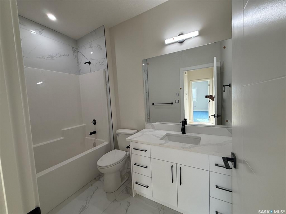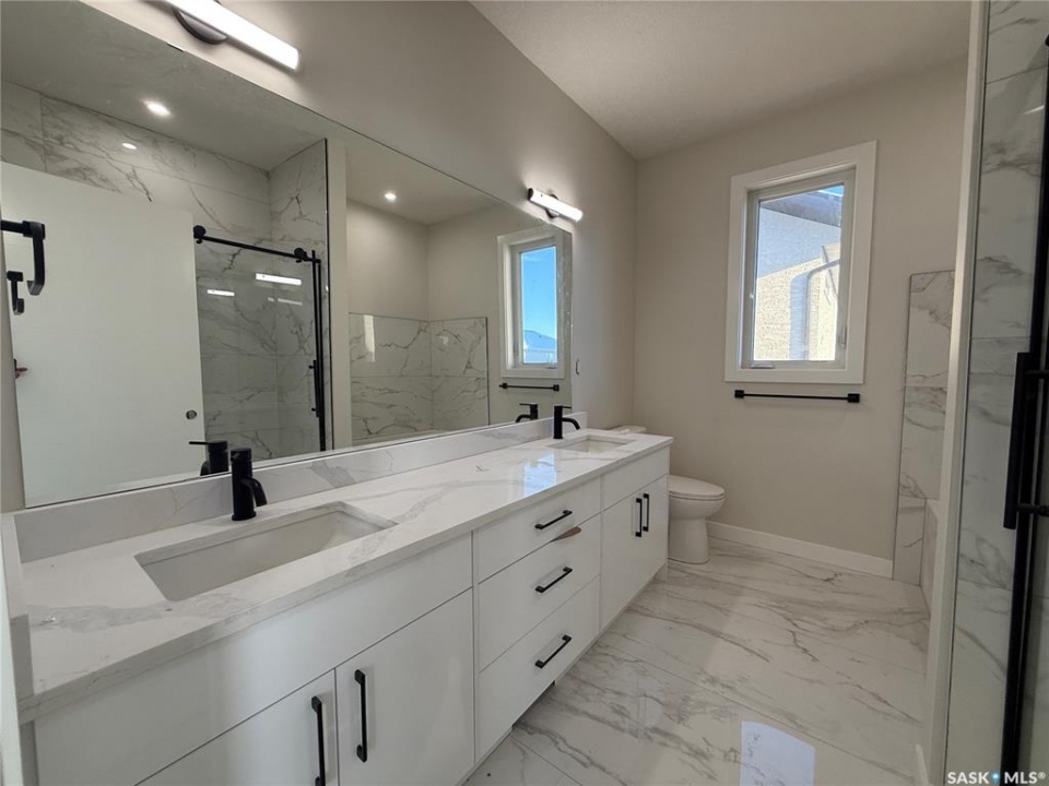 This stunning new 1,420 sq. ft. bi-level home in the City of Warman, built with care and precision with much to offer. This thoughtfully designed home offers a double concrete driveway, vinyl siding and stone work for a great street appeal. Step inside to an inviting open-concept layout featuring 9' ceilings, large windows, and an abundance of natural light. The modern kitchen is equipped with floor to ceiling cabinetry, quartz countertops, a spacious island, and plenty of storage—perfect for both everyday living and entertaining. The primary suite boasts a walk-in closet and a luxurious 5 piece ensuite. Completing the main floor are two additional bedrooms, a dedicated laundry room, and a 4-piece bathroom. Included you get a full set of appliances, driveway and a covered deck, double car garage (insulated, drywalled and heated)Ideally situated on a corner lot with back alley access and north facing windows allowing an abundance of natural light. Comes with Blanket New Home Warranty for added peace of mind. Reach out today or contact your favourite agent for more details! Home is nearly complete. GST/PST included in purchase price, with rebates back to the builder. "Note pictures from a similar build, colours may vary"