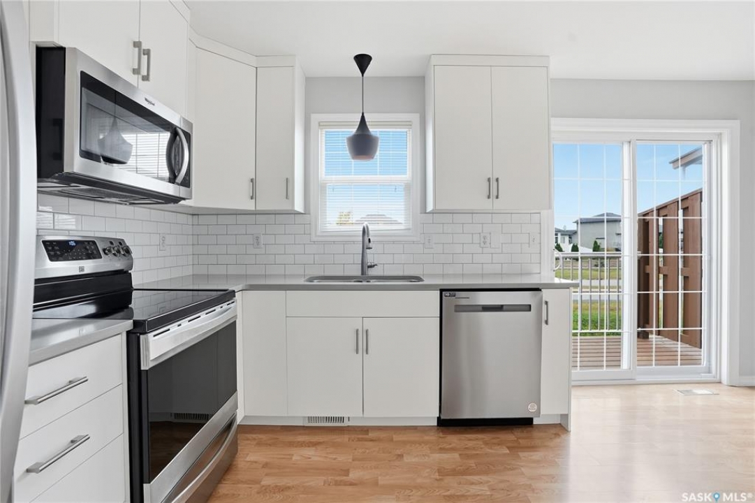 Welcome to 35-118 Pawlychenko Lane, a beautifully maintained and extensively upgraded townhome ready for immediate possession. This spacious unit offers an abundance of natural light, a smart, functional layout, and comfort-driven updates throughout. Step inside to find a bright and airy living space featuring large windows and fresh paint (2022 & 2025). The open-concept kitchen had a major renovation completed in 2017, complete with upgraded stainless steel appliances including a new dishwasher and microwave (2022) and additional pantry storage added. The adjacent dining area opens onto a private balcony, perfect for morning coffee or evening BBQs. A two-piece bathroom on the main floor adds convenience. Upstairs, you'll find two generously sized bedrooms—including a primary bedroom with a walk-in closet—plus a full 4-piece bathroom and upstairs laundry with a newer washing machine (2022). A finished flex room off the garage offers ideal space for a hobby room, office, or home gym. Additional storage space located off the flex room. The single attached garage with direct entry and an exclusive driveway provides parking for two vehicles. Significant mechanical upgrades include a new central air conditioner (2022), furnace (2021), water heater (2022), and garage door (2019)—offering peace of mind for years to come. Enjoy upgraded laminate flooring throughout the bedrooms, stairs, and bonus room (2017). Located just steps from parks, transit, grocery stores, restaurants, and amenities, this home combines low-maintenance living with unbeatable convenience.