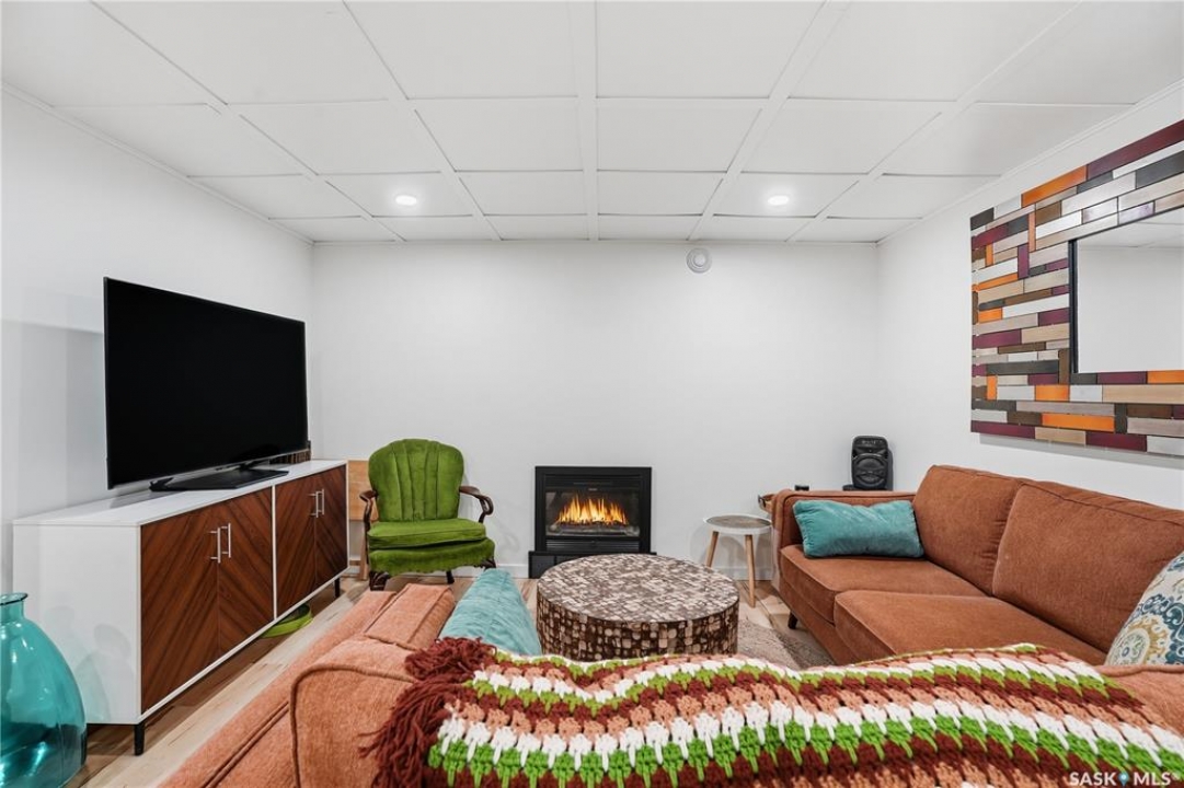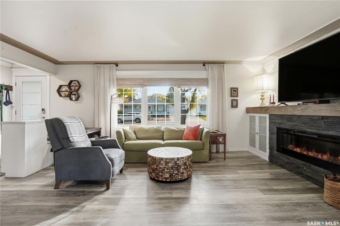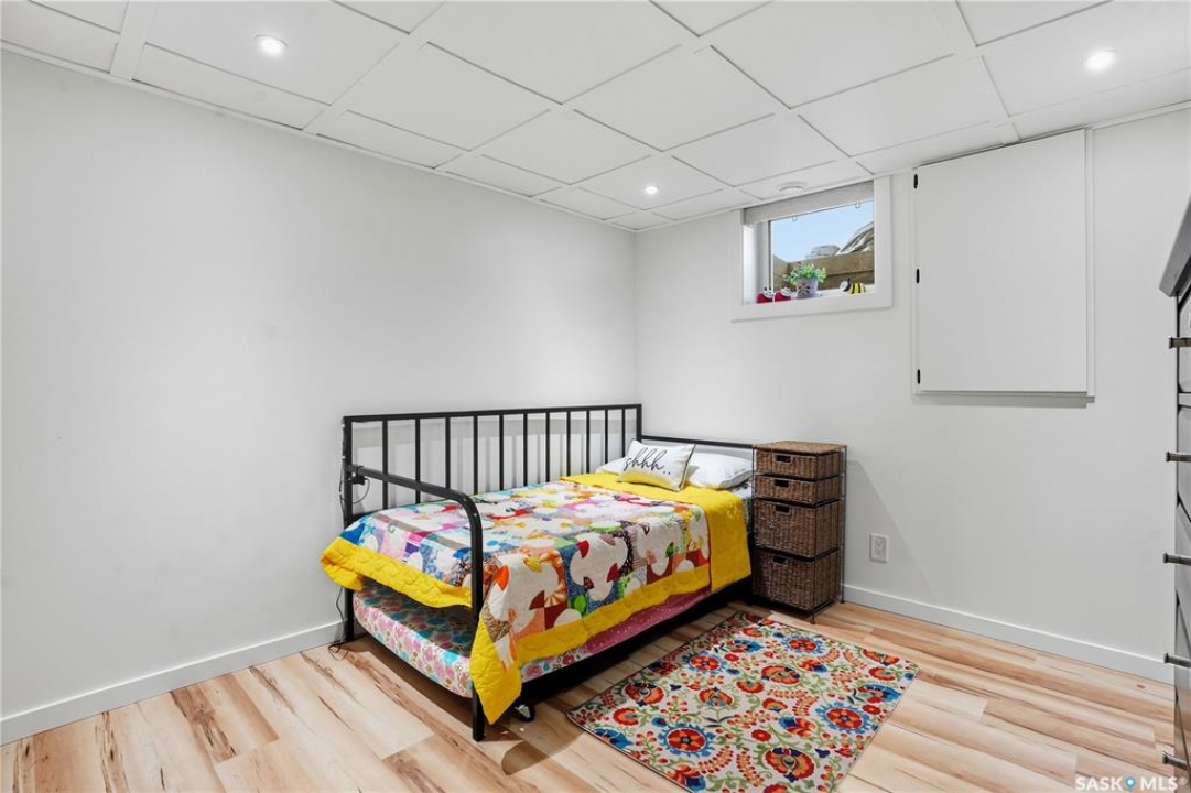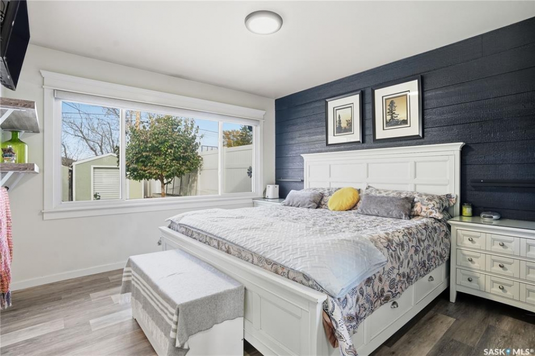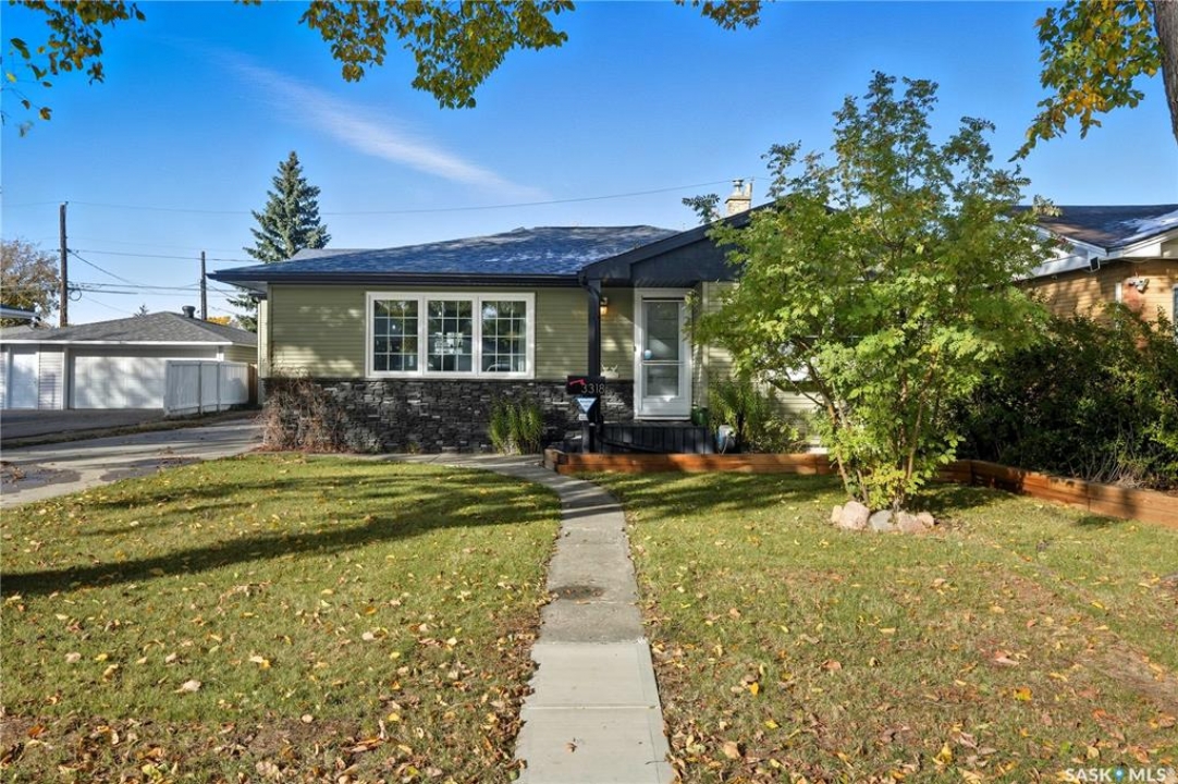 Welcome 3318 4th Avenue N! This beautifully renovated 1,054 sq ft bungalow blends modern updates with timeless charm. Offering four bedrooms and two bathrooms, the home's thoughtful layout provides flexibility — one bedroom is attached to the primary suite, ideal for a nursery or dressing room, while another has been converted into a home office. The main bathroom features a heated tile floor and a charming clawfoot tub for a touch of luxury. The farmhouse-style kitchen brings warmth and character to the heart of the home. The lower level offers incredible versatility — it can serve as a non-regulation suite or as a fantastic entertainment space complete with a wet bar and room for a full-size fridge, electric fireplace and tons of storage. Outside, you'll find a xeriscaped backyard designed for easy maintenance and year-round enjoyment. The shop-quality garage is a dream — 32x32 in size with an oversized door, steel I-beam, radiant heat, air conditioning, and a built-in radial arm saw (to stay). Recent updates/upgrades include newer siding and windows (2022), newer shingles, new LVP flooring, upgraded lighting, and motorized blinds. Seller states the north wall has been blue-skinned with weeping tile installed and run out to the street. Situated on a mature, quiet street in Coronation Park, this home is move-in ready and packed with upgrades — perfect for anyone seeking comfort, functionality, and craftsmanship. This home absolutely must be seen to be appreciated!