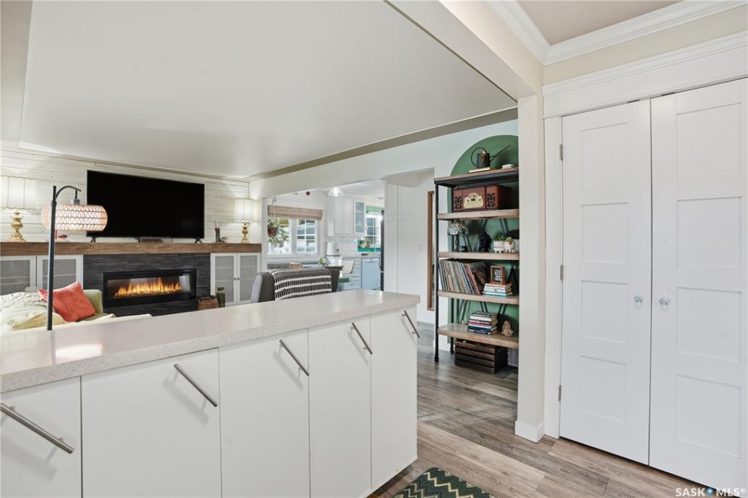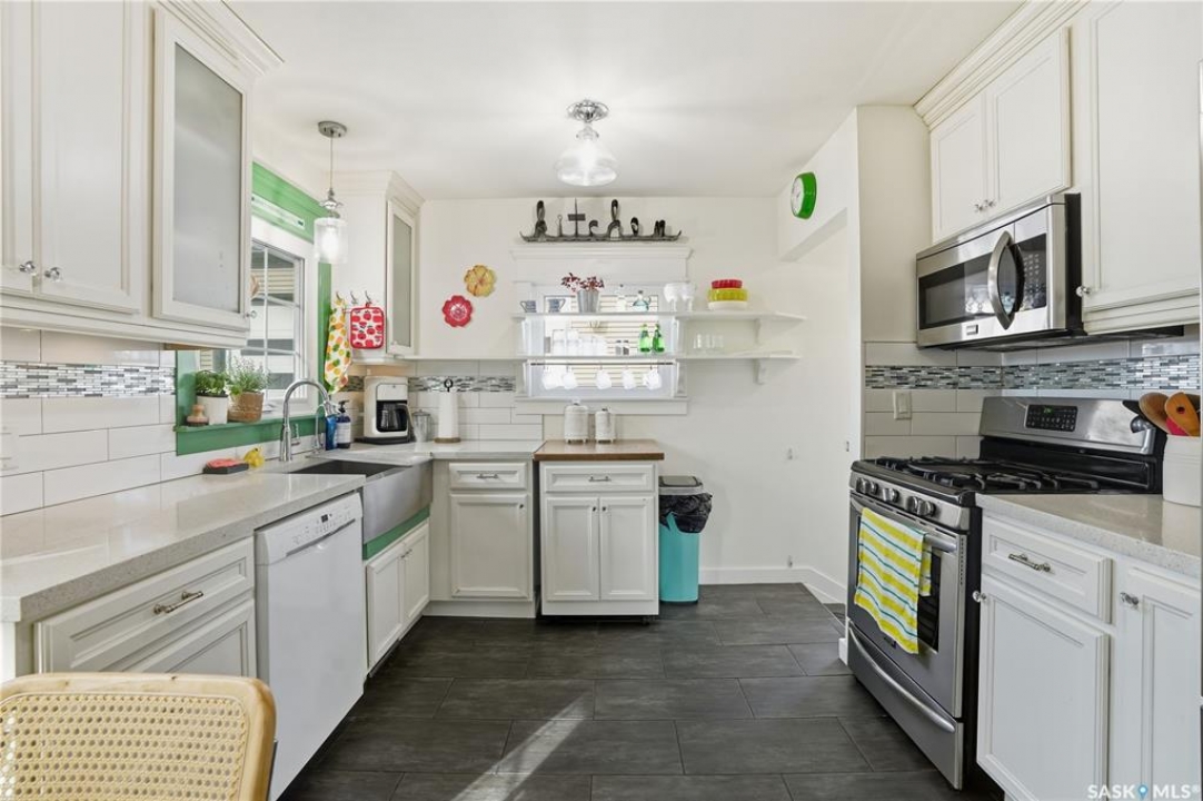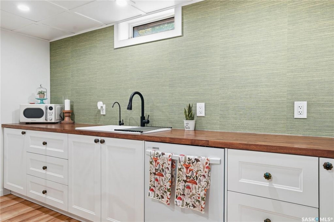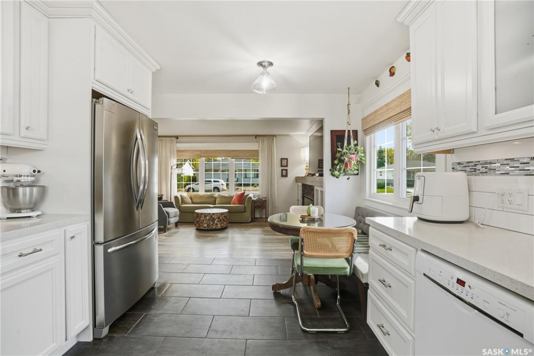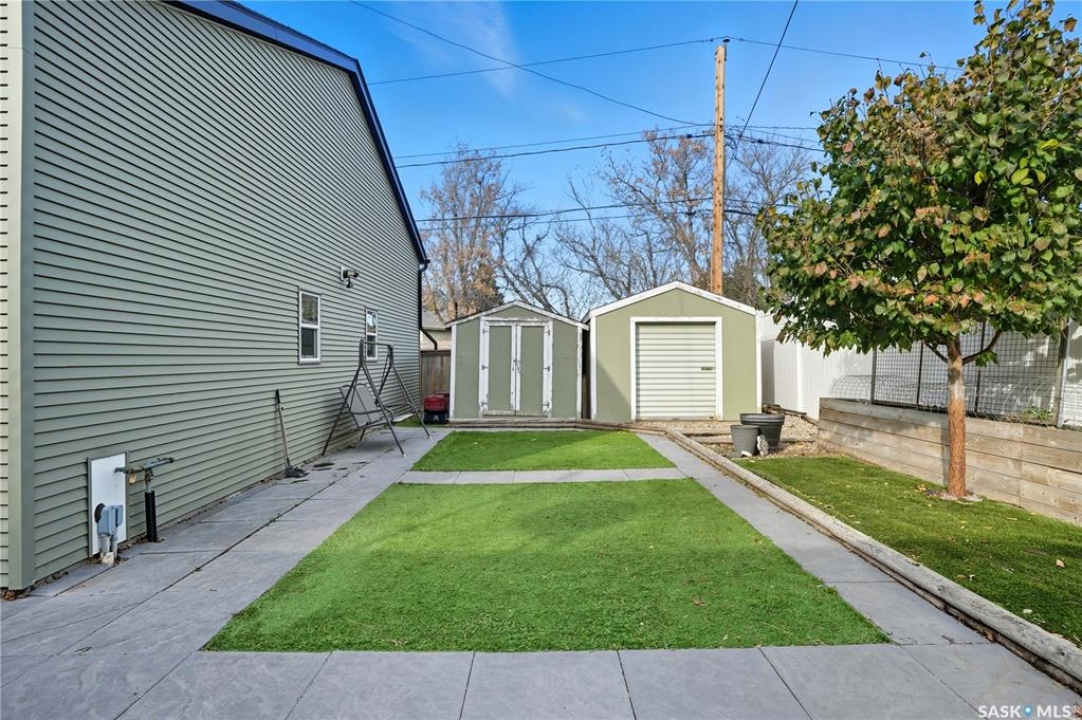 Welcome 3318 4th Avenue N! This beautifully renovated 1,054 sq ft bungalow blends modern updates with timeless charm. Offering four bedrooms and two bathrooms, the home's thoughtful layout provides flexibility — one bedroom is attached to the primary suite, ideal for a nursery or dressing room, while another has been converted into a home office. The main bathroom features a heated tile floor and a charming clawfoot tub for a touch of luxury. The farmhouse-style kitchen brings warmth and character to the heart of the home. The lower level offers incredible versatility — it can serve as a non-regulation suite or as a fantastic entertainment space complete with a wet bar and room for a full-size fridge, electric fireplace and tons of storage. Outside, you'll find a xeriscaped backyard designed for easy maintenance and year-round enjoyment. The shop-quality garage is a dream — 32x32 in size with an oversized door, steel I-beam, radiant heat, air conditioning, and a built-in radial arm saw (to stay). Recent updates/upgrades include newer siding and windows (2022), newer shingles, new LVP flooring, upgraded lighting, and motorized blinds. Seller states the north wall has been blue-skinned with weeping tile installed and run out to the street. Situated on a mature, quiet street in Coronation Park, this home is move-in ready and packed with upgrades — perfect for anyone seeking comfort, functionality, and craftsmanship. This home absolutely must be seen to be appreciated!