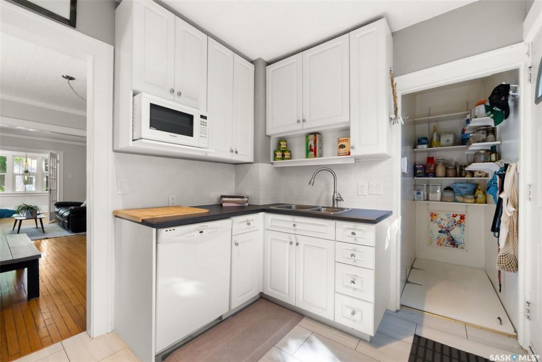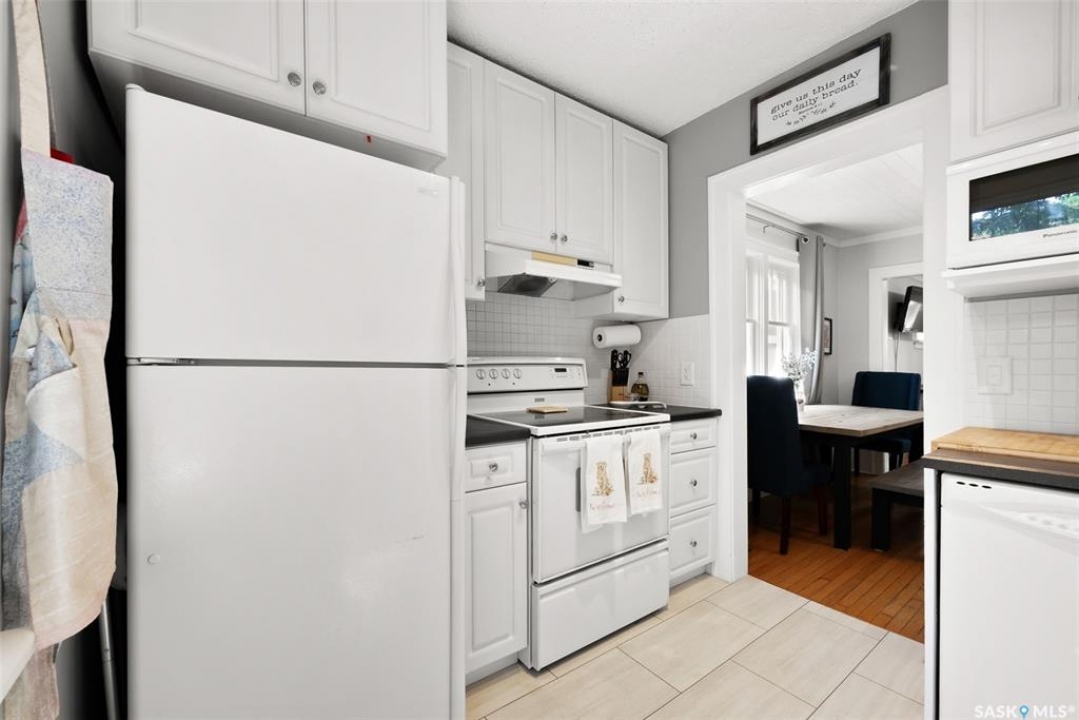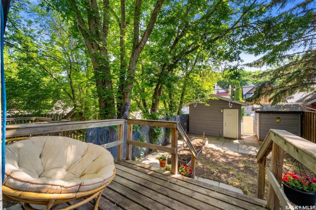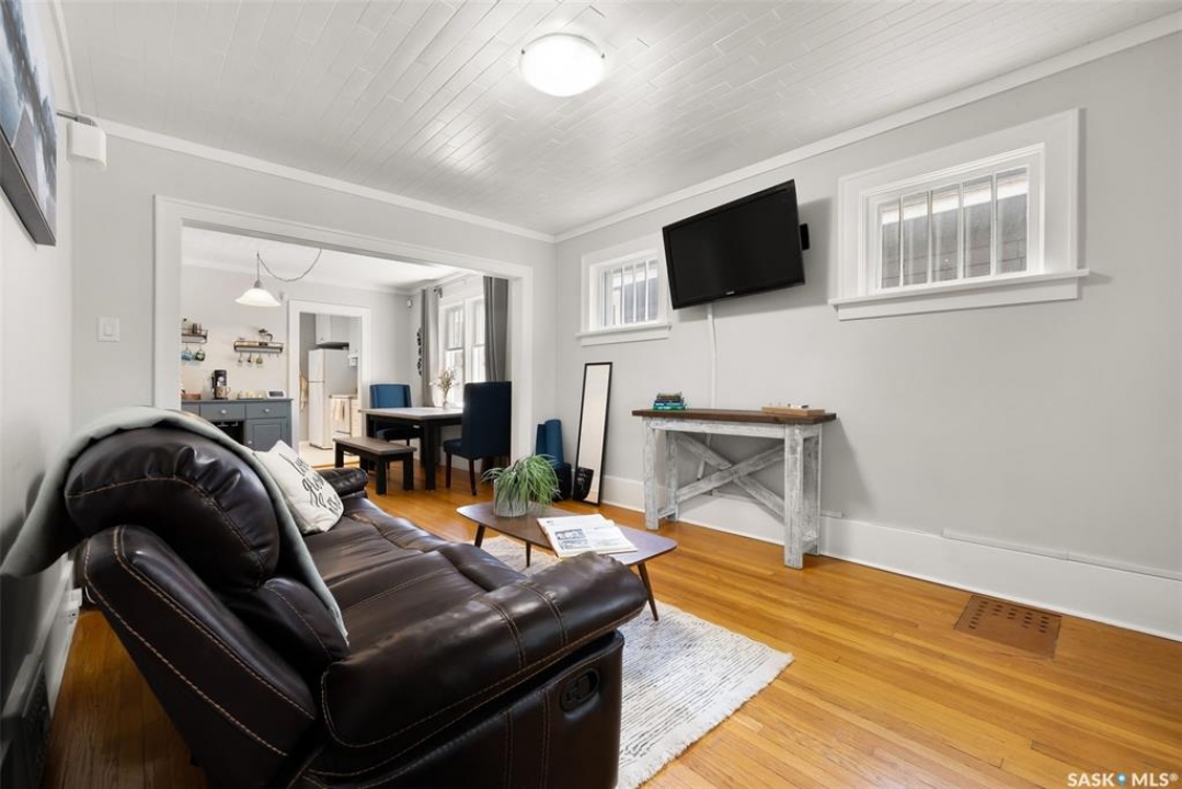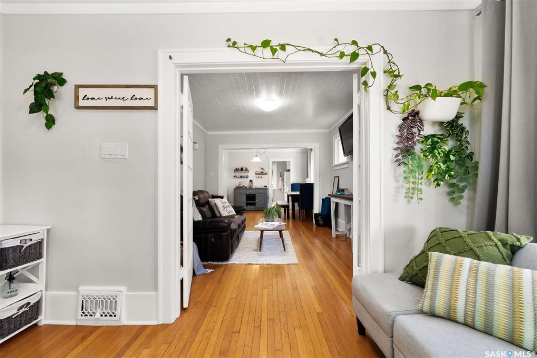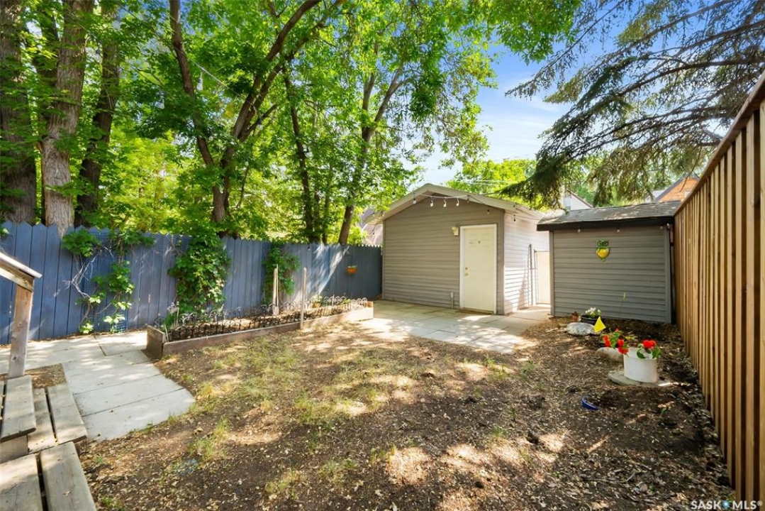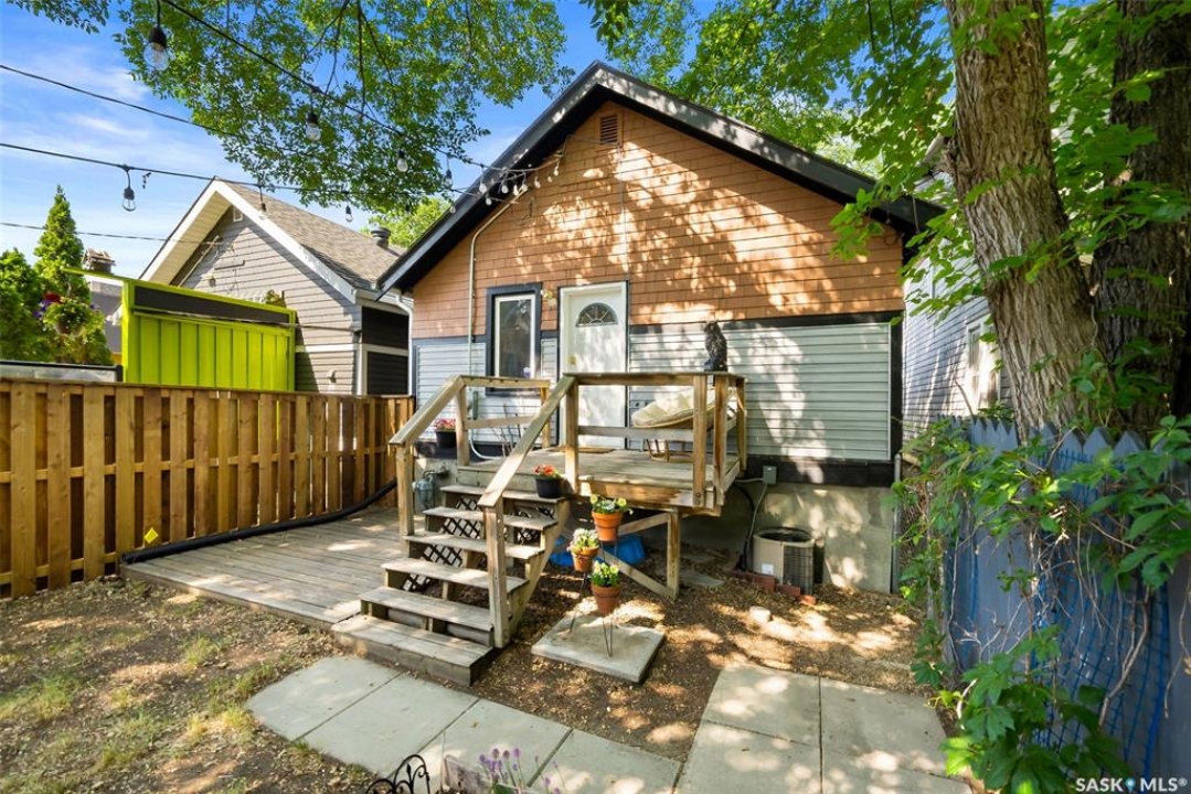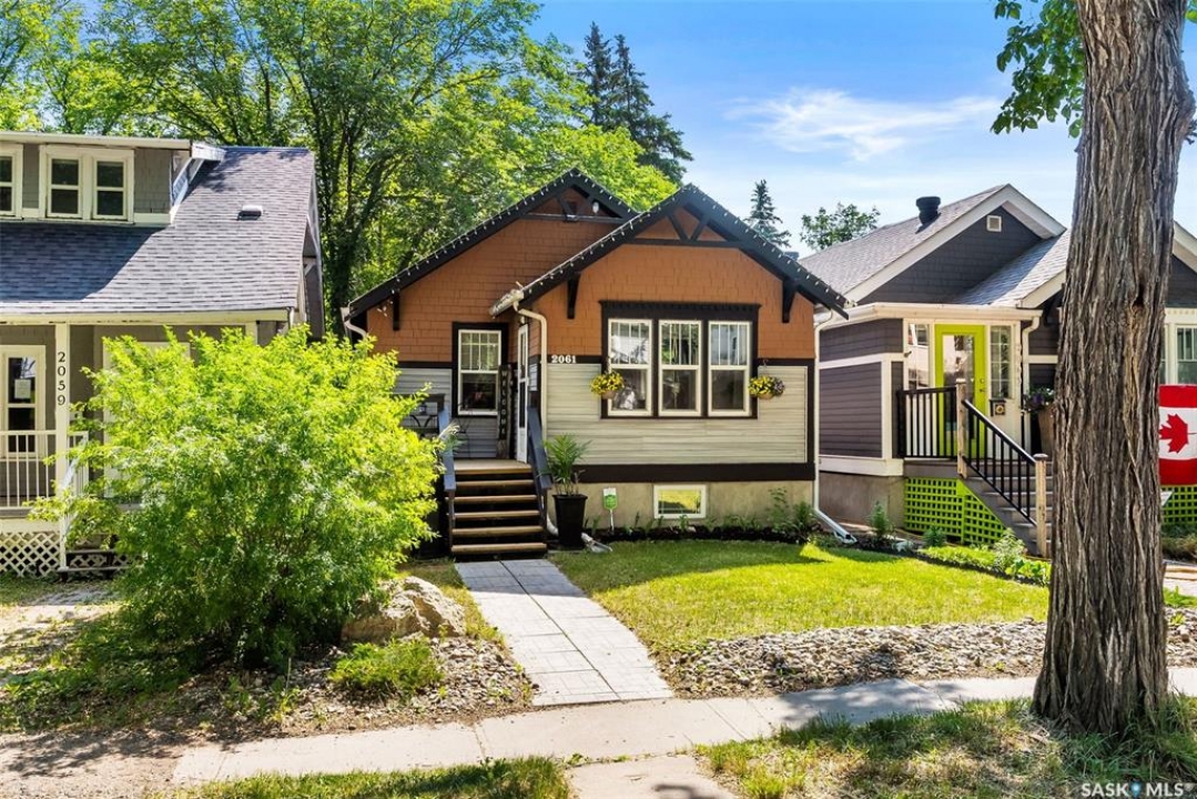 Welcome to 2061 Elphinstone Street—perfectly situated in the heart of Regina's sought-after Cathedral neighborhood. Just steps from 13th Avenue's trendy coffee shops, restaurants, and boutiques, and within walking distance to Mosaic Stadium, Brandt Centre, and Evraz Place, this home offers unbeatable access to local events and amenities. Inside, this inviting bungalow features a bright, sunlit sitting room, spacious living and dining areas, and original hardwood flooring that adds timeless character. Classic details like tall baseboards, crown molding, and plaster accents enhance the cozy atmosphere. The white kitchen offers a full appliance package and a unique foldaway pantry hatch—blending charm with functionality. The main floor includes two generously sized bedrooms and a beautifully updated 4-piece bathroom complete with vinyl plank flooring, a clawfoot tub, and modern vanity. Additional features include central A/C, a security system, and basement laundry. Enjoy the fully fenced and landscaped backyard with garden beds, patio space, single detached garage, and extra parking via the rear alley. Seller states upgrades include a full electrical replacement and new panel (2021), and half the windows replaced in 2023. Live the Cathedral lifestyle—walk to the farmers market, catch a concert, or relax with a book from a local Little Free Library. Don't miss your chance to own this charming home in one of Regina's most vibrant communities. Book your showing today!