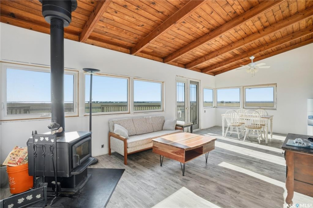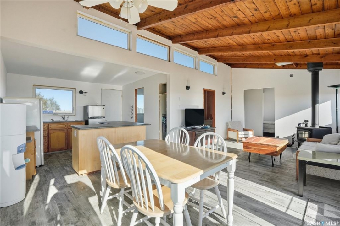 Located just one hour from Regina and a quick 18-minute drive to the town of Strasbourg, this half section (320 acres) of prime farmland sits in the RM of McKillop - just minutes from the stunning shores of Last Mountain Lake. The views here are truly incredible, offering wide-open prairie skies and rolling farmland as far as the eye can see. This property includes two cultivated quarter sections, plus 4 grain bins and a quonset, making it an excellent setup for active farming or investment. Adding to the appeal is an off-grid, 3-season cabin - the perfect hunting or getaway retreat. Set within a one-acre fenced yard, this rustic gem features spacious decks, a wood-burning stove, propane water heater, and solar power system for that self-sufficient lifestyle. Inside, the cabin offers all the comforts of home with a cozy kitchen to prep those hearty farm meals, a bright dining area surrounded by windows that flood the space with natural light, and a welcoming living room where the wood stove creates the perfect atmosphere for cooler evenings. You'll also find a full, updated bathroom, a primary bedroom, and a bonus den or guest room - perfect for friends or family staying the weekend. Whether you're looking to expand your farming operation, invest in quality Saskatchewan land, or enjoy a peaceful rural escape, this property has it all - and the cabin can easily be removed if you'd prefer to make the land completely yours. Experience the freedom of owning prairie farmland near the lake - where productivity meets peace and quiet.