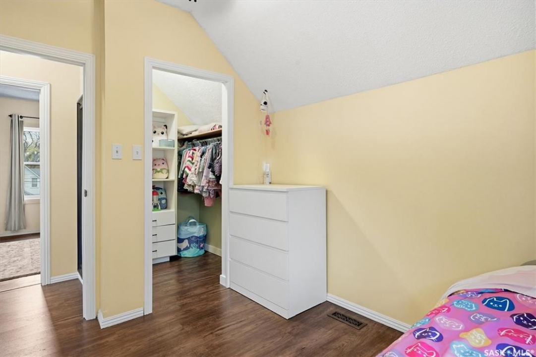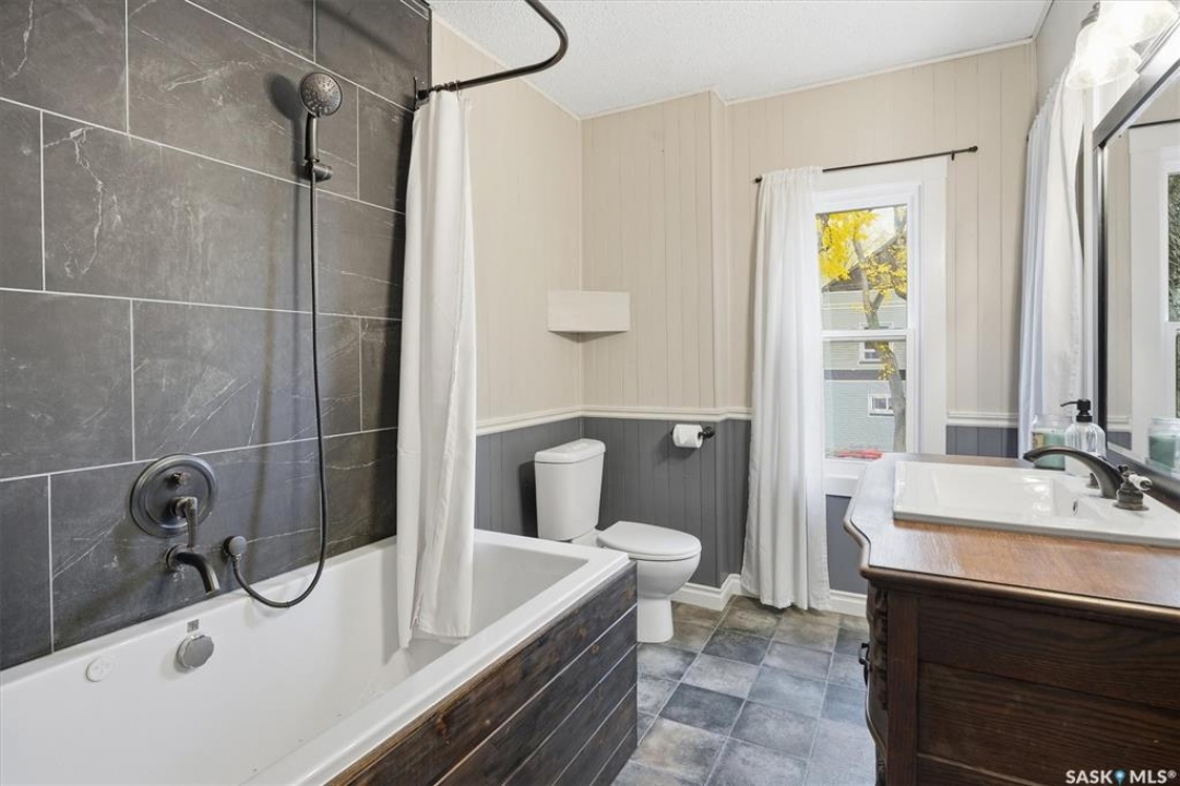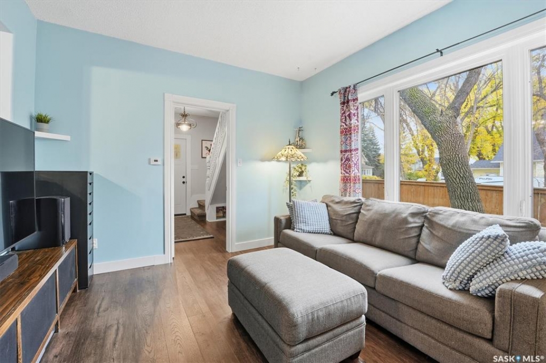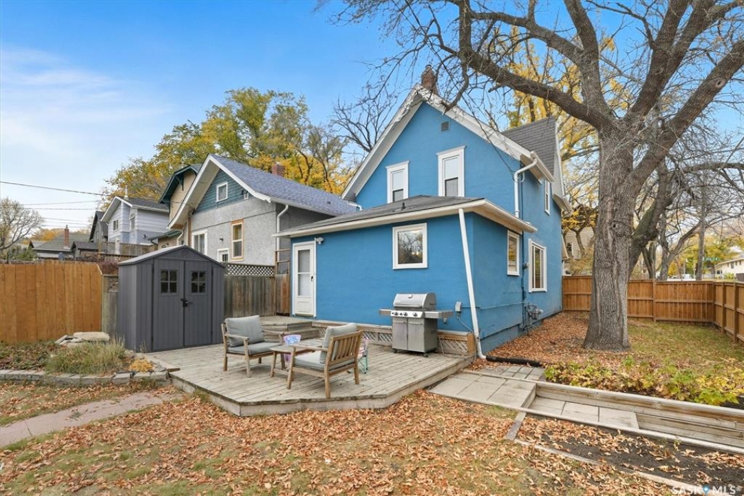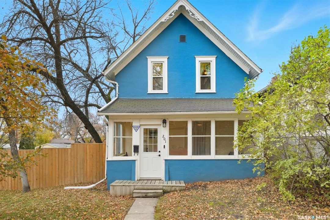 Welcome home to 201 28th Street West. If you're looking for that perfect balance of character and charm combined with modern updates, look no further. The street appeal of this beautiful home is 10/10 as you take the front walk up to the sunny enclosed front porch. Inside the main door you'll immediately be struck by the charm of the original stair rail and foyer area converted to a little library! There's one bedroom on the main floor which could also make a perfect home office. The living, dining and kitchen areas are open to one which is perfect when entertaining guests. The kitchen has lots of natural light and faces out to the backyard and deck area. Upstairs you'll find an updated bathroom with a luxurious air tub. The primary bedroom has a large closet and there's another bedroom just across the hall which also features a large closet. The basement has an additional family room space, an ample laundry/ storage room and the utility room. The backyard features a newer fence, in ground sprinklers, a single detached garage and a large deck that's perfect for relaxing on warm summer days. The yard has apple and plum trees as well as raspberries and strawberries. The windows in the home were replaced in 2024 and 2025. The sewer line and water mains were replaced in 2021. Don't miss this one. Call to book your showing today!