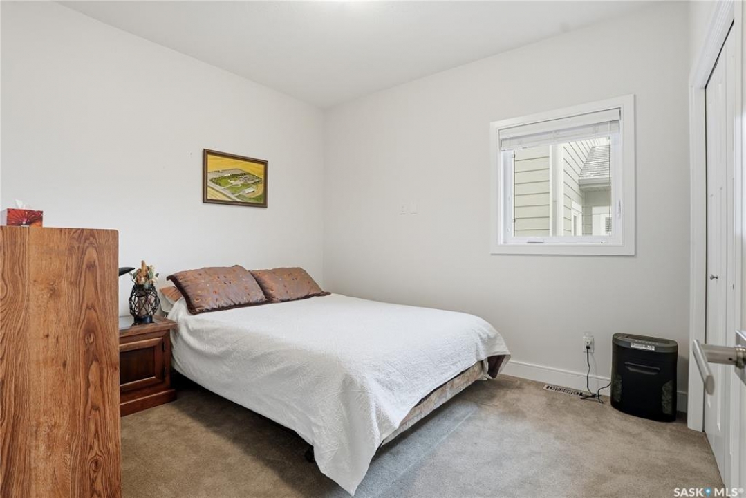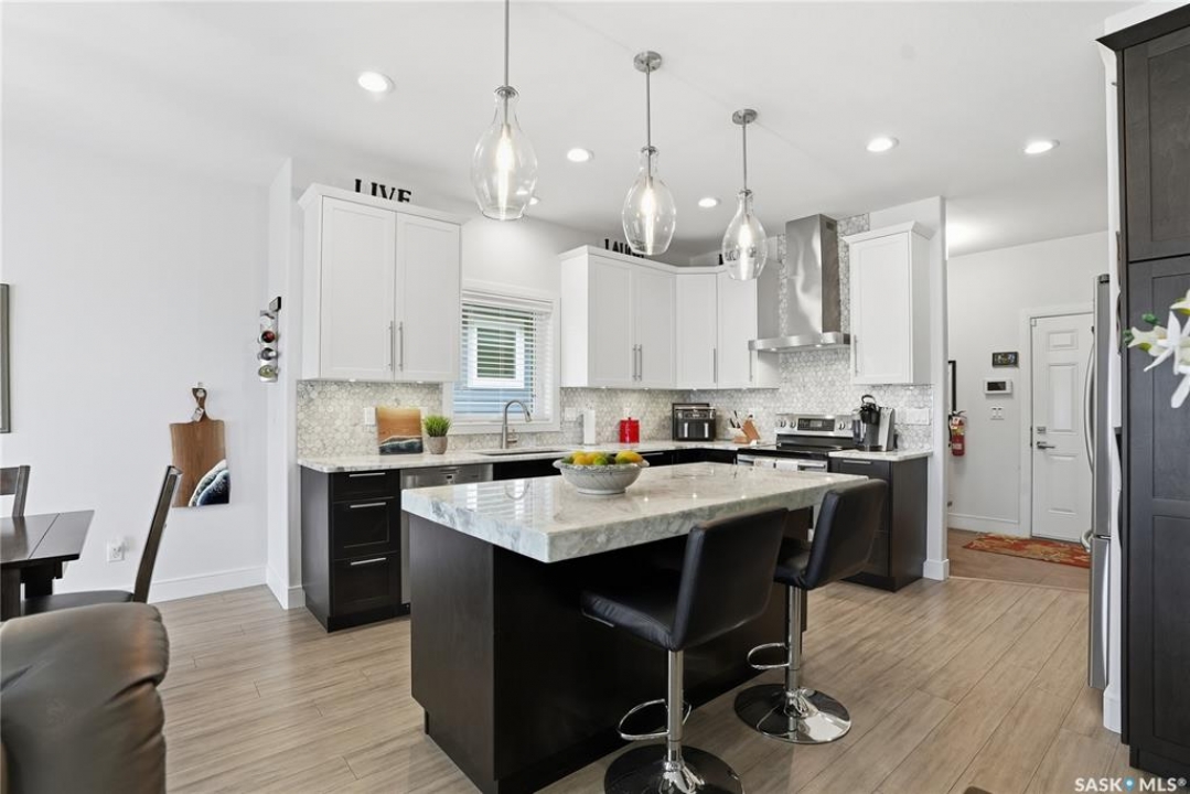 Wow! This home is truly a gem. This immaculate custom-built Fraser Homes bungalow (2014) offers 1730 ft. of fully developed living space, designed with functionality and luxury in mind. Featuring 6 bedrooms + a den, this home boasts high-end finishes, 9' ceilings, a sound system throughout, and multi-zone heating and cooling. The chef's kitchen includes a large island, custom maple cabinetry, stainless steel appliances, marble backsplash, and quartzite granite countertops. The primary suite features a spacious walk-in closet and ensuite with dual sinks and glass shower. All three bathrooms offer heated tile floors and Kohler fixtures. Enjoy maintenance-free landscaping with zero-scape turf, flagstone pathways, composite fencing, and a two-tier deck backing the park. Exterior upgrades include Trimlight LED event lighting (phone-controlled), polyaspartic-coated garage floors, and Hardie Board siding. With southwest exposure, three natural gas outlets, and a triple concrete drive, this home blends quality, comfort, and design in every detail.
