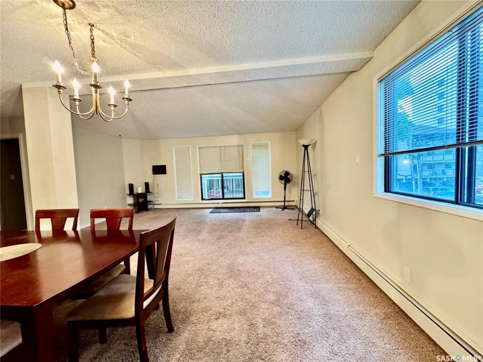 Ideal condo on 5th Avenue — perfectly situated close to City Hospital, the river, and downtown. This beautiful second-floor corner unit offers both comfort and convenience, featuring one underground parking stall (#14) located to the right of the elevator and one surface parking stall (#31) accessible down the stairwell at the back door. Additional underground storage is available in Storage Room #1-209. Inside, you'll find a bright white kitchen with tile backsplash, quartz countertops, pot drawers, a pantry with pull-out shelves, task lighting, a window over the sink, & appliances included. The dining area features a mirrored wall, a wide window, and cozy carpeting, opening onto a spacious living room with large windows and patio doors leading to a 20' x 7' deck with plexiglass inserts and DuraDeck. The primary bedroom includes a large walk-in closet and a 3-piece ensuite. Additional features include a den with shelving and in-suite laundry. Call today for your personal veiwing.