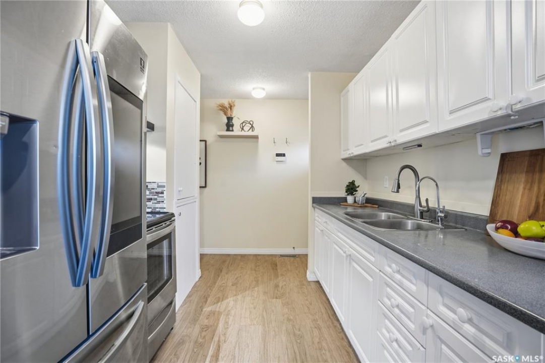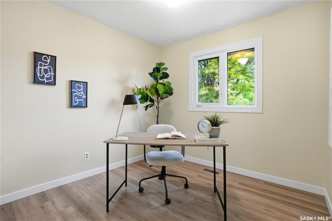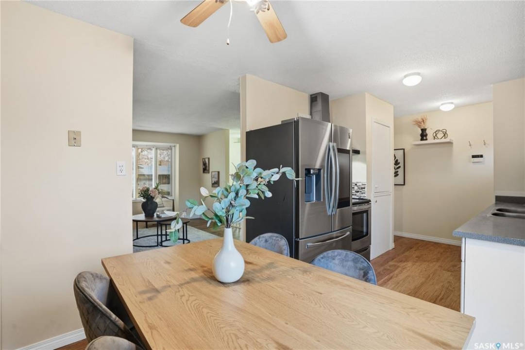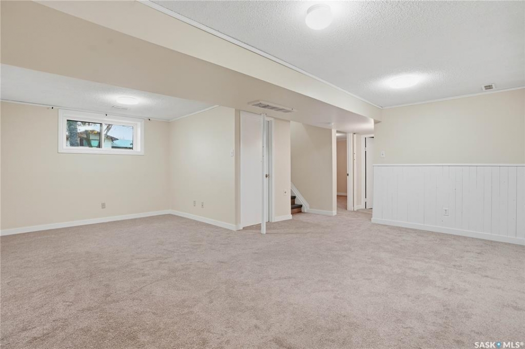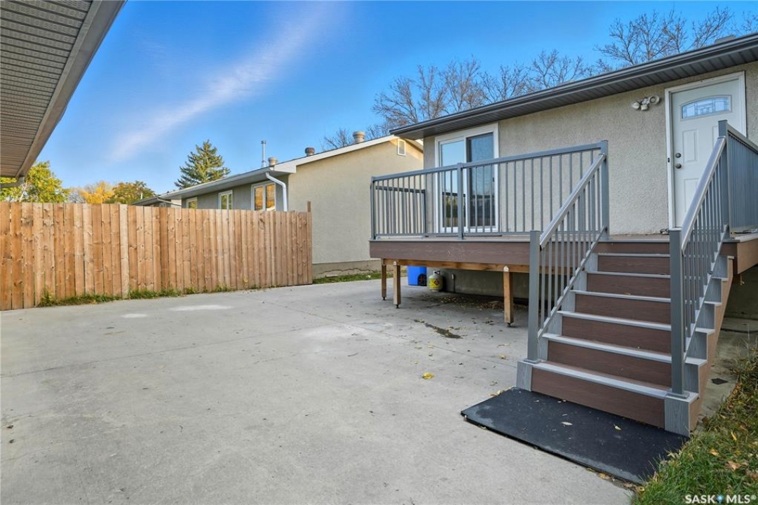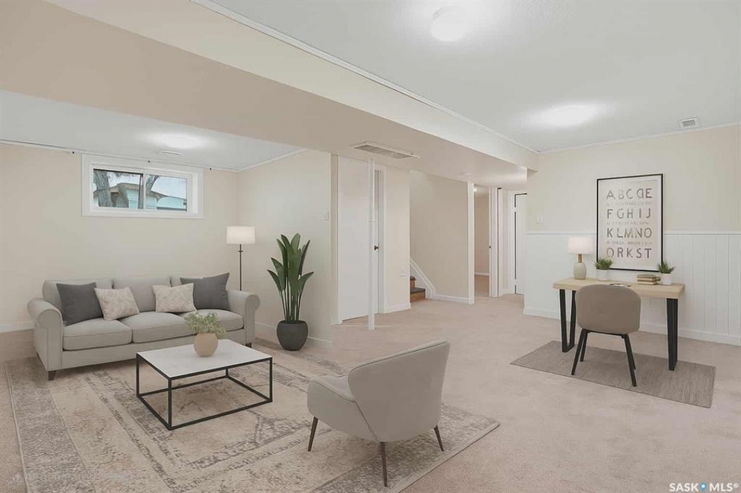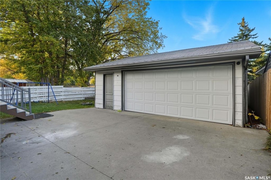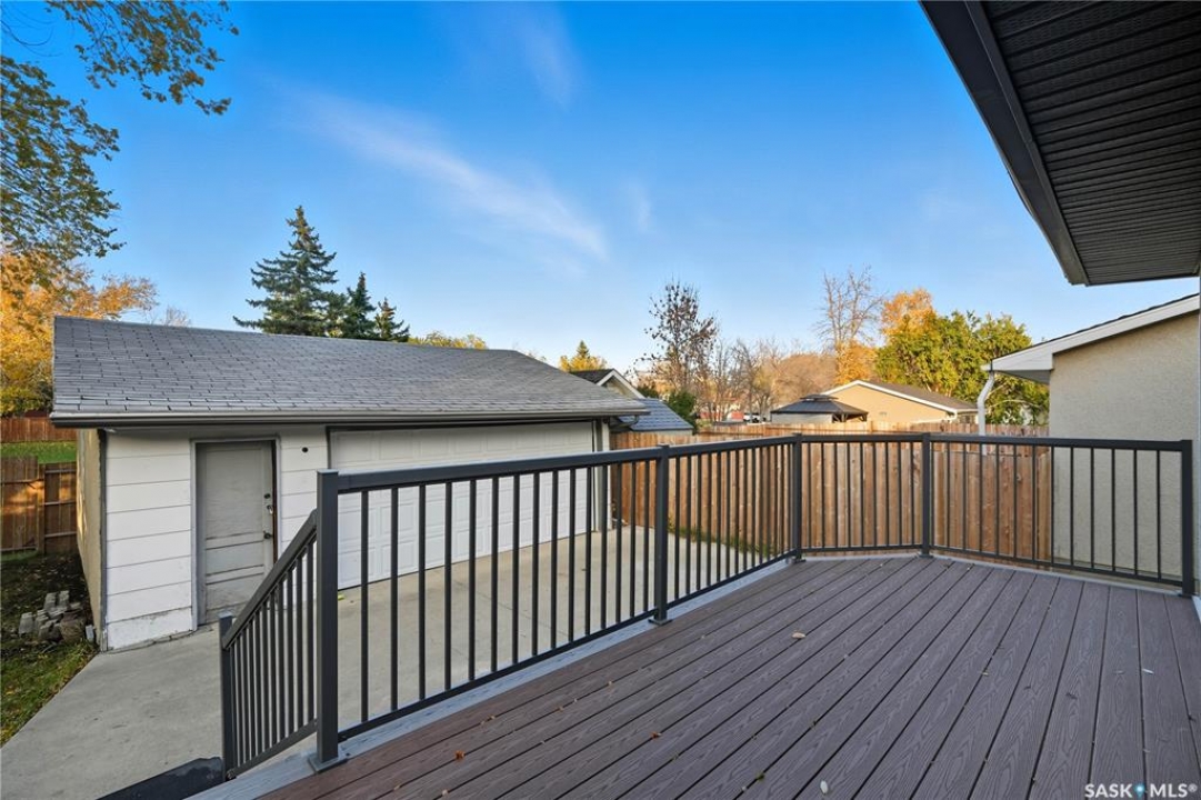 Excellent starter home, welcome home to 1722 7th Ave E — over 800 sq f this bilevel is move-in ready and full of natural light. This 2 + 1 bedroom home features a bright, south-facing living room, an updated kitchen, and a dining door that opens to a composite deck overlooking a large yard and adjacent green space — perfect for morning coffee or weekend relaxation. Lower level offers thoughtful family-ready space: a large recreation room, a third bedroom and a three-piece bath, plus brand-new carpet in the basement. Outside you'll find a double detached garage with a newer overhead door and plenty of fenced yard for kids and pets to run and play. Notable upgrades since 2021 include, flooring, electrical panel, composite deck, pvc windows, shingles replaced in 2025, new basement carpet Oct 2025, garage over head door. Comfortable, well-maintained and tucked backing onto green space — an excellent option for families or first-time buyers who want outdoor living with easy maintenance. Book your showing today to see this home in person. *Note some photos have been virtually staged*