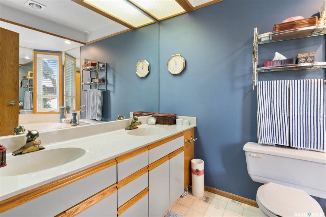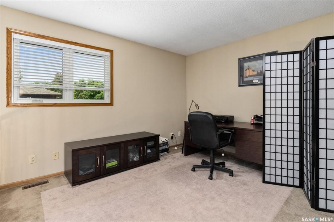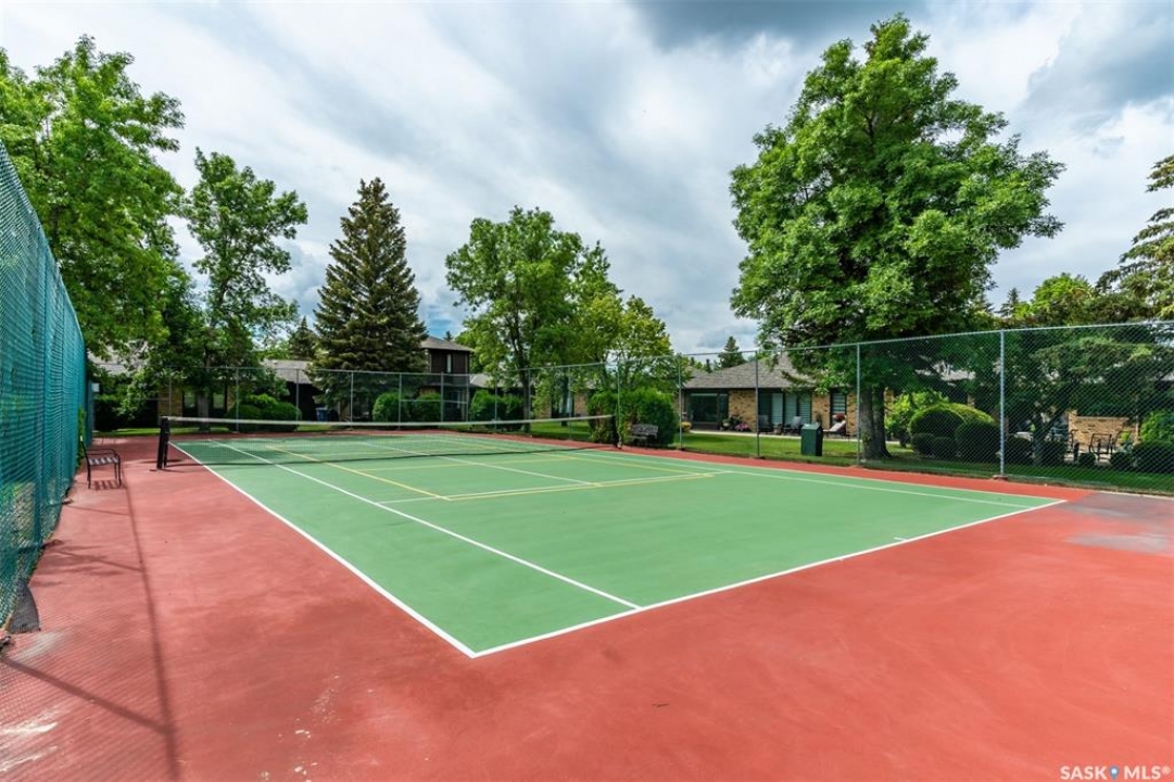 Welcome to one of Saskatoons finest condominium developments- Heritage Estates. This 1795 sq.ft, two story townhouse has had numerous upgrades including a stunning kitchen complete with leather looking countertops and island with gorgeous countertop. During the renovations they also added in a built in hutch in dining nook area. There is a gas FP in living room that compliments both dining and living room area. Garden doors off nook to rear interlocking brick patio and grassed area with the pool and clubhouse access nearby. The home offers 2 bedrooms plus a den that overlooks the main floor front entry (potentially could be a 3rd bedroom)on the 2nd floor. The Master bedroom offers 3 closets as well as a 4 piece ensuite consisting of double sinks in vanity, toilet plus a large soaker tub. The 2nd bedrooms is also a good size with double closet. The main floor also offers a 2 piece bath/laundry combination room. This home has had numerous upgrades including the triple pane LowE argon PVC windows and a upgraded water heater. The double attached garage is finished and offers direct entry (inside dimensions are 23' deep by 20' wide). The lower level has approx 9' high ceilings and is open for your own personal development. Condo fees are set at $578/month (Professionally managed) which includes common insurance & maintenance, snow removal for driveway and sidewalk and roadway within complex, lawn care, garbage & reserve fund. This development has recently had all roofs within the redone. Not only will you appreciate the luxury living space, you can immerse yourself into the community offered within this long standing condo complex. They have a variety of weekly events with a Thursday Happy hour, pickle ball, coffee gatherings and plenty of card games. You will be able to enjoy the outdoor pool, and recreation center and tennis courts that also serve as pickle ball courts. Taxes for 2025 $4111. For more information on this outstanding home contact your agent to view.