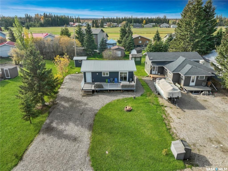 Fall Value! The work's been done, completely turn-key and ready to enjoy. This upgraded four-season cabin delivers exceptional value. Upgrades include a new ICF foundation, metal roof, fresh siding, updated electrical and new water & septic system. Inside, everything feels fresh with new paint and trim, a modern kitchen, and new flooring throughout. The cozy 640 sq. ft. layout offers 2 bedrooms and 1 bathroom, with new patio doors opening to a spacious front deck that extends your outdoor living space. Set on a 55' x 110' lot with front and back yards, a gravel driveway, and an unused back alley, the property offers great privacy and convenience. Notable features include: full furnishings, a quiet no-thru road (perfect for kids), 30-amp RV plug and parking (great for company or in-laws), firepit area, sump pump, ample crawl-space storage, two 1000-gallon water tanks, a 1000-gallon septic tank, full concrete slab, and a newly graveled driveway. Wonderful family-friendly location — just a short walk to two beaches, scenic walking paths, and a kid's park, all tucked away on a quiet no-thru road. Quick possession available — this could be #yourhappyplace.