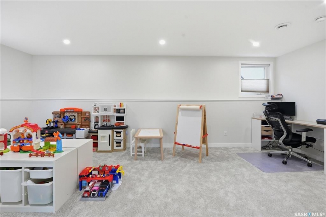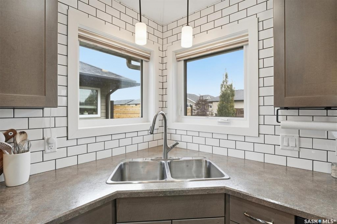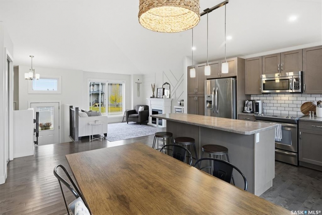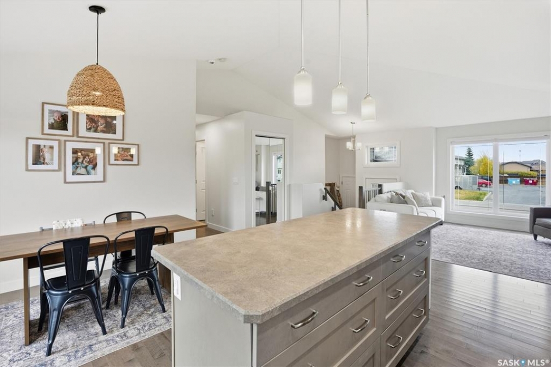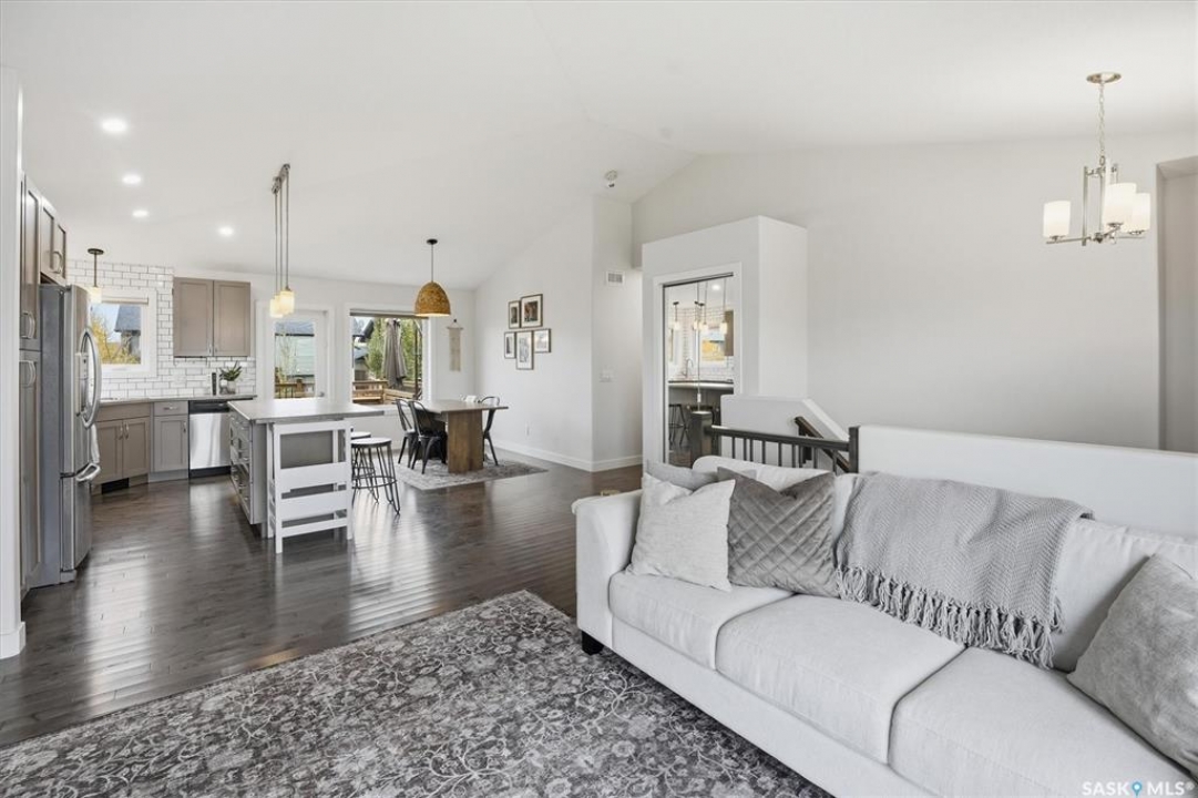 This beautifully designed bi-level home combines modern comfort with functional family living. The open-concept main floor features engineered hardwood flooring throughout the living room, kitchen, and dining areas. Vaulted ceilings and large windows fill the space with natural light, showcasing a custom feature wall in the living room. The kitchen is a chef's delight, offering a large island, abundant storage and counter space, a timeless subway tile backsplash, and a corner sink with views of the backyard. Garden doors off the dining area lead to a spacious deck, perfect for effortless indoor-outdoor entertaining. The main level includes a 4pc main bathroom and three bedrooms down the hall, including a lovely primary suite with a walk-in closet and 4-piece ensuite. The fully finished basement expands your living space with a bright family room, a games area, large windows, plush carpeting, a fourth bedroom, a stunning 3-piece bathroom, and a large laundry area with plenty of storage. The heated double attached garage impresses with epoxy flooring, and 10' ceilings. Enjoy the expansive backyard with plenty of room for kids and pets to play. Great location with easy access for your daily commute, walking distance to schools and parks. Call your favorite Realtor � today and come see it for yourself!