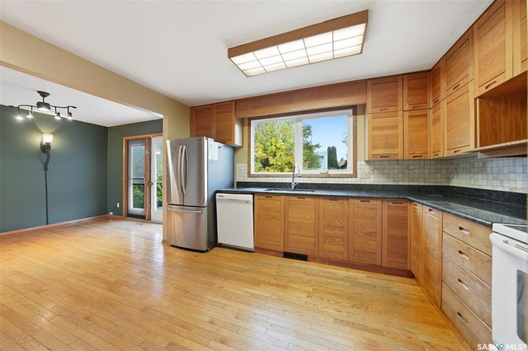 Welcome to West College Park! This spacious 1,564 sq. ft. two-storey home is a rare find having four bedrooms upstairs, three bathrooms throughout, and a single attached garage. Located on a quiet, mature street surrounded by beautiful trees, this home presents an incredible opportunity for someone ready to bring their vision to life. The main floor is bright and inviting, featuring large picture windows in the living and dining areas that flood the space with natural light. The kitchen overlooks the private park-like backyard, offering plenty of potential to create your dream culinary space. Upstairs, you'll find four well-sized bedrooms, perfect for growing families or those needing extra office or hobby space. Several big-ticket items have already been updated, including some newer windows and shingles replaced in 2018, giving you a great head start. This home offers great potential for buyers eager to personalize and update to their own taste, with a little vision and cosmetic updating, it's a wonderful opportunity to create lasting value in a well-established neighborhood. Outside, the large, tree-filled backyard provides privacy and space for kids, pets, and summer entertaining. Conveniently located near schools, parks, the University of Saskatchewan, and all amenities, this home combines location, space, and potential—a rare find in today's market. Bring your ideas and make this West College Park gem your own!