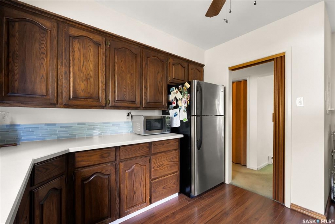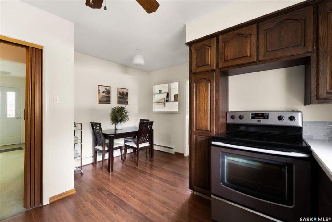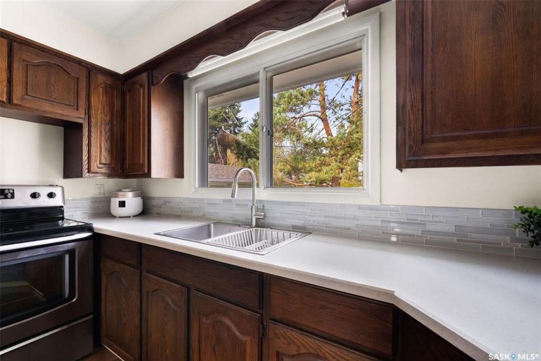 If you've been searching for your next family home in Regina's south end, 10 Dunning Crescent might be the one you've been looking for. This 1,232sqft bungalow is tucked away on a tree-lined crescent in the heart of Hillsdale, just steps away from Wascana Park, University of Regina, and the Conexus Art Centre. Walk in, and immediately be impressed with all the natural light that floods into the living room picture window. The dining room offers a built-in china cabinet. The kitchen has seen a recent refresh with stained oak cabinetry, glass tile backsplash, stainless steel sink, and countertops. The main floor offers three bedrooms and a large full 4pc. bath. The lower level is accessible through a direct back entrance so could be easily transformed into an income suite and offers a huge rec. room, spare flex room, a 4pc. bath, and laundry/storage area. Outside, you'll find a fully fenced, well-established yard with a shed and a single detached garage. Don't miss out on this incredible home in an outstanding location!