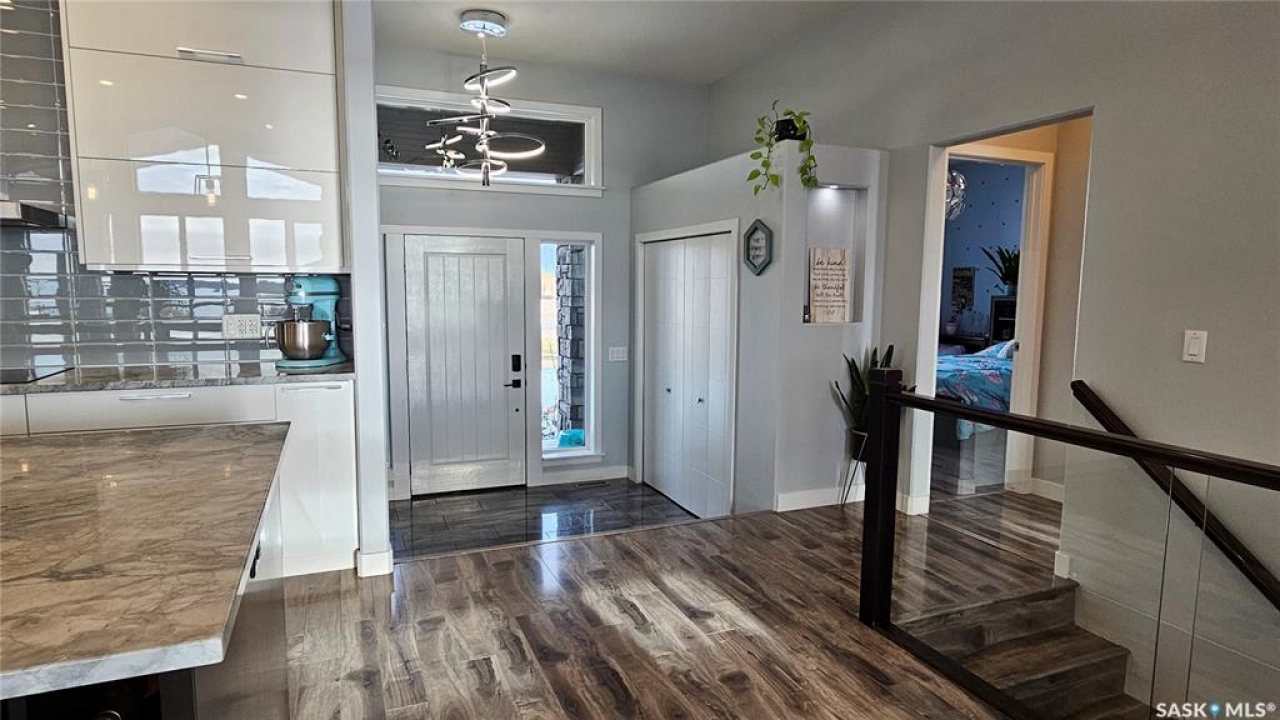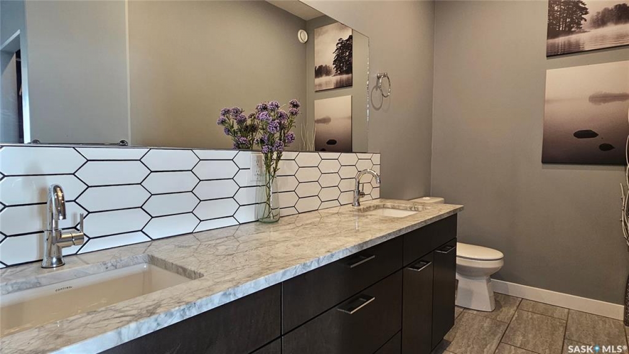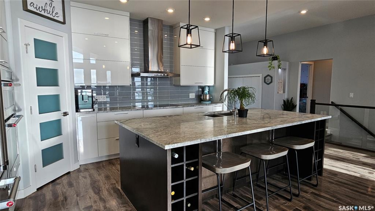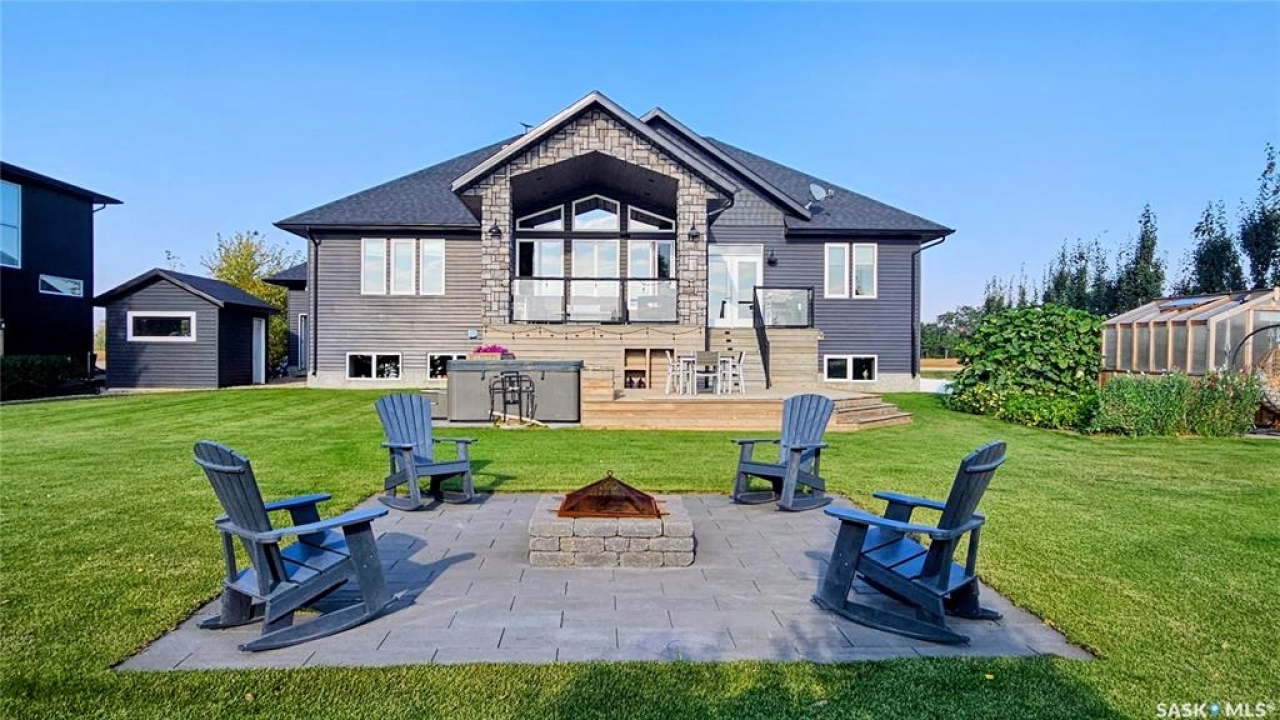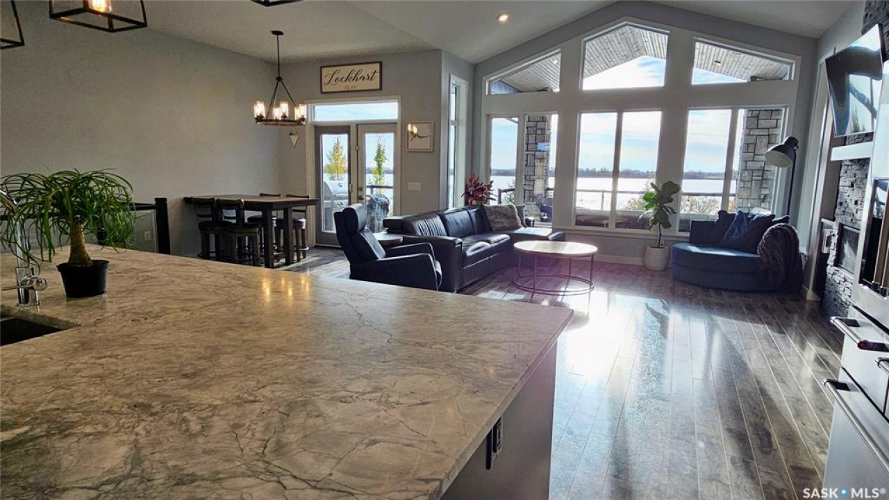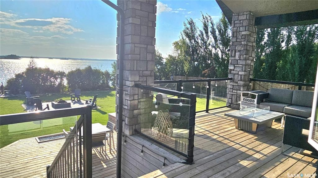 Welcome to this exceptional 1,882 sq. ft. raised bungalow, built in 2016 and perfectly positioned on the waterfront at Humboldt Lake. This high-end 5-bedroom, 3-bathroom home showcases exceptional craftsmanship, timeless finishes, and modern comfort throughout. The main floor offers an inviting open-concept layout featuring custom cabinetry, granite countertops, and premium KitchenAid appliances centered around a stunning oversized island—ideal for family living and entertaining alike. With three bedrooms on the main level, there's ample space for families or guests. The primary bedroom is a true retreat, featuring a beautiful en-suite, complete with heated tile floors, a free-standing tub, and a luxurious three-head walk-in shower. The fully finished lower level is designed for entertaining, featuring a custom wet bar with island, bar fridge, and built-in ice maker. The home is Ethernet wired throughout and includes Starlink internet, Gemstone exterior lighting, central vac with dustpan kicks, and a large heated garage. Step outside to enjoy a beautifully landscaped yard with underground sprinklers, a two-tier deck with enclosed storage, stone patio and firepit, natural gas BBQ and fire table hookups, and a 20' Koenders dock ready for lakeside living. The adjacent municipal greenspace ensures lasting privacy and unobstructed views—no future neighbours. This property truly offers it all—luxury, privacy, and the perfect lakefront lifestyle. A must-see!