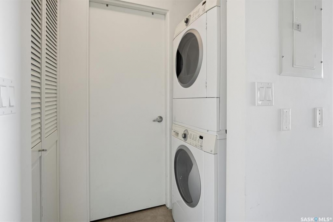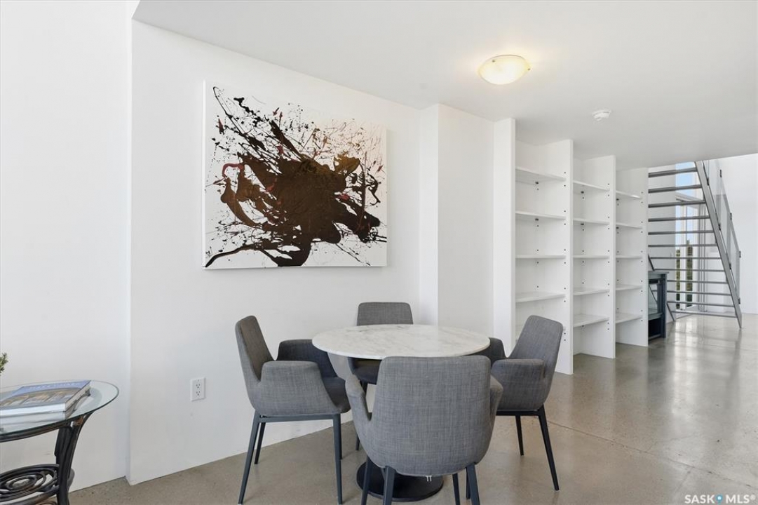 Top floor CORNER unit with massive wrap around balcony overlooking the city sky line! Welcome to the 2nd Avenue LOFTS where modern downtown living meets comfort and architectural character. This spacious 1,075 sq. ft. loft-style condo offers an open-concept layout with soaring ceilings, large windows, and a wraparound balcony that provides sweeping views of downtown Saskatoon. The highlight of this home is the large wraparound balcony overlooking Saskatoon's new central library and the proposed new rink and event venue — the perfect spot to enjoy your morning coffee while taking in the energy and excitement of Saskatoon's downtown revitalization. Located on the exclusive fifth floor—the only level equipped with central air conditioning—this unit ensures year-round comfort. The interior features polished concrete floors, a bright and functional kitchen, and a generous bedroom suite with a four-piece bath. This units updated kitchen includes brand new stainless steel kitchen appliances. A tandem underground parking for two vehicles is included for convenience and security. The installing of a vehicle lift is permitted as well (with board approval). The 2nd Avenue Lofts building offers residents access to excellent amenities, including a fully equipped gym, a recreation area with ping pong tables, a modern meeting room, and one of the best roof top patio areas (located on 3rd level) in the city. Situated in the heart of the Central Business District, you'll be steps away from restaurants, shopping, and the river valley trails. A unique opportunity to own one of the most desirable units in this sought-after building.