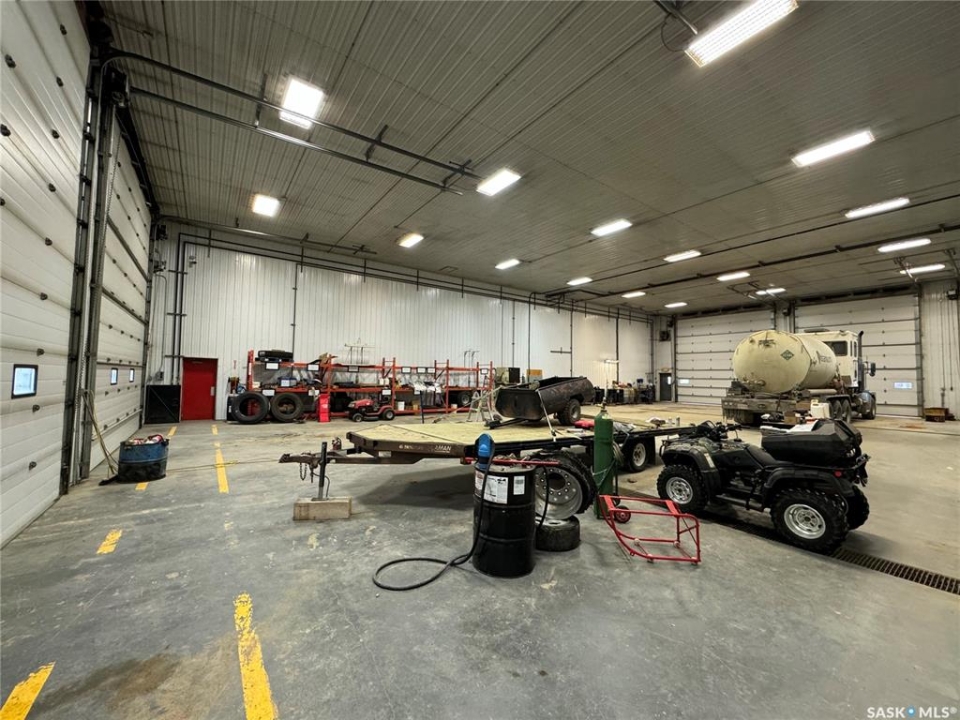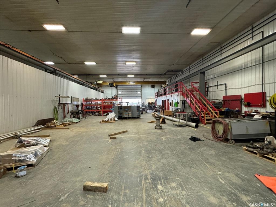 This impressive 24,000 sq ft commercial shop located in the industrial park along Highway 39, just east of Estevan, offers a prime location and exceptional functionality. With 20,000 sq ft of dedicated shop space, the property features one large 75x100 bay, two 50x100 bays each equipped with a 10-ton crane, and a 25x100 wash bay for added convenience. The remaining space is allocated to well-designed office areas, perfect for managing business operations. Situated on 8 acres of land, this property provides ample room for outdoor storage or expansion, making it ideal for heavy industrial use or businesses looking to grow.