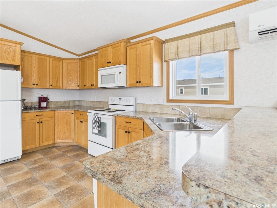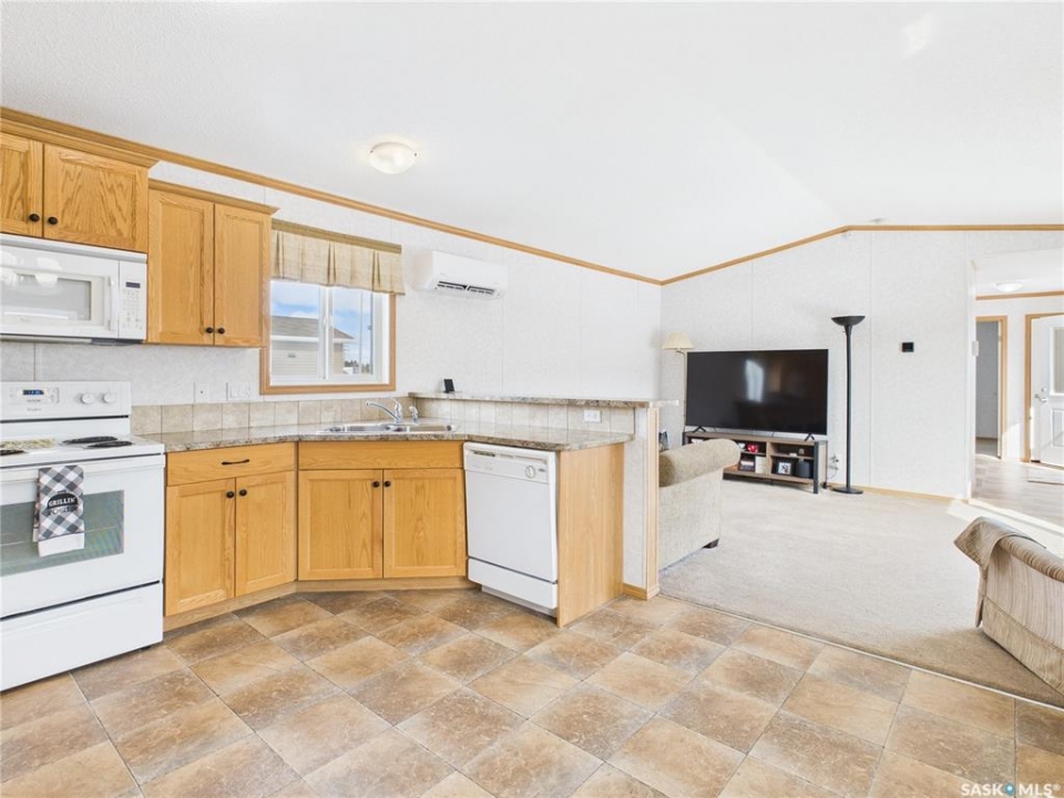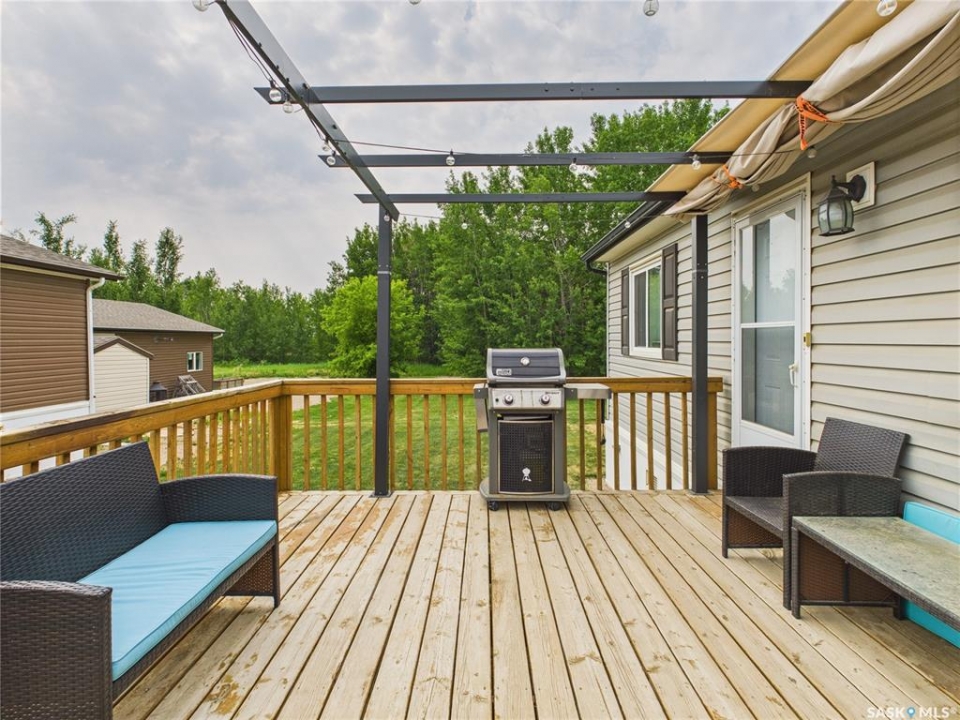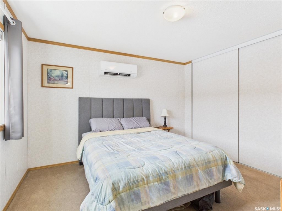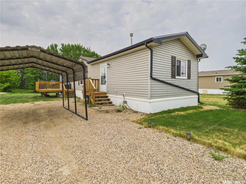 Looking for a move-in ready home with space, privacy, and thoughtful upgrades? This 2013 mobile located in the sweet town of Shellbrook delivers just that - on an owned .22-acre lot with no pad fees and room to spread out. With 3 bedrooms and 2 bathrooms, the layout offers great separation: two bedrooms and a full bath at one end, and the primary suite (with ensuite and laundry) at the other. The kitchen features maple cabinetry, under-cabinet lighting, a raised bar counter for casual dining, and space for a smaller table. The oversized living room provides flexibility for everyday living or entertaining family and friends. This home has been exceptionally well cared for, with upgrades including wall-mounted A/C units, dimmable light switches, and custom honeycomb blinds on every window, boosting the R-value and helping maintain consistent comfort year-round. Outside, the .22-acre lot has been landscaped with added lawn in the front and back, and stretches all the way to the back of the first row of trees, offering a natural backdrop and extra privacy. You'll also find a freestanding carport, gravel driveway with space for 6–8 vehicles, and a covered pergola that's perfect for catching some sunshine while having a cup of coffee in the morning. This property is clean, solid, and move-in ready - ideal for a first-time buyer, downsizer, re-starter, or anyone looking for a fresh start just on the outskirts of town. Be sure to check out the virtual walkthrough to get a closer look at everything this great home has to offer!