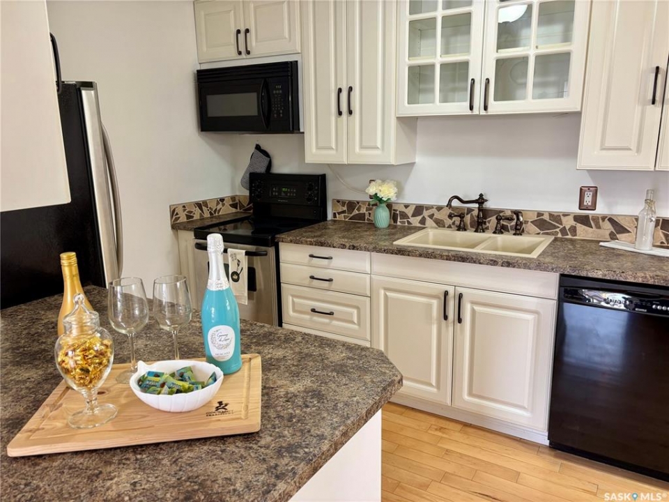 Super cute one bed, one bath main level condo (no stairs to climb) located in the lovely residential area of Gardiner Heights. Wonderful opportunity to own you own very affordable property and stop paying rent. Located close to all east end amenities such as grocery stores, restaurants, pharmacies, coffee shops, parks, and schools, and a quick drive to the U of R and Sask Polytech. This cozy unit offers hardwood flooring throughout the living room, kitchen and dining area. Lovely kitchen features bright cupboards, and the added bonus of a built in dishwasher. Living room offers large windows allowing lots of natural light into the space. Good size bedroom, 4 piece bath and a laundry/storage room with lots of cabinets complete the unit. One dedicated parking stall is included. You can also enjoy the outdoor swimming pool in the summer months. Quick possession is available.
