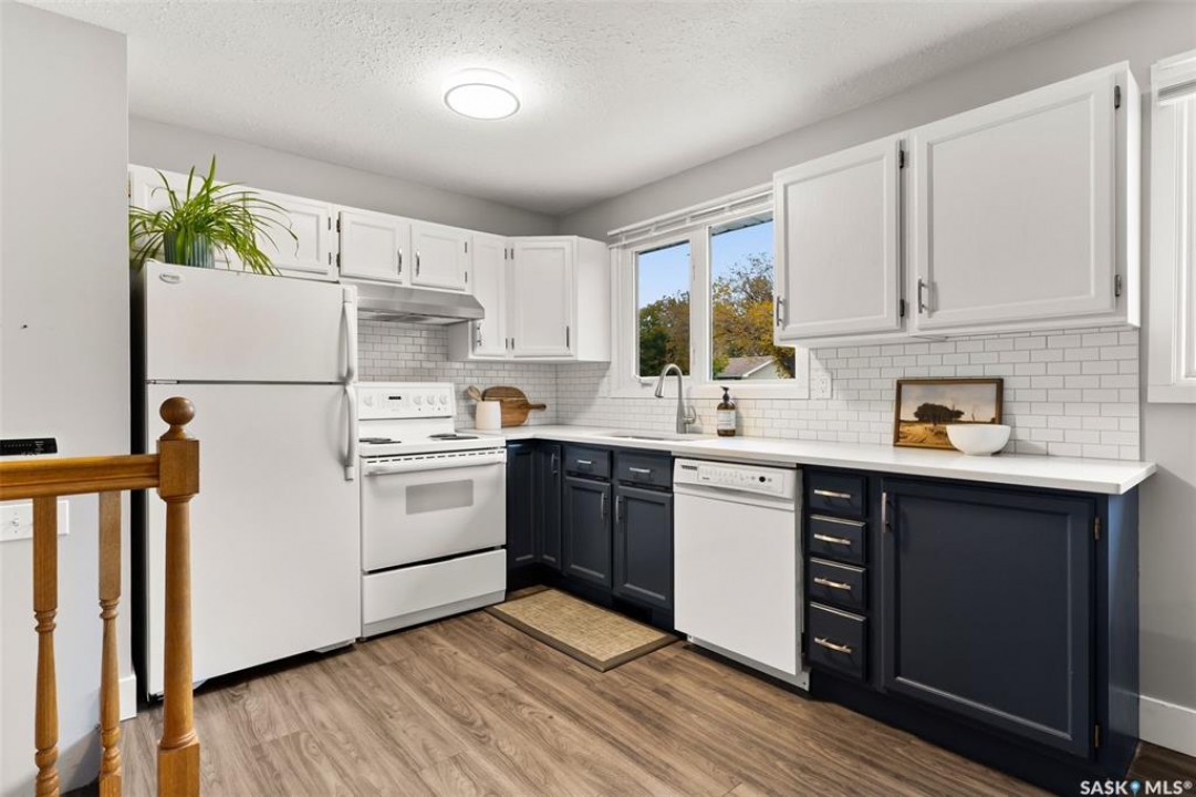 Welcome to this beautifully updated home in a prime North West location in Sherwood Estates, just steps from Storey Park. Enjoy a bright, open main living area featuring laminate flooring throughout the living, kitchen, and dining rooms, complemented by pot lighting in the living room. The modern kitchen offers quartz countertops, a subway tile backsplash, and plenty of workspace for the home cook. Three bedrooms are located on the main floor along with an updated bathroom complete with a relaxing soaker tub. The basement has been thoughtfully finished, featuring a fantastic layout with a large rec/theatre room, wet bar, and an additional den ideal for a home office. You'll also find a fourth bedroom with a walk-in closet and a 3-piece bath. Additional highlights include a high-efficiency furnace, PVC windows on the main (except picture window), a 24' x 24' heated garage, and a private backyard with a fire pit and garden area. Relax on the front deck while enjoying views of Storey Park. Located close to Ring Road and the 9th Avenue bypass with quick access to great North end amenities and schools, making this is an excellent place to call home!