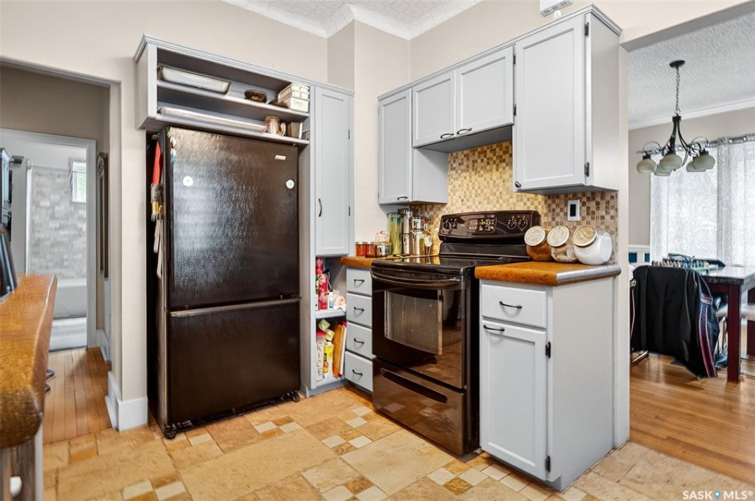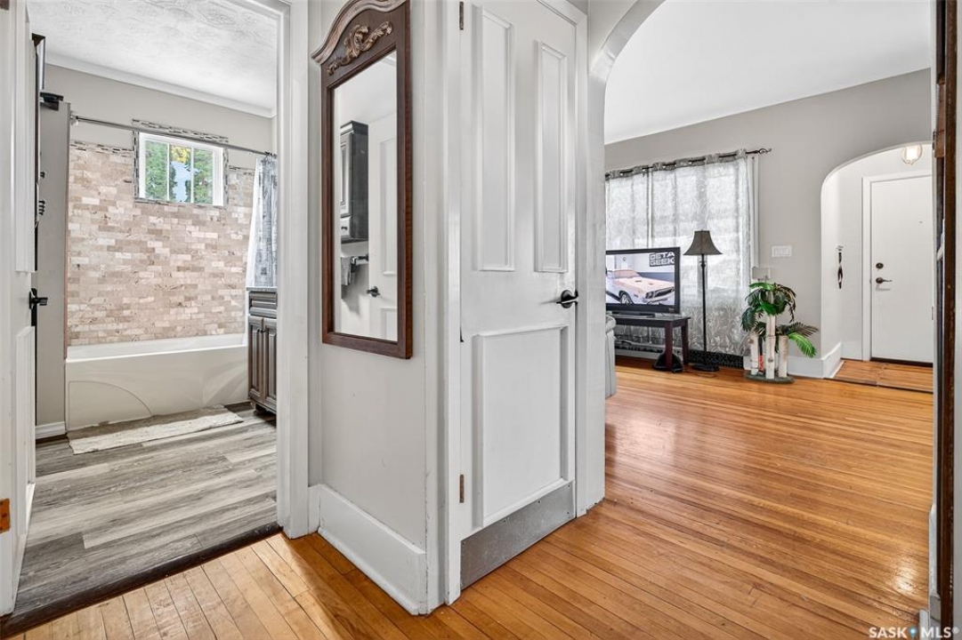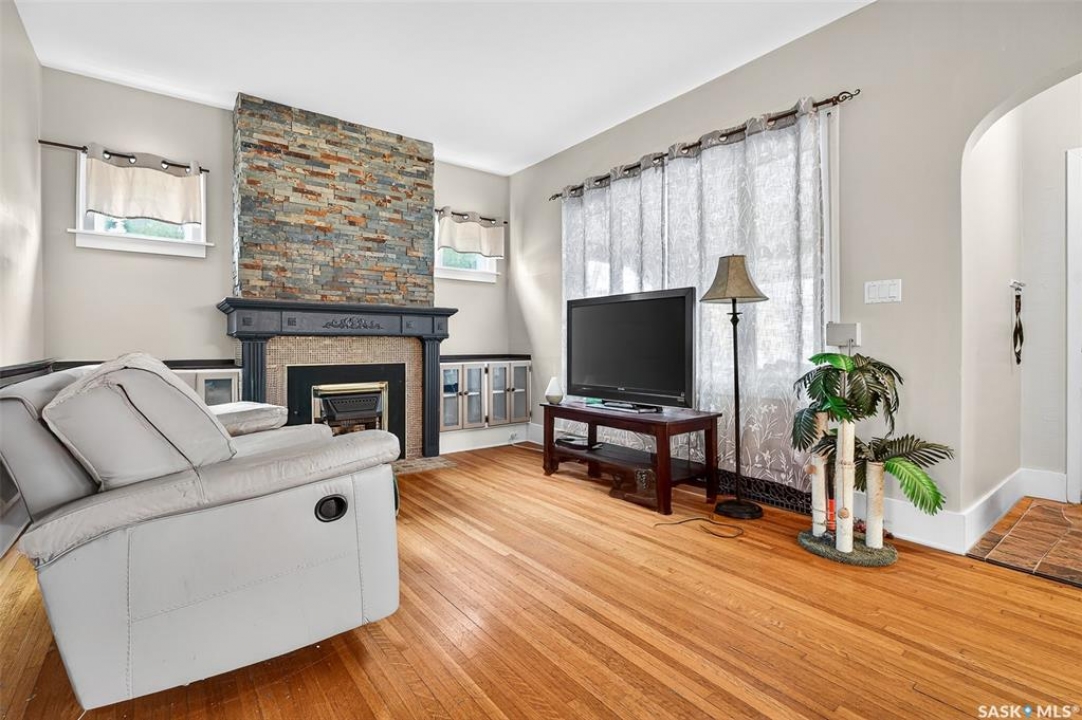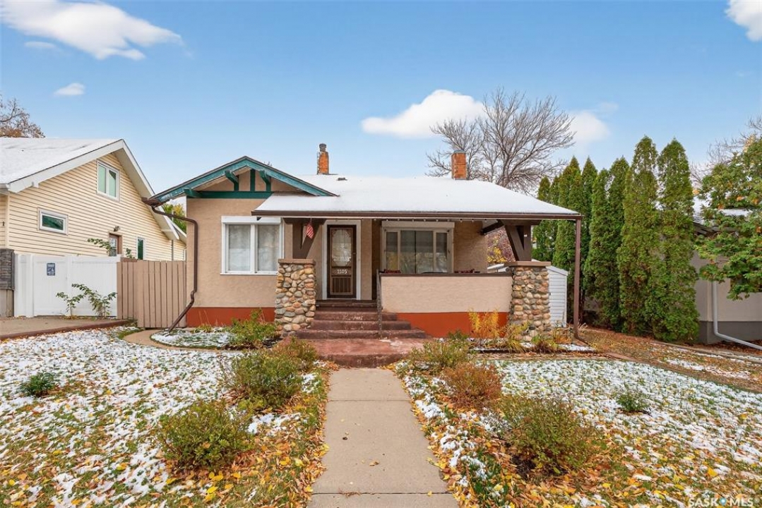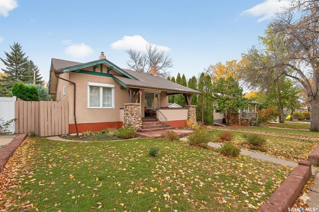 Are you looking for a charming house in the avenues? This beautiful bungalow boasts over 900 sq.ft. with 3 beds and 2 baths and a double detached garage. Excellent curb appeal as you arrive with the stone pillars giving so much character! You are sure to love the covered front veranda - the perfect place for a morning coffee! Heading inside you are greeted by a beautiful open concept living and dining area with high ceilings, hardwood floors, a gas fireplace and lots of natural light! Off the dining room we find a stunning kitchen with marble floors, concrete counters, and ample cabinetry. Down the hall we find 2 spacious bedrooms with closets! As well as an updated 4 piece bathroom with a travertine marble shower tub surround and granite vanity! Heading downstairs we find a large family room perfect place for the kids to go! There is also a third bedroom and a 2 piece bath on this level. Finishing off the basement we have a spacious laundry/utility room and lots of storage space! Heading outside we find a fully fenced backyard with 2 storage sheds! The 22'x24' garage is sure to be a hit - with epoxy floors, 2 openers and insulated! Lots of off street parking with a front and rear driveway. Lots of updates over the years and a pride of ownership shows through! Quick possession is available! Reach out today to book your showing!
