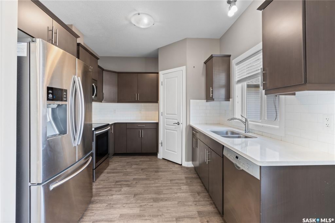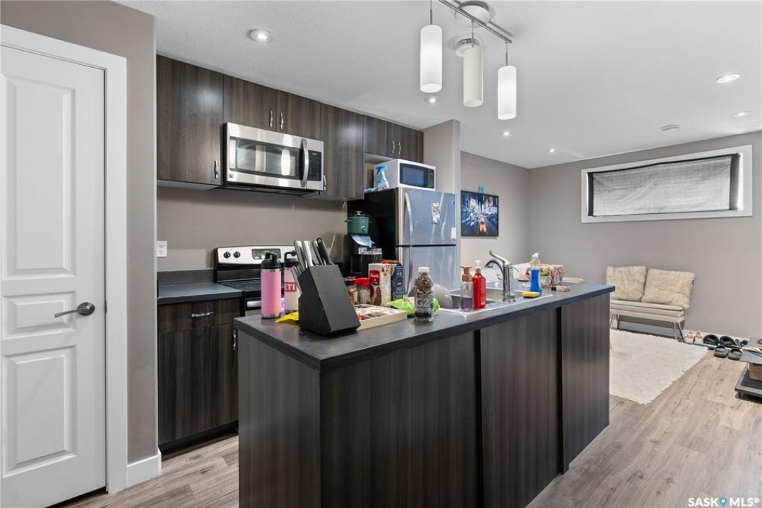 Welcome to 5214 Squires Road, a beautifully finished 2-storey home located in the vibrant community of Harbour Landing. This well-designed home offers a functional layout with modern finishes throughout. The main floor features 9-foot ceilings and an open-concept living area that flows seamlessly into the kitchen, complete with quartz countertops, tile backsplash, stainless steel appliances, and a convenient 2-piece bathroom. Upstairs, you'll find three spacious bedrooms, laundry area and two full bathrooms, including a primary suite with a private 4-piece ensuite. One of the standout features of this property is the fully finished basement with a separate side entrance. It includes a legal 1-bedroom suite with its own kitchen, bathroom, in-floor heating, and large windows, ideal for rental income. Outside, enjoy the low-maintenance exterior, a generous rear deck, and a double-car detached garage with rear lane access.