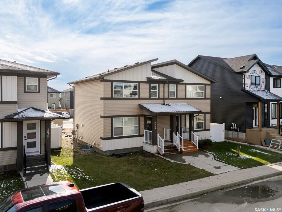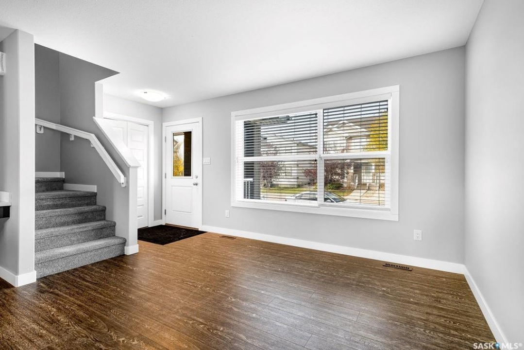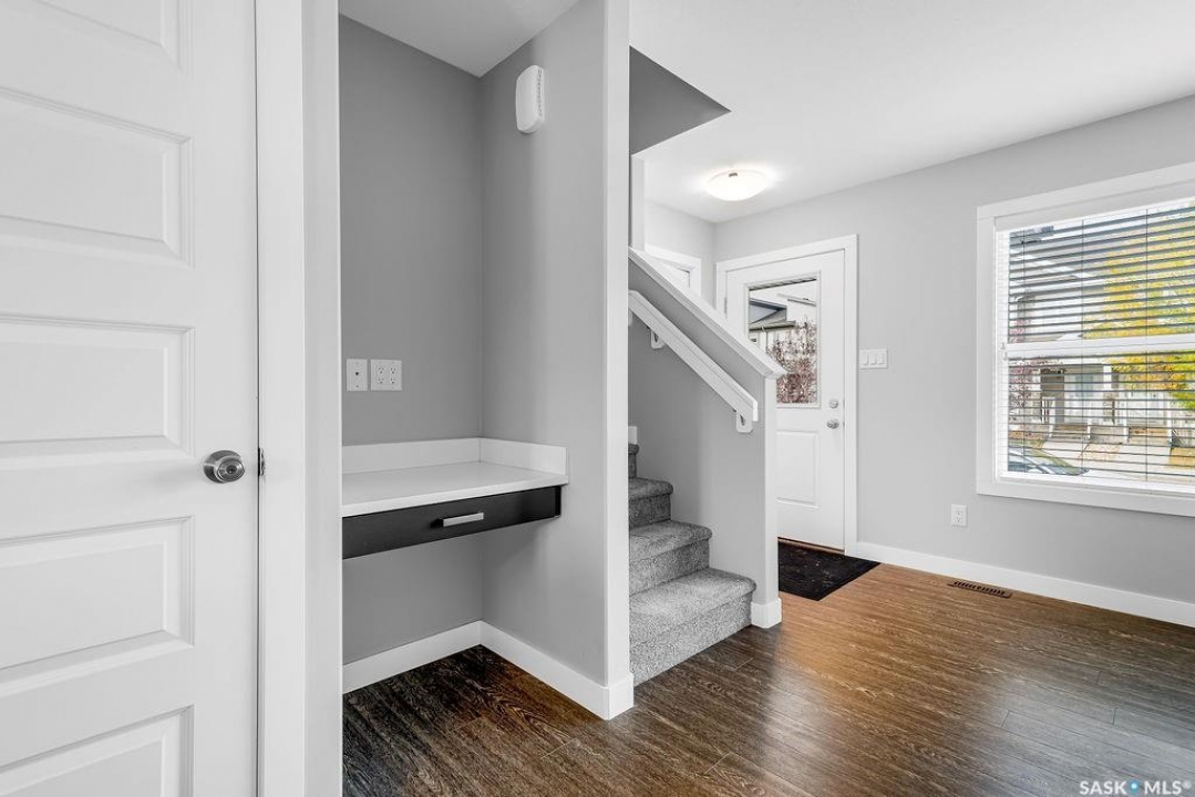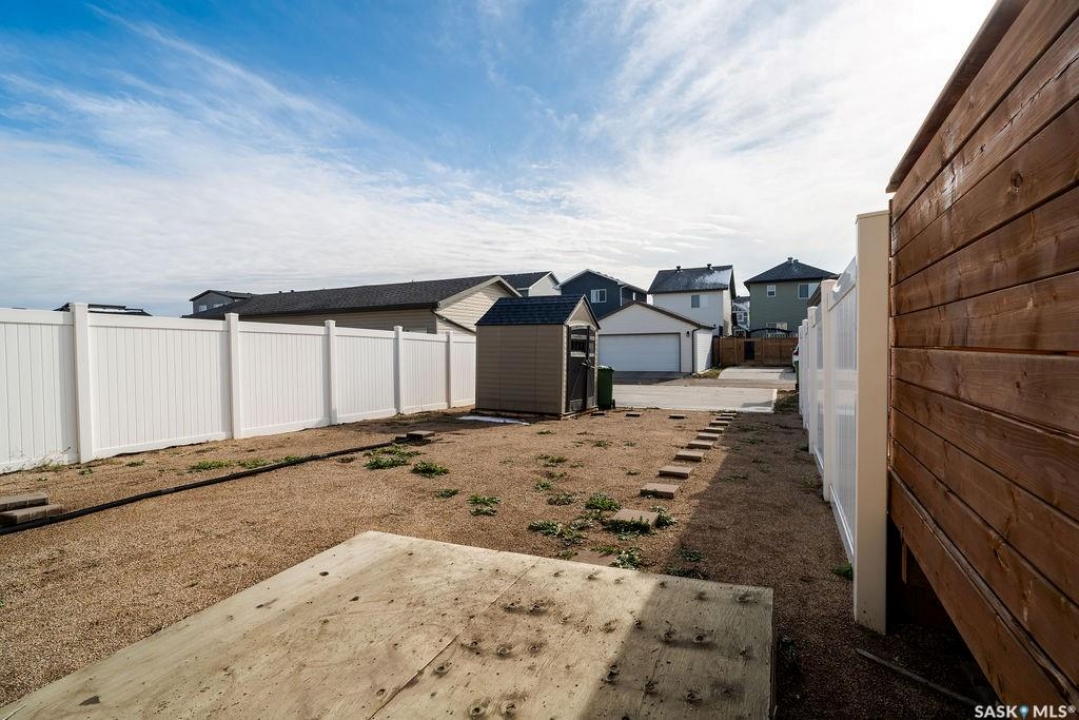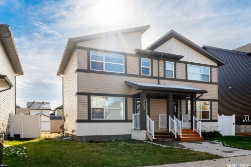 This beautifully maintained, move-in ready duplex in Regina's desirable Hawkstone community perfectly blends modern design, functionality, and location. Situated in the city's north end near grocery stores, restaurants, parks, and schools, this home features an open-concept main floor that flows effortlessly from the bright living room to the dining area and modern kitchen—complete with sleek cabinetry and plenty of counter space. An added office nook provides the ideal setup for those with a hybrid or work-from-home lifestyle, while a convenient half bath completes the main level. Upstairs, you'll find three spacious bedrooms, including a comfortable primary suite with a walk-in closet, and a full four-piece bathroom shared by the upper level. The basement is open for future development, giving you the opportunity to create additional living space that fits your needs. Outside, the fenced yard offers privacy and room to enjoy, with a double parking pad ready for a future garage or outdoor retreat. Perfect for first-time buyers or anyone seeking a stylish, move-in ready home in a fantastic location, this Hawkstone duplex delivers comfort, convenience, and value all in one.