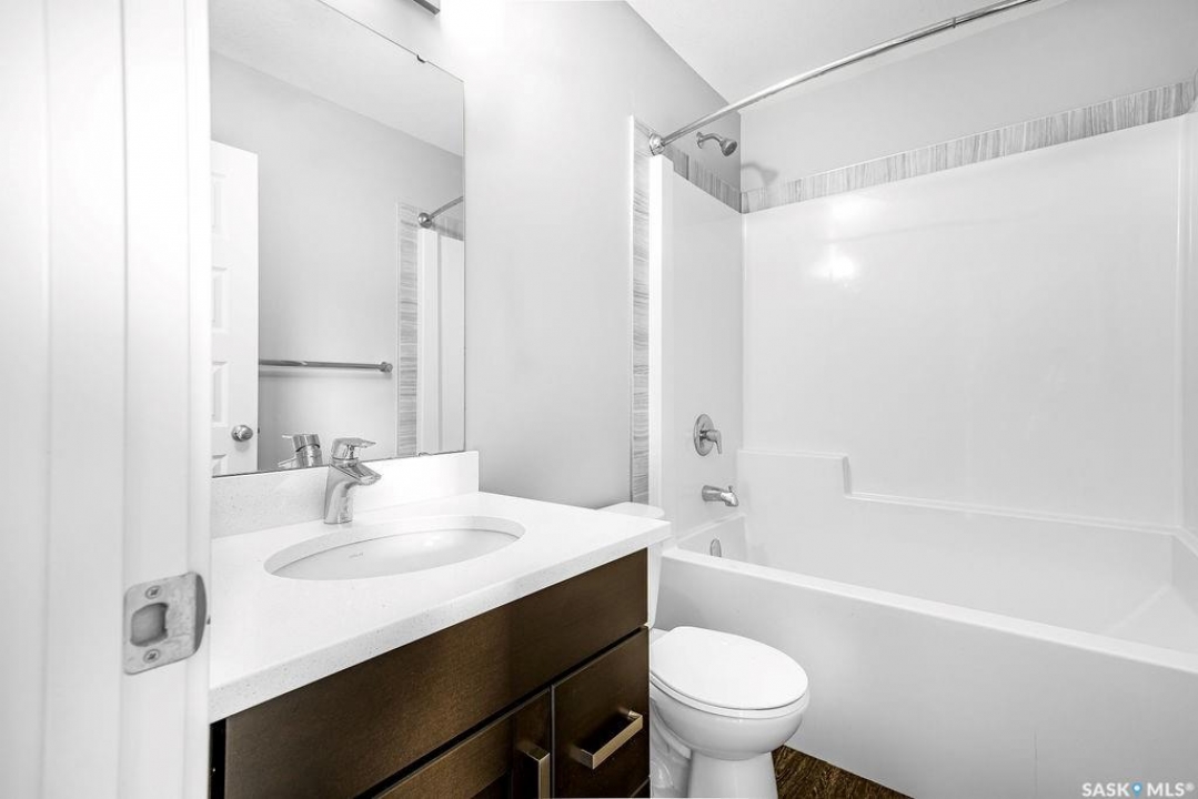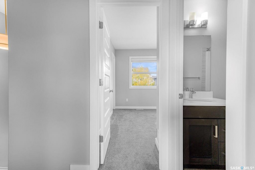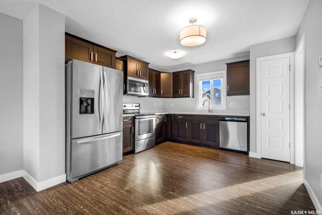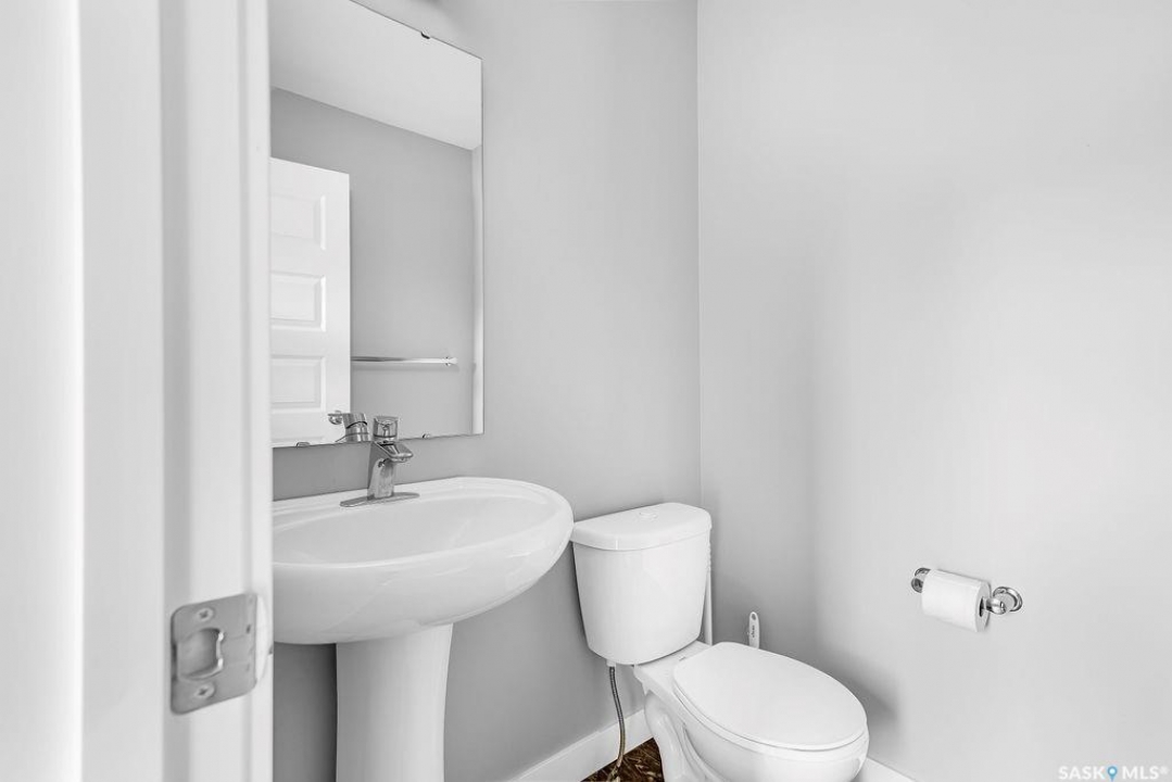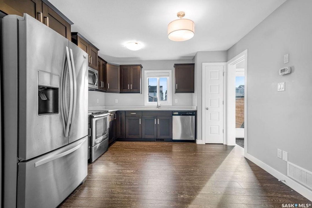 This beautifully maintained, move-in ready duplex in Regina's desirable Hawkstone community perfectly blends modern design, functionality, and location. Situated in the city's north end near grocery stores, restaurants, parks, and schools, this home features an open-concept main floor that flows effortlessly from the bright living room to the dining area and modern kitchen—complete with sleek cabinetry and plenty of counter space. An added office nook provides the ideal setup for those with a hybrid or work-from-home lifestyle, while a convenient half bath completes the main level. Upstairs, you'll find three spacious bedrooms, including a comfortable primary suite with a walk-in closet, and a full four-piece bathroom shared by the upper level. The basement is open for future development, giving you the opportunity to create additional living space that fits your needs. Outside, the fenced yard offers privacy and room to enjoy, with a double parking pad ready for a future garage or outdoor retreat. Perfect for first-time buyers or anyone seeking a stylish, move-in ready home in a fantastic location, this Hawkstone duplex delivers comfort, convenience, and value all in one.