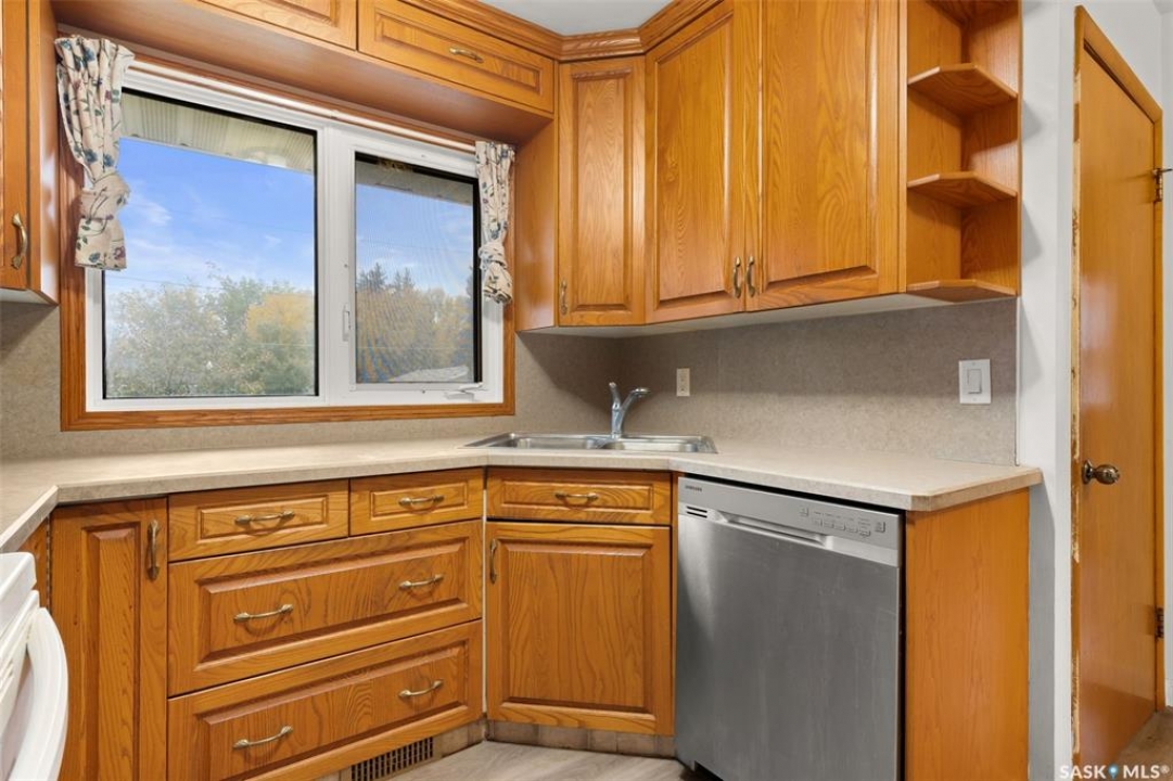 This 1250 ft � 6 bedroom bungalow is located in the heart of Hillsdale. Walking distance to Campbell Collegiate in Hillsdale, featuring vinyl siding, newer shingles, vinyl windows throughout, kitchen with oak cabinets, Brand new flooring, Separate eating area, semi-formal dining room, good sized living room with built-in oak wall unit, 3 very good bedrooms with 2 piece ensuite (that could be converted to a 3 piece), Basement is newly renovated and finished with three more good size bedrooms. large south facing backyard with lots of sunlight, tandem garage, High efficiency furnace central air conditioning neat clean pet and smoke free home. Call to book a showing today.