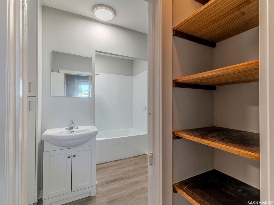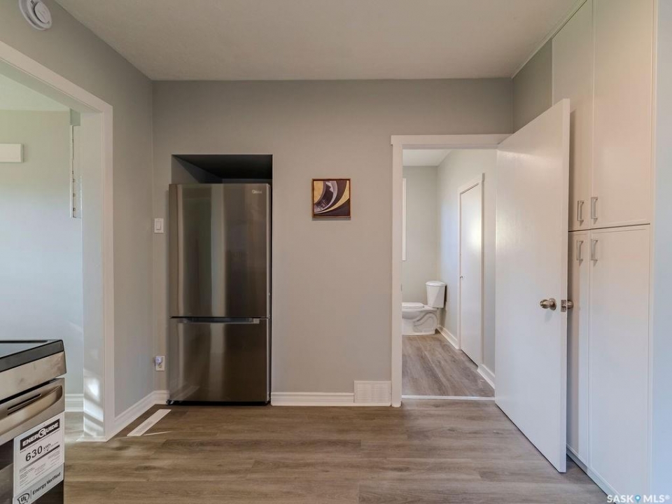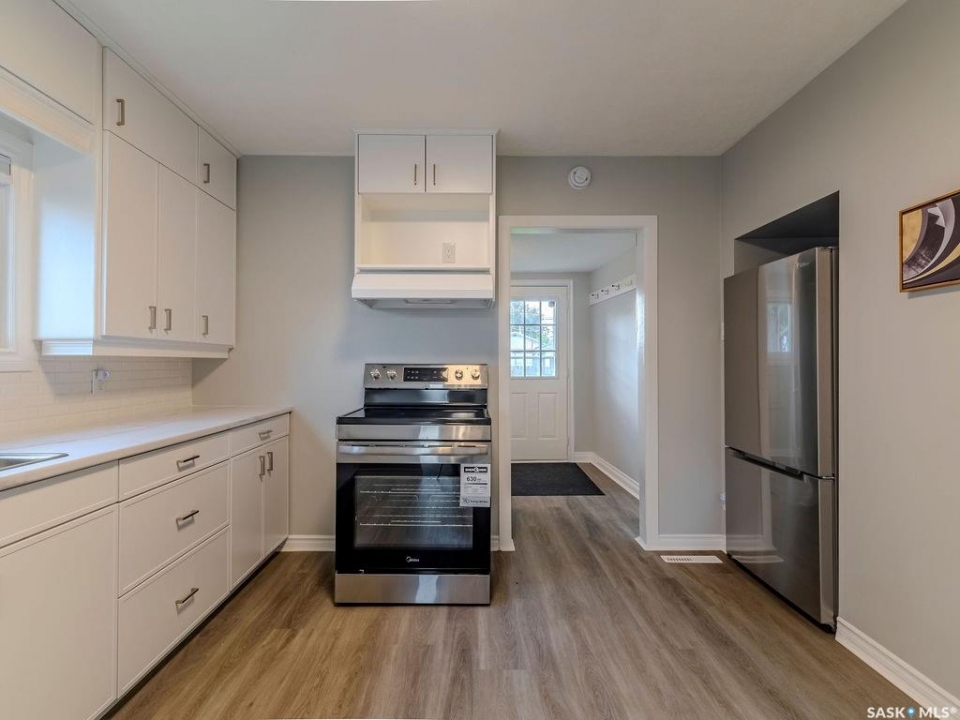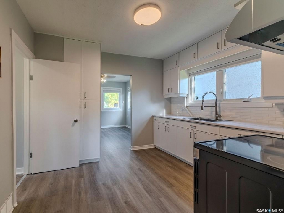 Welcome to 221 Avenue N North, a fully renovated bungalow offering unbeatable value and modern style. This 560 sq. ft. home sits on a 37.5 x 105 ft. lot with a large backyard that's perfect for relaxing, entertaining, or future development. Inside, everything has been redone from top to bottom. You'll find new flooring, fresh paint, modern light fixtures, updated blinds, new shingles, and a completely rebuilt kitchen with brand-new cabinets, tile backsplash, and stainless steel appliances. The bathroom has been fully updated to match the clean, modern look throughout. With nothing left to do but move in, this home is perfect for first-time buyers, investors, or downsizers looking for a solid, low-maintenance property in a convenient Saskatoon location.