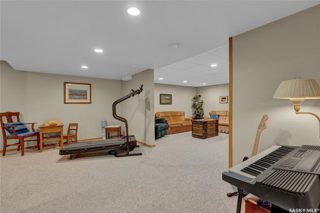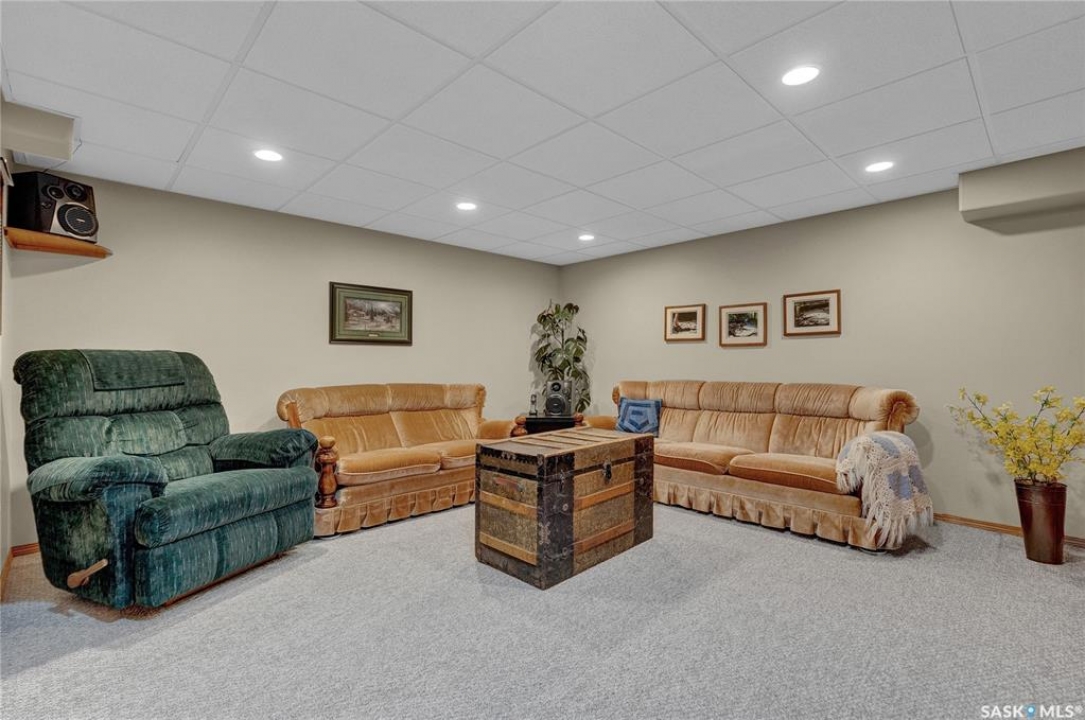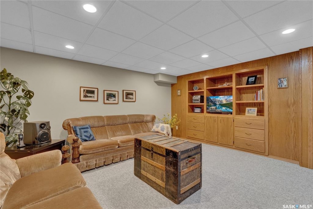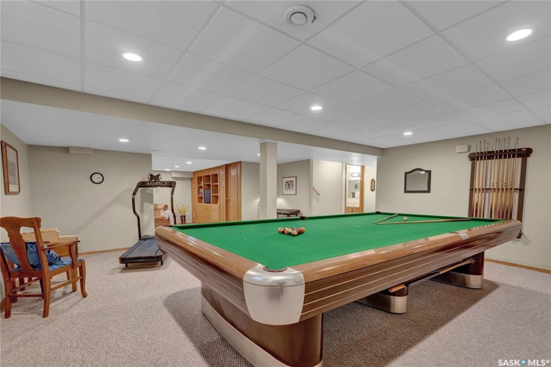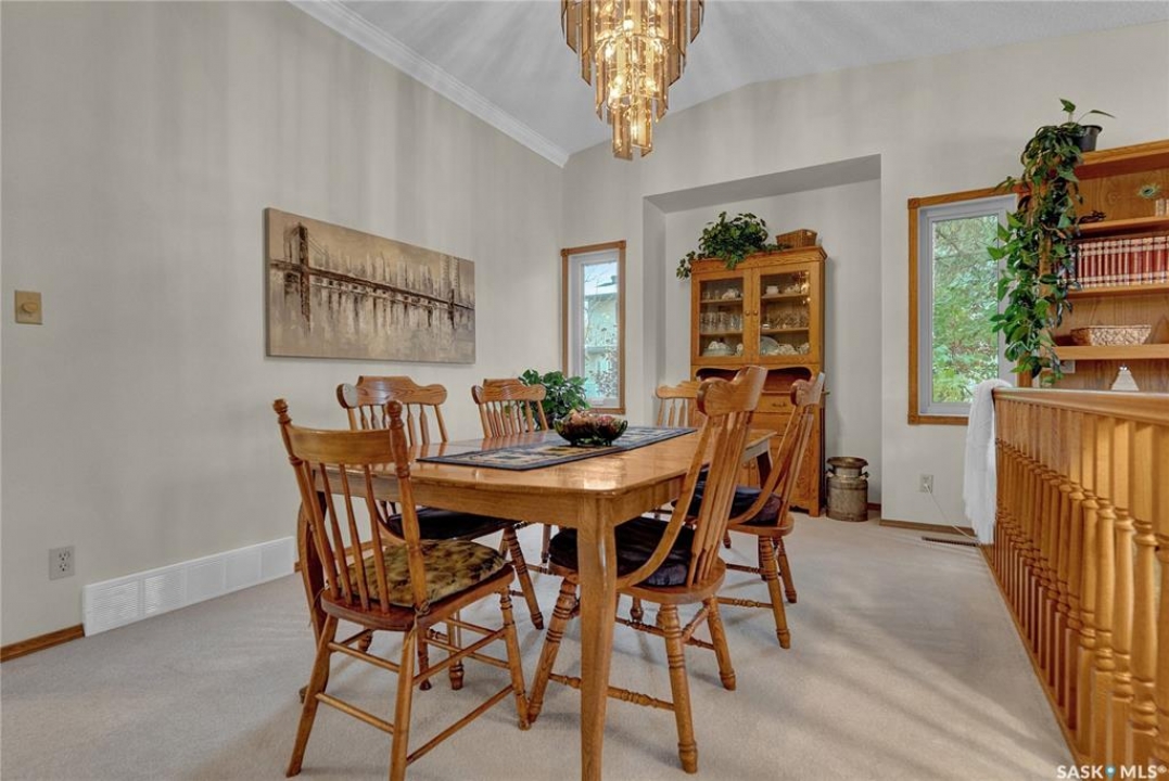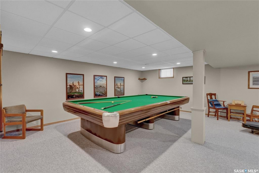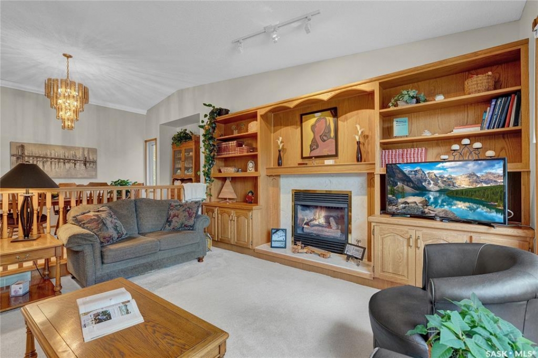 Great street appeal welcomes you to this beautifully maintained 1,486 sq. ft. bungalow located in desirable Wood Meadows. Numerous updates, including new PVC windows on the main floor (2021), highlight the care and pride of ownership throughout. The spacious living room features a vaulted ceiling, an abundance of natural light, and a cozy gas fireplace—perfect for relaxing or entertaining. The adjoining formal dining room also boasts a vaulted ceiling, creating an open and airy feel. A well-designed kitchen offers plenty of oak cabinetry, a center island, built-in dishwasher, and a large eating area. A garden door leads directly to the private backyard, ideal for summer barbecues and outdoor enjoyment. The primary bedroom includes a walk-in closet and a � ensuite bath. Two additional bedrooms and a full main bathroom with a jetted tub complete the main level, along with the convenience of main floor laundry. The professionally developed basement provides even more living space, featuring a family room with custom built-in cabinetry, a large games area with room for a pool table, a fourth bedroom (window may not meet current egress standards), a � bathroom, and ample storage. The double attached garage is insulated, drywalled, and offers direct entry to the home. Pool table and accessories are included. This home has been lovingly cared for and offers the perfect combination of comfort, functionality, and style — truly a wonderful place to call home!