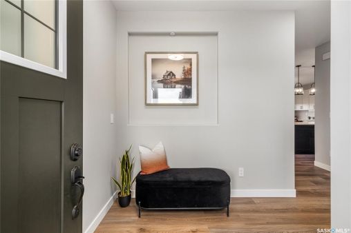Welcome to the STARKENBERG by Ehrenburg Homes – Spacious 4-Bedroom + Bonus Room with Side Entry for Future Legal Suite This stunning Two-Storey home offers a functional open-concept layout perfect for families. The main floor features upgraded Vinyl Plank water-resistant flooring throughout, eliminating transition strips for a seamless flow. Enjoy a cozy living room fireplace, a mudroom entry from the garage, and a walk-through pantry leading into a chef-inspired kitchen with quartz countertops, tile backsplash, eat-up island, and extended cabinetry into the dining area. Upstairs, you'll find four spacious bedrooms and a bonus room ideal for a playroom, office, or media space. The primary suite includes a walk-in closet and a large ensuite with double sinks. The basement is open for development and includes a side entrance for a future legal suite. Exterior features include front landscaping, underground sprinklers, and a concrete driveway. Estimated completion: Early Jan 2026 Covered by Saskatchewan New Home Warranty Photos are from a previous build of the same model. Finishing colors may vary. JAN 2026 POSSESSION SIDE ENTRY FOR FUTURE LEGAL BASEMENT SUITE 4 BEDROOMS + BONUS ROOM, DOUBLE ATTACHED GARAGE, REAR DECK ! Contact us today for more details or to schedule a viewing!