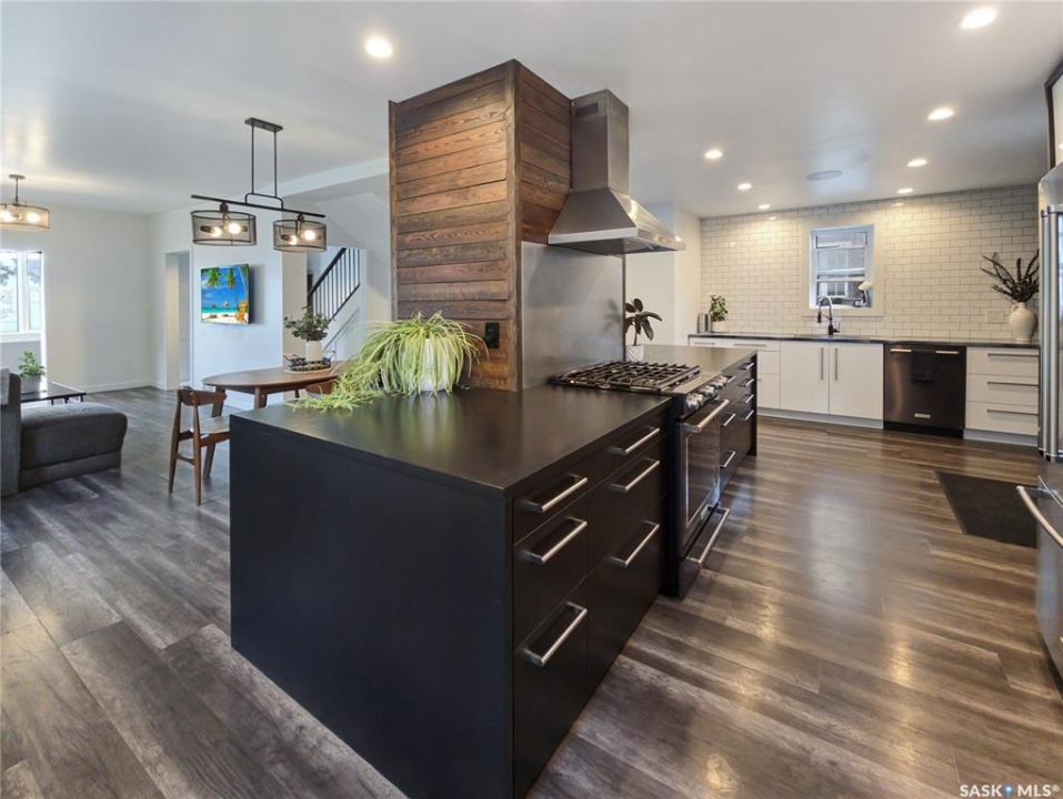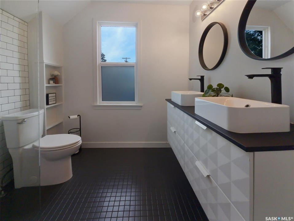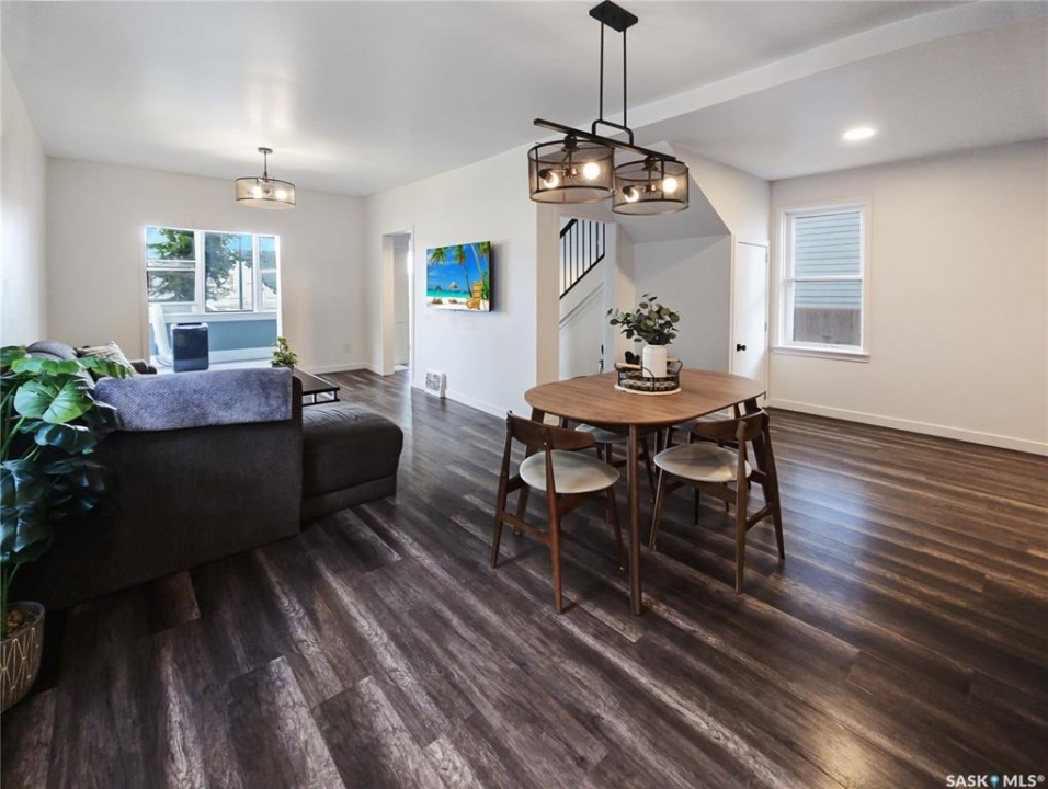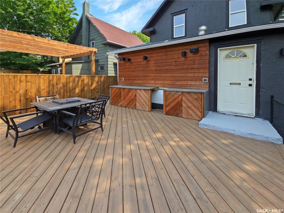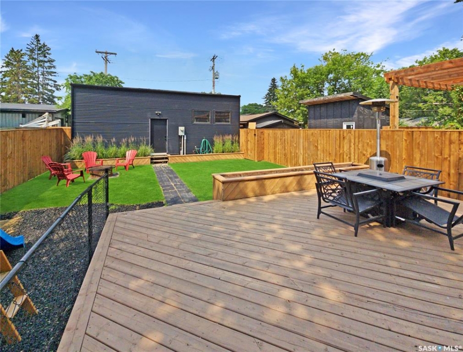 This updated three-bedroom home offers a unique blend of charm and contemporary finishes. The main floor boasts an open-concept layout, while the kitchen features custom cabinetry, extensive counter space, pull-out drawers, smart storage solutions, and modern appliances including a gas range. The front den is filled with ample natural light. Upstairs, you'll find three bedrooms—the primary includes a spacious walk-in closet with custom shelving and organizers. Another bedroom is ready for a second-floor laundry installation. The upstairs bathroom is equipped with a double sink vanity, heated tile flooring, and a large walk-in shower. The finished basement offers carpeted floors, counters set up for a wet bar, and a dedicated laundry area. Recent upgrades by the sellers include a new water heater, furnace, rewired electrical, plumbing, flooring, paint, remodeled kitchen, appliances, and deck (2020), bathroom renovations (2021), completed basement (2022), and new shingles on the south side of the roof (2023). The large, detached garage, built just a few years ago, is heated and spacious enough for three vehicles, extra storage, and a workshop. With easy trailer access, it's ideal for tradespeople or those with trailers. Additionally, construction has begun on a new city-centre school—serving Riversdale, King George, and Pleasant Hill—which will also offer new childcare spaces and is scheduled to open in 2027. If you're seeking a stylish home with generous living space, a large, finished garage, and a backyard perfect for entertaining, this property deserves your attention. There's plenty of potential and value here.