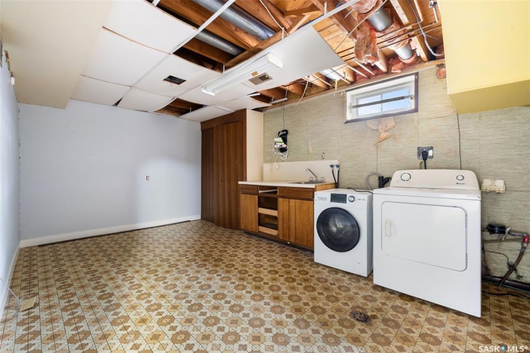 Welcome to 1307 Fleet Street in Regina's Glencairn Village—an opportunity-filled bungalow with a smart layout, mature lot, and tons of upside. The main floor welcomes you with a bright living room framed by a large picture window, an eat-in U-shaped kitchen, and three comfortable bedrooms including a convenient 2-piece ensuite off the primary, plus a full 4-piece bath. Downstairs adds excellent flexibility: a long rec room for movie nights or play space, a den/home office, a 2-piece bath, and a large laundry/utility room with great storage. A key highlight is the separate rear entry to the basement, creating privacy for guests or extended family and strong income potential for future suite development (buyer to confirm local requirements and permits). Outside, you'll appreciate the fenced yard with patio and mature trees, plus a double detached garage and an extended driveway for ample off-street parking. The location is close to neighbourhood parks, schools, transit, and east-end amenities, with quick access to Arcola Avenue and Ring Road for commuting. This home needs some TLC—think cosmetic updates and personal touches—but the fundamentals are here: classic bungalow design, full basement with its own entrance, generous lot, and garage. Whether you're a first-time buyer, multigenerational household, or an investor seeking a value-add project, this is a compelling canvas to make your own.