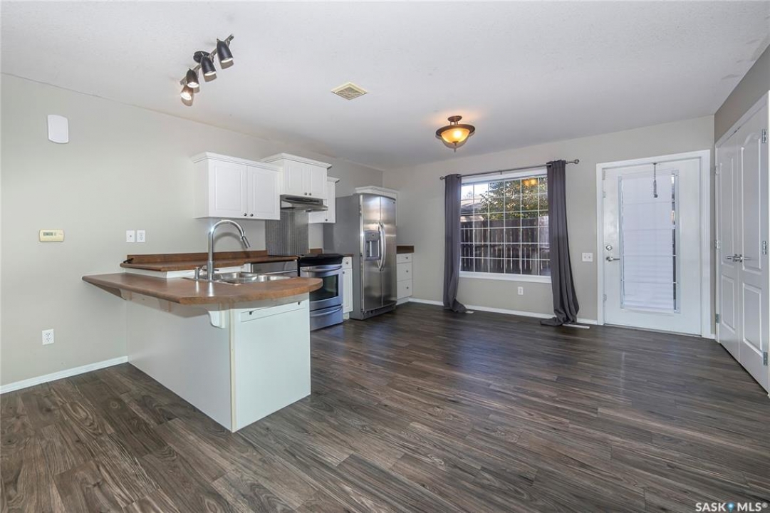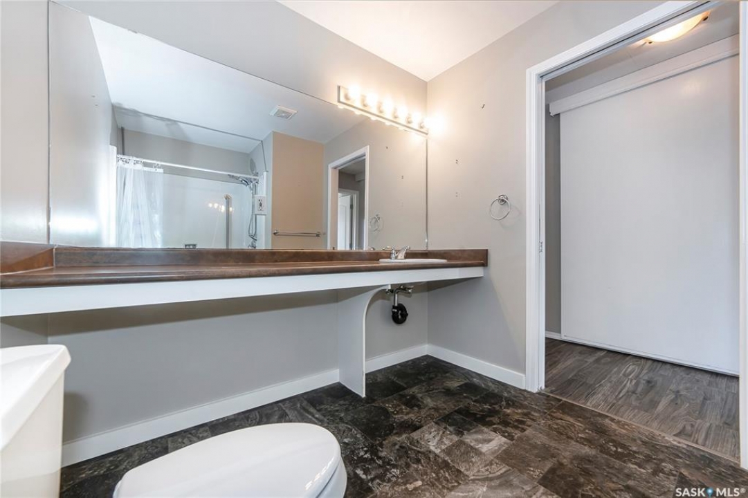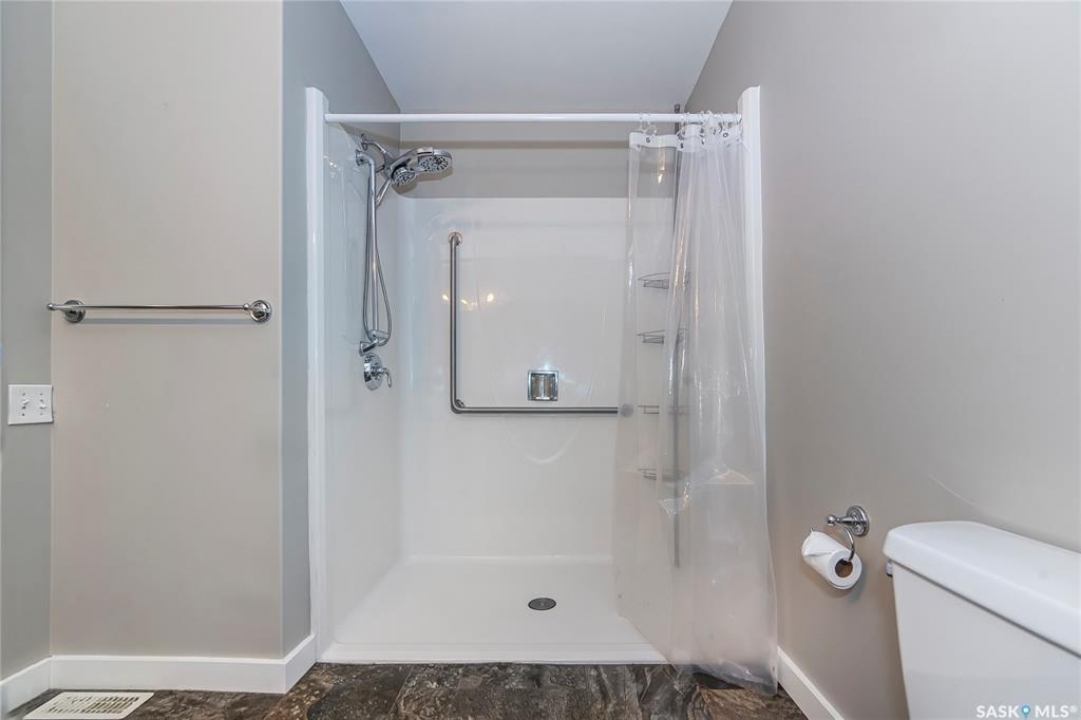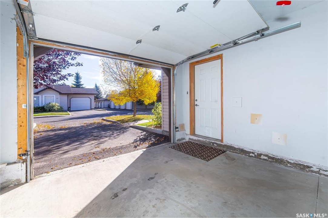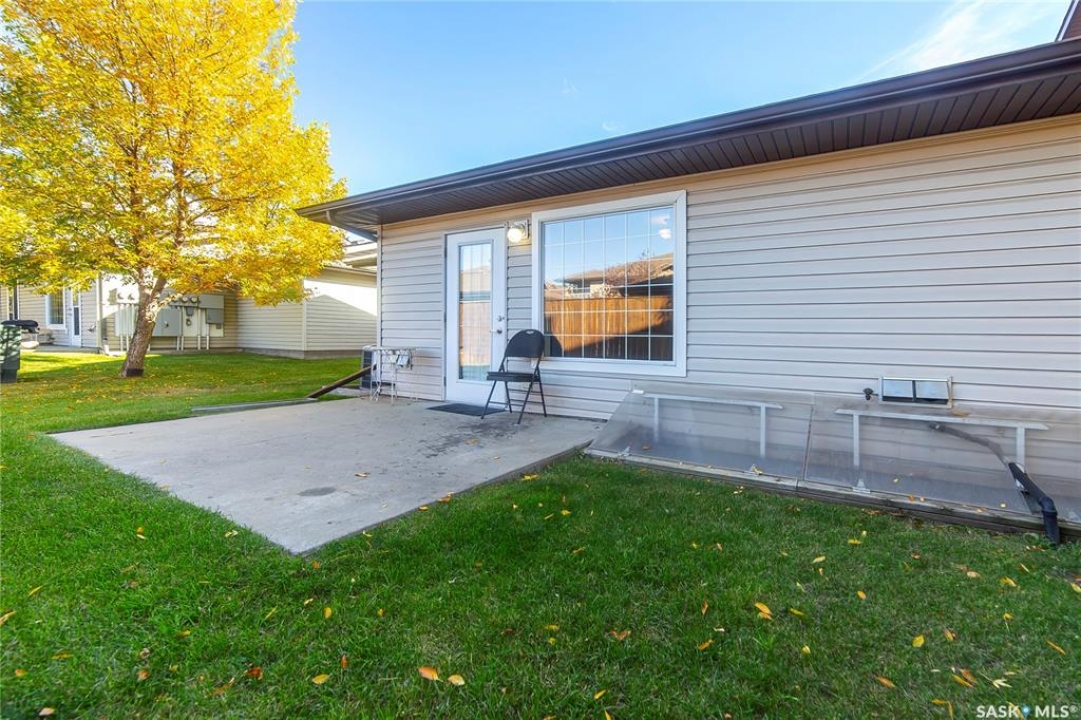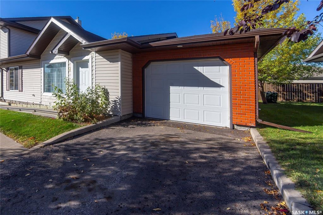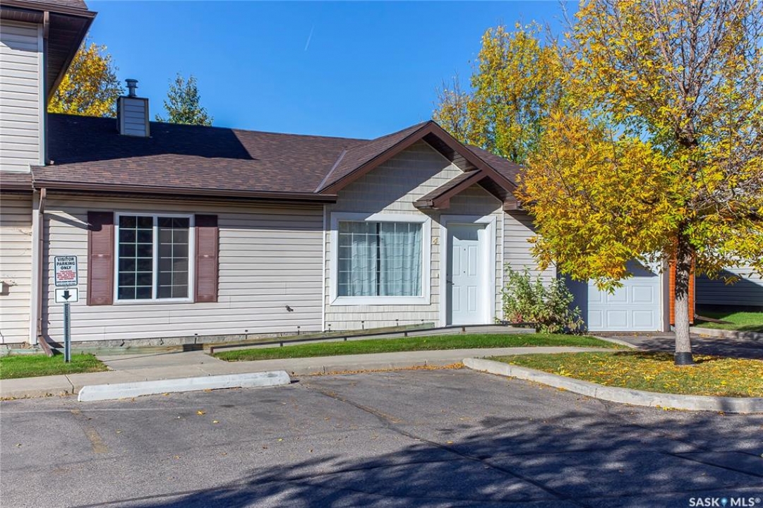 Rarely available end-unit bungalow townhouse in Willowgrove, thoughtfully designed for accessibility and independent living. This WHEELCHAIR-friendly home features wide hallways and doorways, pocket doors, accessible switches, and ramped entries, making movement easy and barrier-free. The main floor laundry includes full-size, side-by-side washer and dryer, and the spacious layout offers 4 bedrooms and 2 bathrooms, including a main bath with a roll-in shower. The open-concept kitchen and dining area connect seamlessly to a bright living room, while the fully finished basement offers a large family room, two additional bedrooms, and a 4-piece bath. Additional highlights include central air conditioning, underground sprinklers, sump pump, and an attached insulated garage with direct entry. Enjoy a private patio, landscaped yard, and the peace of mind of a well-managed condo community at Hunter Crossing. Perfect for those seeking a low-maintenance, mobility-accessible home on Saskatoon's desirable east side