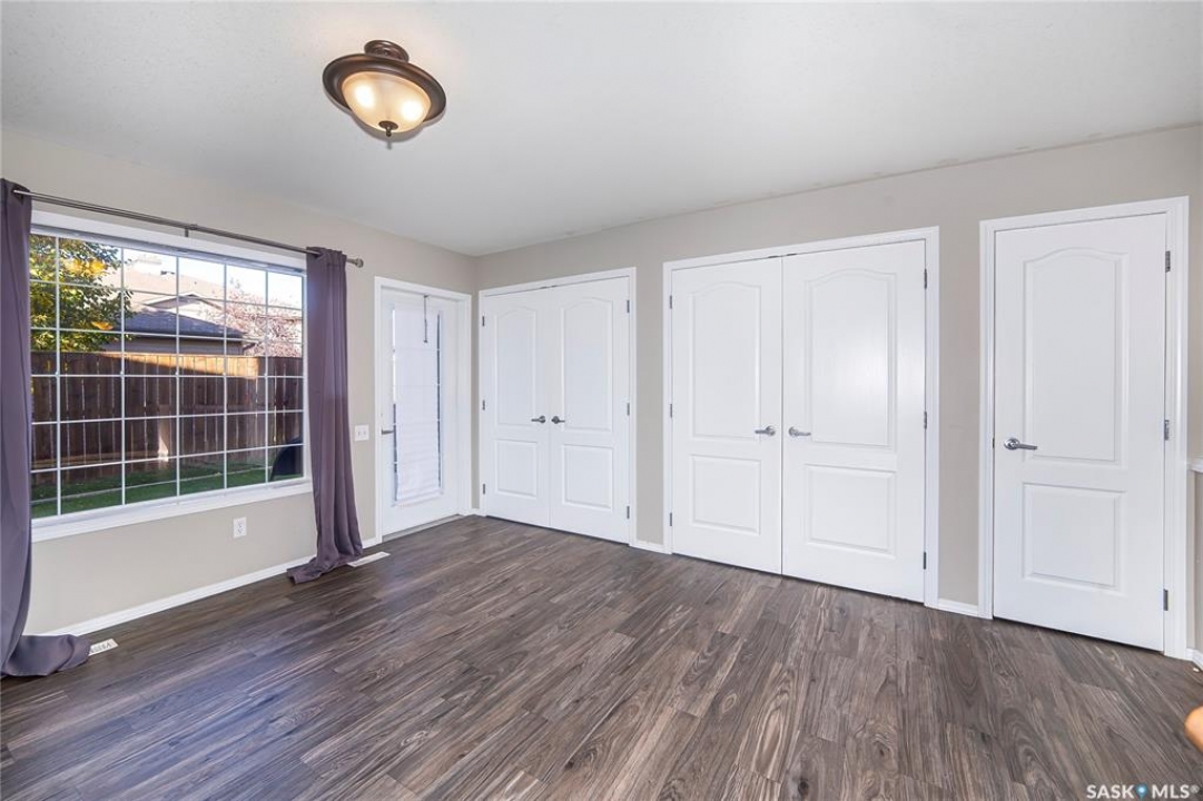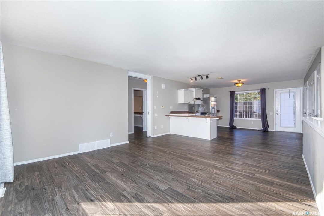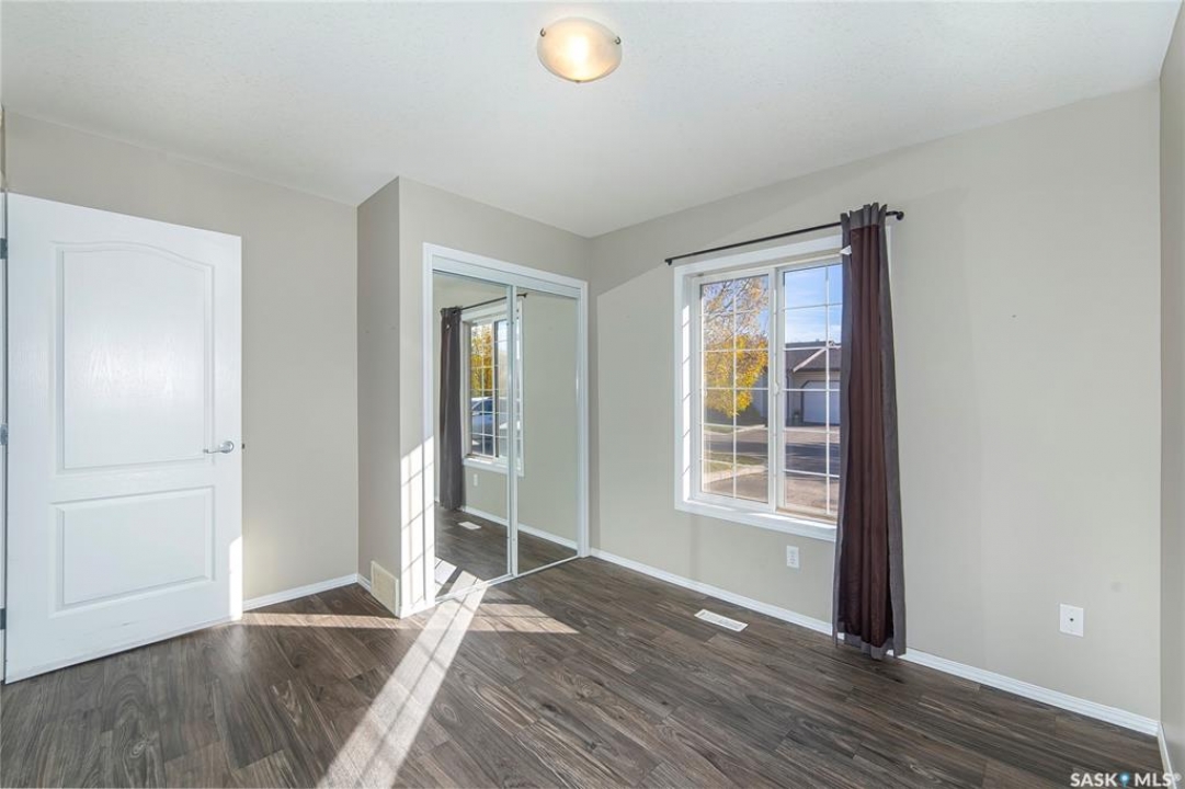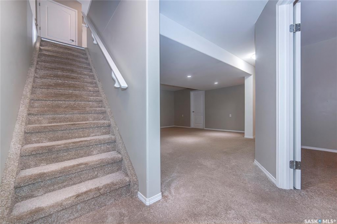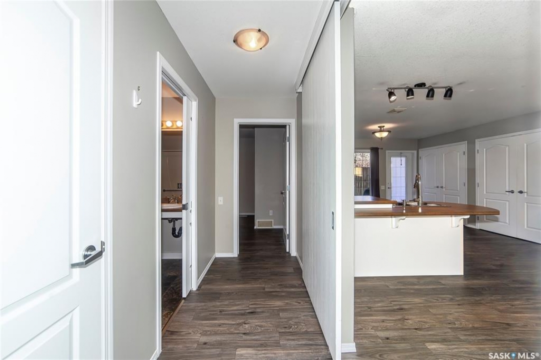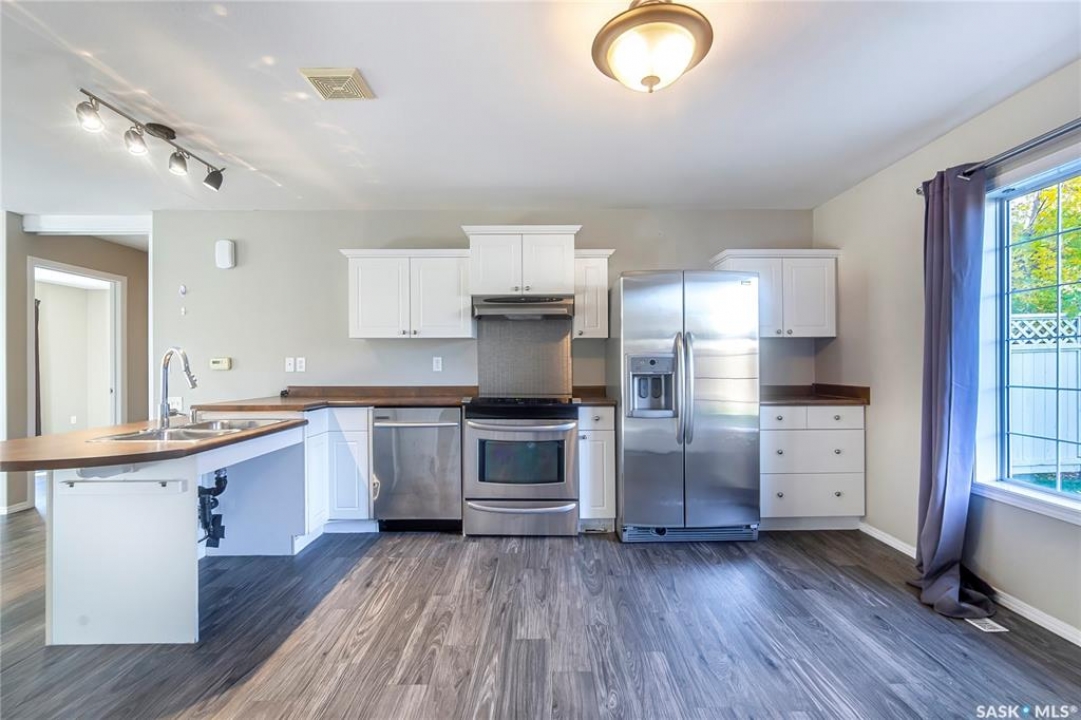 Rarely available end-unit bungalow townhouse in Willowgrove, thoughtfully designed for accessibility and independent living. This WHEELCHAIR-friendly home features wide hallways and doorways, pocket doors, accessible switches, and ramped entries, making movement easy and barrier-free. The main floor laundry includes full-size, side-by-side washer and dryer, and the spacious layout offers 4 bedrooms and 2 bathrooms, including a main bath with a roll-in shower. The open-concept kitchen and dining area connect seamlessly to a bright living room, while the fully finished basement offers a large family room, two additional bedrooms, and a 4-piece bath. Additional highlights include central air conditioning, underground sprinklers, sump pump, and an attached insulated garage with direct entry. Enjoy a private patio, landscaped yard, and the peace of mind of a well-managed condo community at Hunter Crossing. Perfect for those seeking a low-maintenance, mobility-accessible home on Saskatoon's desirable east side