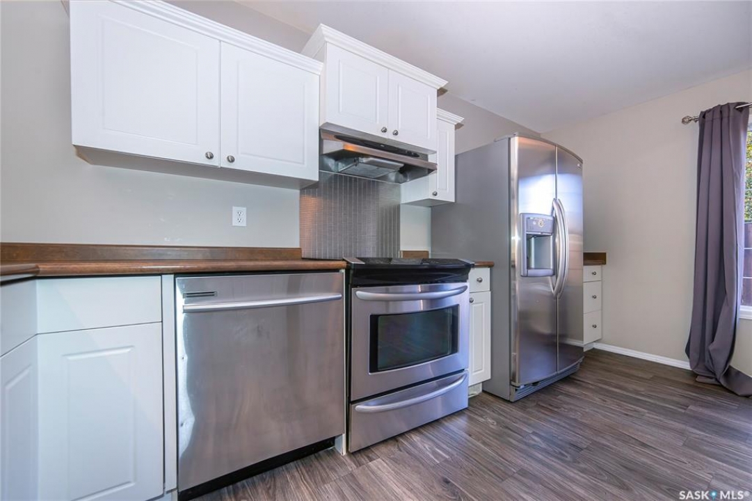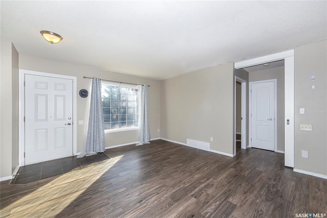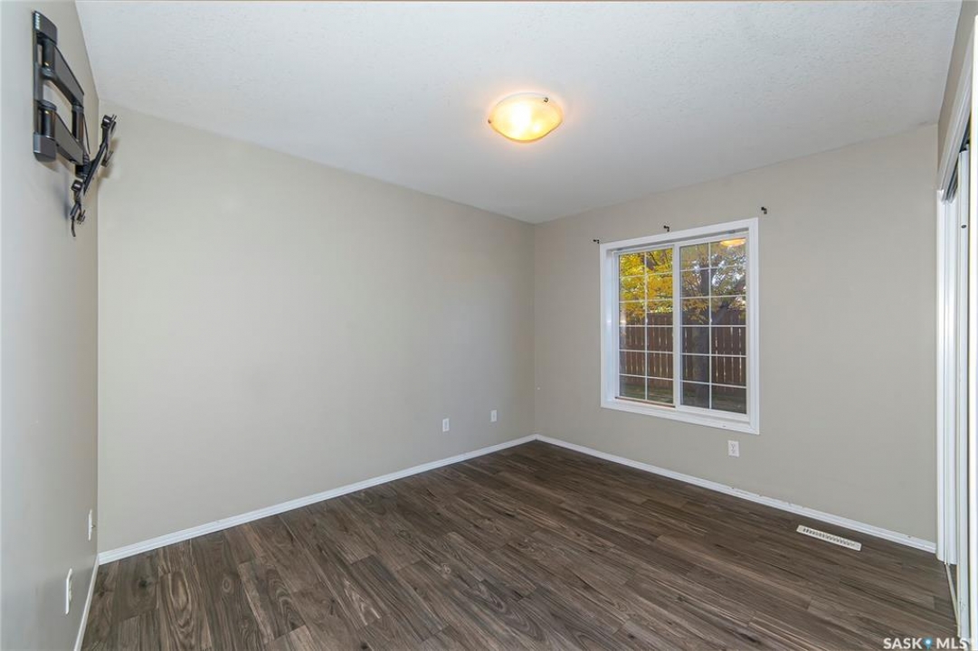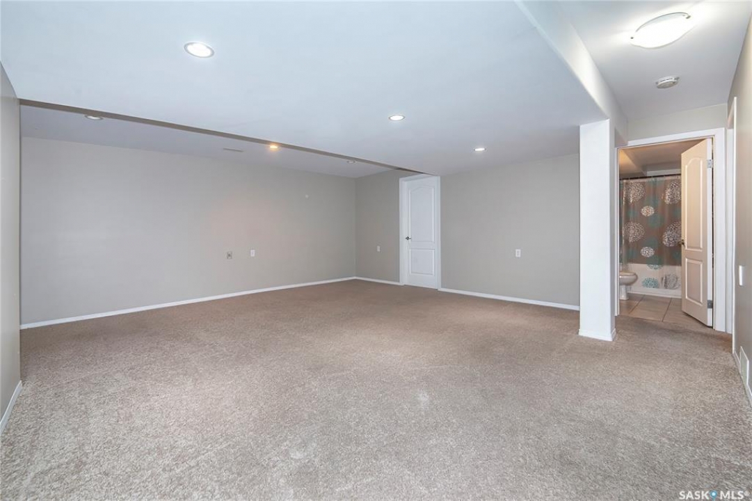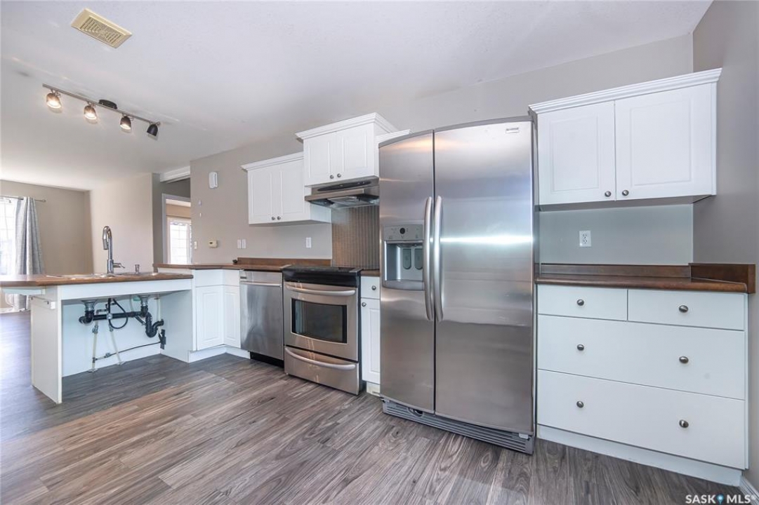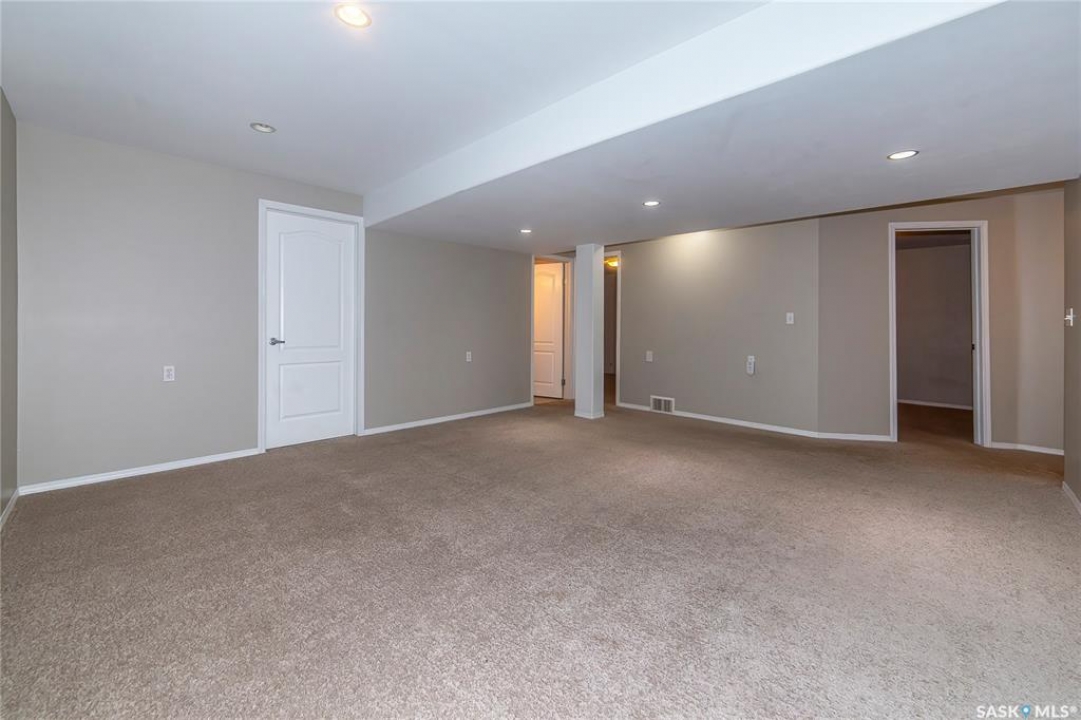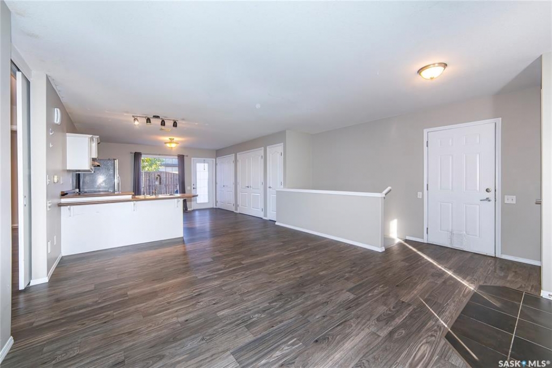 Rarely available end-unit bungalow townhouse in Willowgrove, thoughtfully designed for accessibility and independent living. This WHEELCHAIR-friendly home features wide hallways and doorways, pocket doors, accessible switches, and ramped entries, making movement easy and barrier-free. The main floor laundry includes full-size, side-by-side washer and dryer, and the spacious layout offers 4 bedrooms and 2 bathrooms, including a main bath with a roll-in shower. The open-concept kitchen and dining area connect seamlessly to a bright living room, while the fully finished basement offers a large family room, two additional bedrooms, and a 4-piece bath. Additional highlights include central air conditioning, underground sprinklers, sump pump, and an attached insulated garage with direct entry. Enjoy a private patio, landscaped yard, and the peace of mind of a well-managed condo community at Hunter Crossing. Perfect for those seeking a low-maintenance, mobility-accessible home on Saskatoon's desirable east side