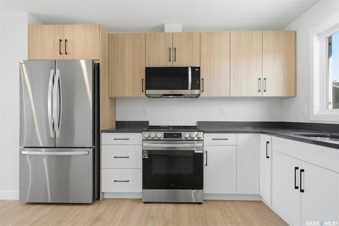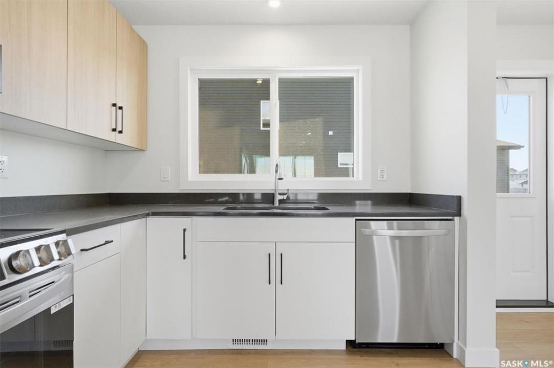 Discover exceptional townhome living in Saskatoon's sought-after Brighton neighbourhood on Asokan Bend. This premium 4-plex, built by North Ridge Development Corporation, offers a great opportunity at an affordable price. The 'Jardin', is an 1120 sq ft townhome that includes 3 bedrooms, 1.5 baths, a kitchen and laundry appliance package, and features your very own private rear vinyl fenced yard! This townhome comes fully landscaped with front yard sod and walkway, low maintenance artificial turf (rear), a concrete patio, front porch, and an off street parking pad. Brighton's family-friendly community provides the perfect balance of urban convenience and suburban tranquility, with easy access to Saskatoon's amenities, parks, schools, and shopping centers. Ideal for first-time buyers, young professionals, or downsizers seeking quality construction and modern design in Saskatoon's fastest-growing east side neighbourhood. Saskatchewan Home Warranty Coverage, GST/PST included in purchase price with applicable rebates to builder. This home is now complete and ready for you!