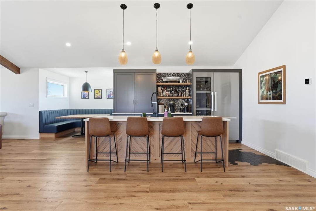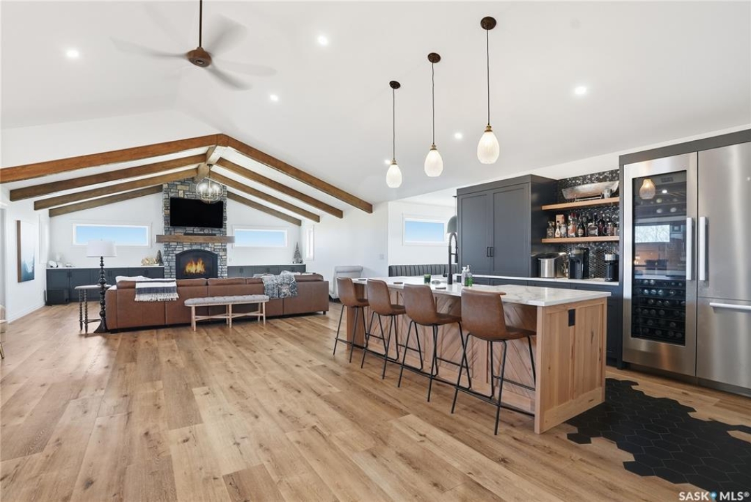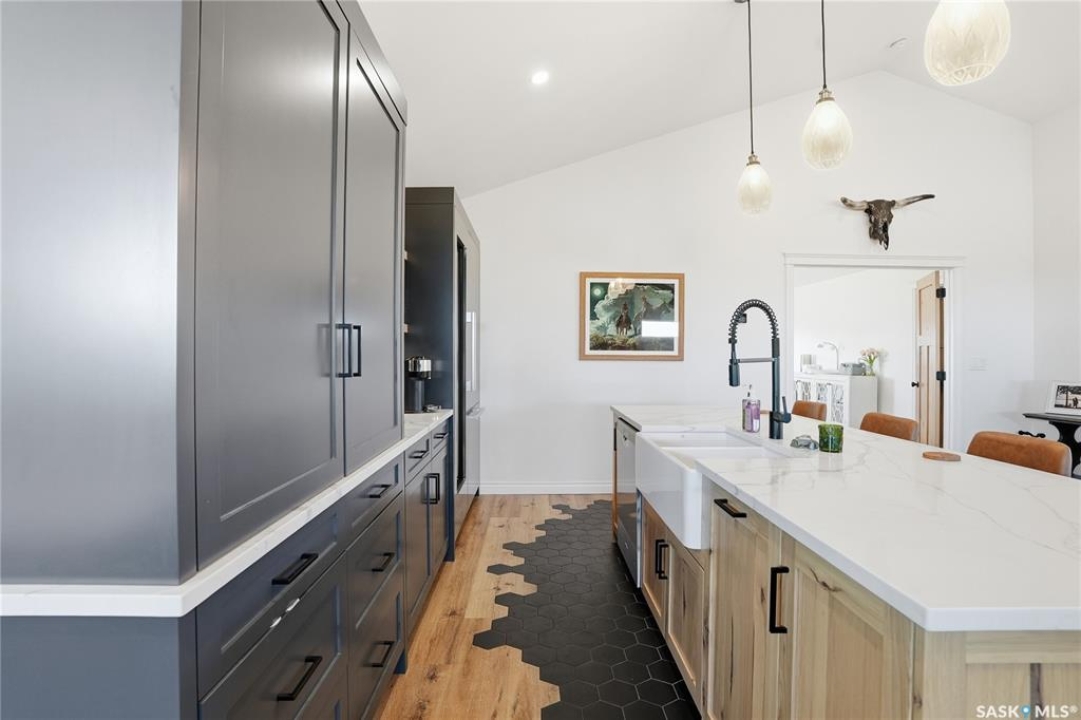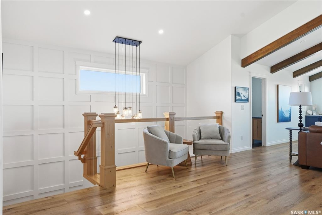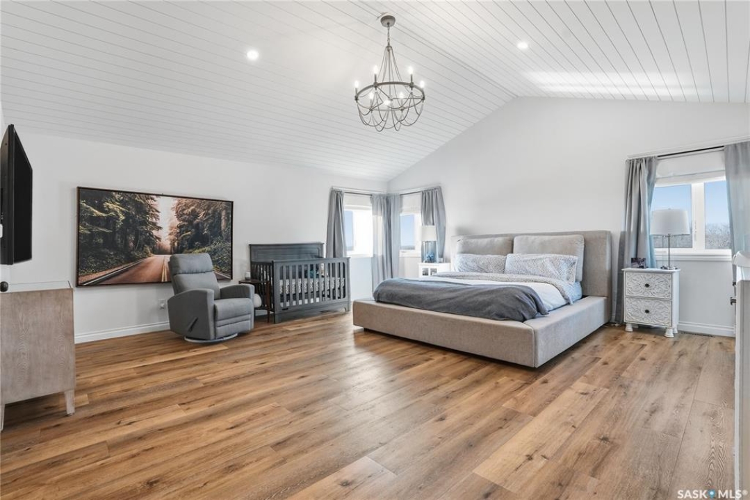 Located southeast of Saskatoon in the RM of Blucher, off Highway 16, along McConnel Road. This stunning 10-acre property offers the perfect blend of luxury and country living. Nestled among scenic farmland, the impressive 4,170 sq ft family home boasts 5 spacious bedrooms and a thoughtfully designed layout ideal for multi-generational living. Step into the grand front foyer, where sleek black tile flooring extends into the main floor laundry and bath. The open-concept main floor is bright and welcoming, featuring a chef-inspired kitchen with wooden cabinetry, tile backsplash, stainless steel appliances, a corner pantry, and a large island perfect for entertaining. Two main-floor bedrooms include one with a private ensuite, while a custom mudroom off the triple heated garage(31'x36') adds practical elegance with built-in shelving and bench storage. Upstairs, the loft showcases a striking glass railing, exposed beams, a cozy stone gas fireplace, and a wet bar complete with tile backsplash, Miele fridge, and dishwasher. The luxurious primary suite is a true retreat with vaulted ceilings, white paneling, a beautiful chandelier, and a spa-like ensuite, featuring white marble tile, quartz counters, double sinks, a glass-enclosed rain shower, heated floors and a corner Jacuzzi tub. The custom walk-in closet offers abundant built-in storage. The fully developed basement includes a large family room, a 4-piece bath with heated floors, two additional bedrooms, and a mechanical room with drip system, a/c, HRV. The 36' x 31' triple heated garage (12' ceilings) is complemented with a bonus space—a home gym or studio—with floor-to-ceiling windows and 12' ceilings. Perfect for fitness or yoga classes. Start the day with morning coffee on the east-facing deck off the kitchen and enjoy serene prairie sunsets from the west-facing back deck or on the stamped concrete patio roasting hotdogs and marshmallows. Call Today. Must be viewed to be truly appreciated.