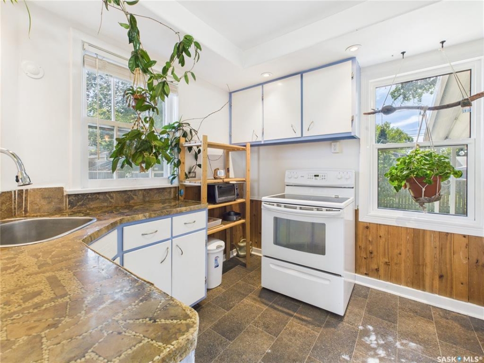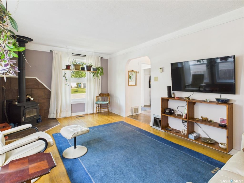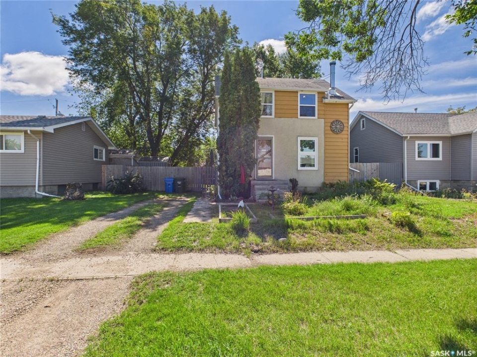 This charming 1 � storey home in Westview is full of character, charm and warmth. With three bedrooms upstairs and 885 square feet of smartly designed living space, it's the perfect fit for anyone wanting both charm and practicality. The main floor features arched doorways, hardwood floors in the living room, and a peek-through from the kitchen to the dining room that makes entertaining feel easy and connected - not to mention the wood stove for snuggling up on cold winter nights! Many of the windows have been upgraded in recent years, with the most recent being the living room window installed this spring. The large bathroom has all newer features, plus plenty of space to get ready each morning. Outside, the fully fenced yard is surrounded by mature trees and colourful wildflowers in the front garden, along with garden beds ready for herbs, vegetables, or more flowers. The location is ideal for those who love the outdoors, with the Rotary Trail just steps away for morning walks or evening bike rides. It also offers a quick and convenient commute to the Saskatchewan Penitentiary, making it an excellent option for those relocating to work there. With its character details and smart layout, this move-in ready (and oh-so-sweet!) home is ready to welcome its next owner.